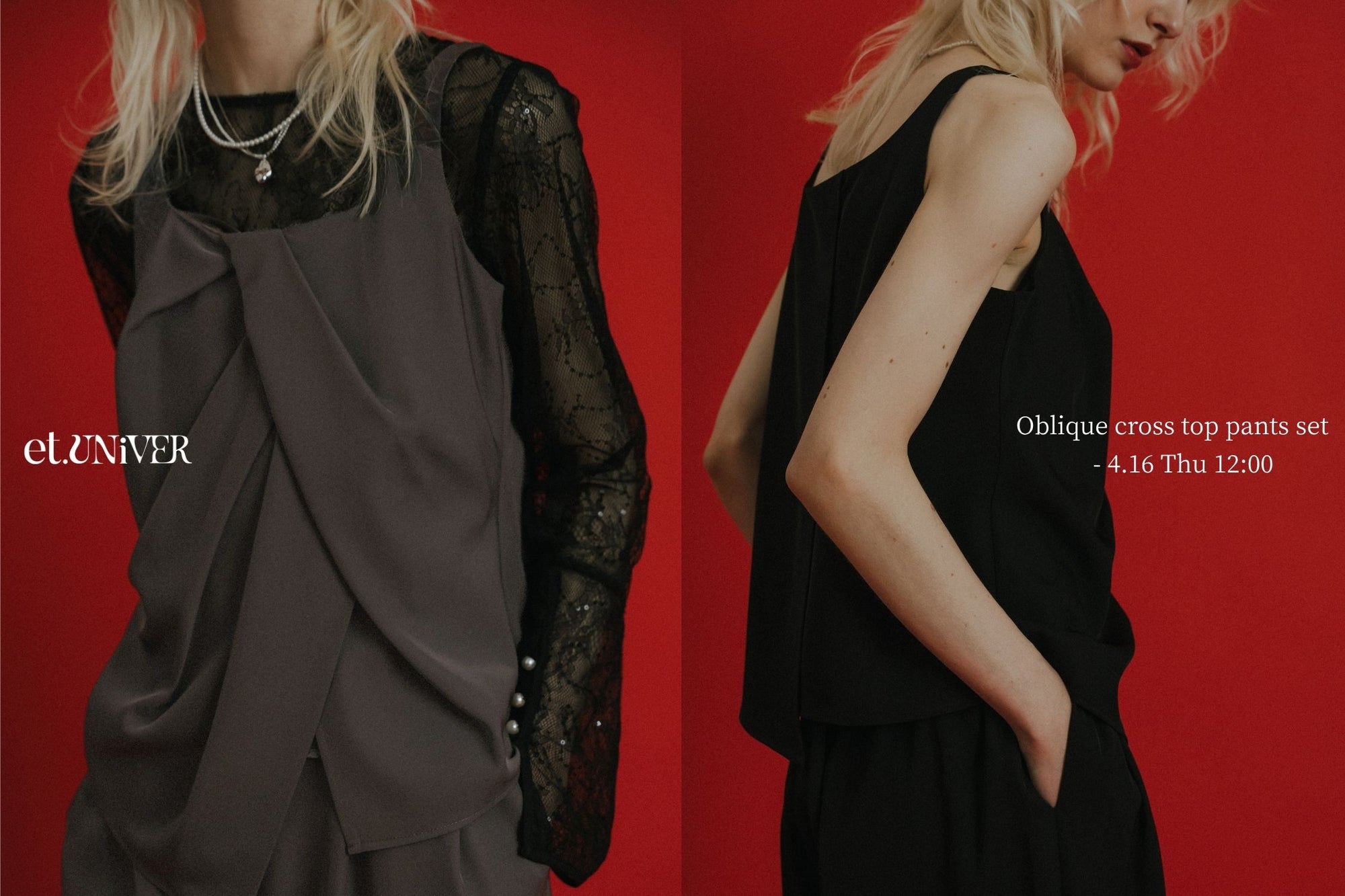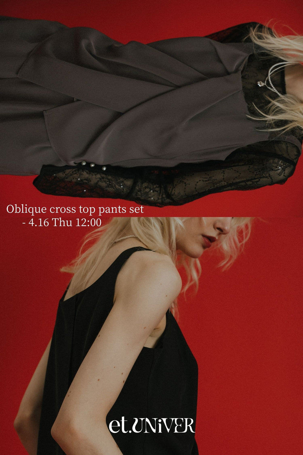 1084 Oblique cross top pants set