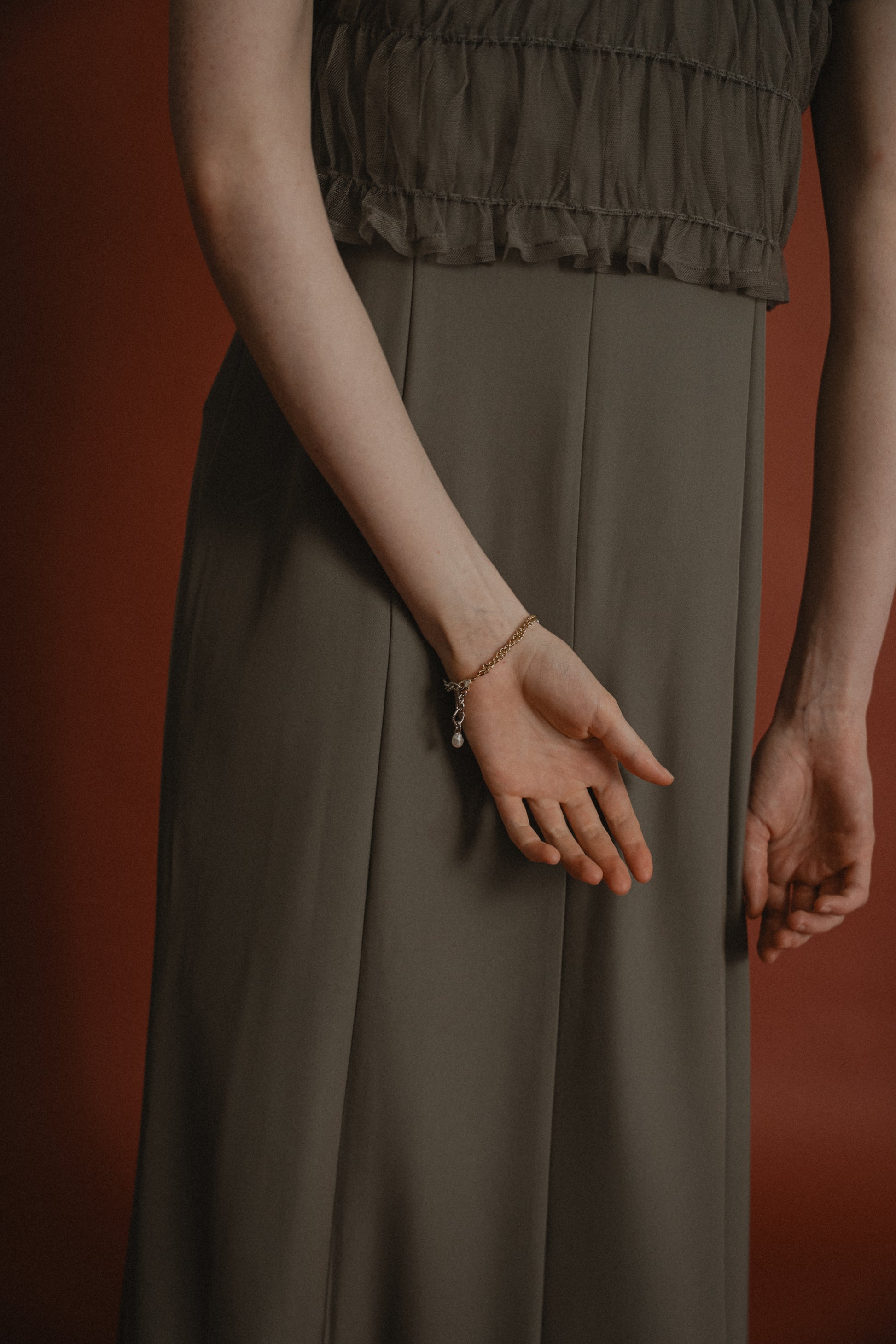 異素材ミックスのデザインに、ひと粒パールをあしらうことで洗練された大人の雰囲気に仕上げました。