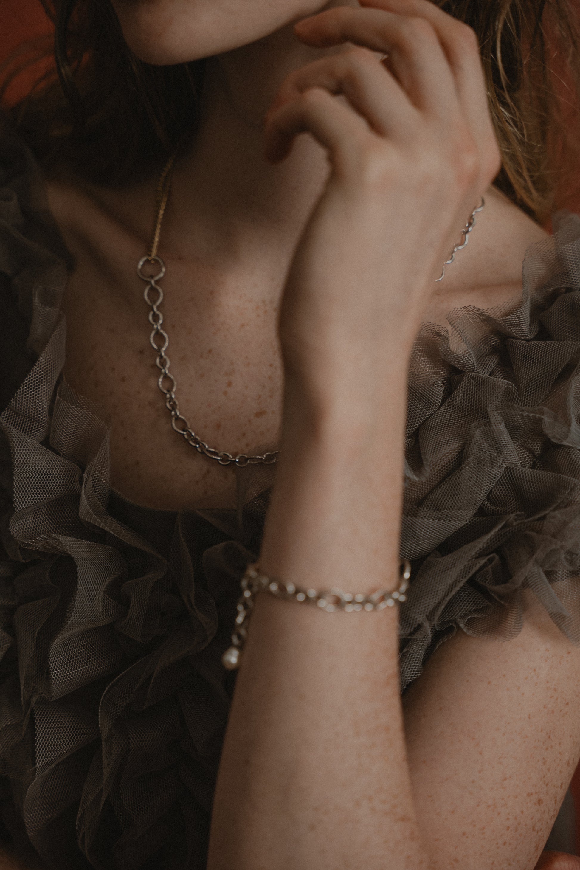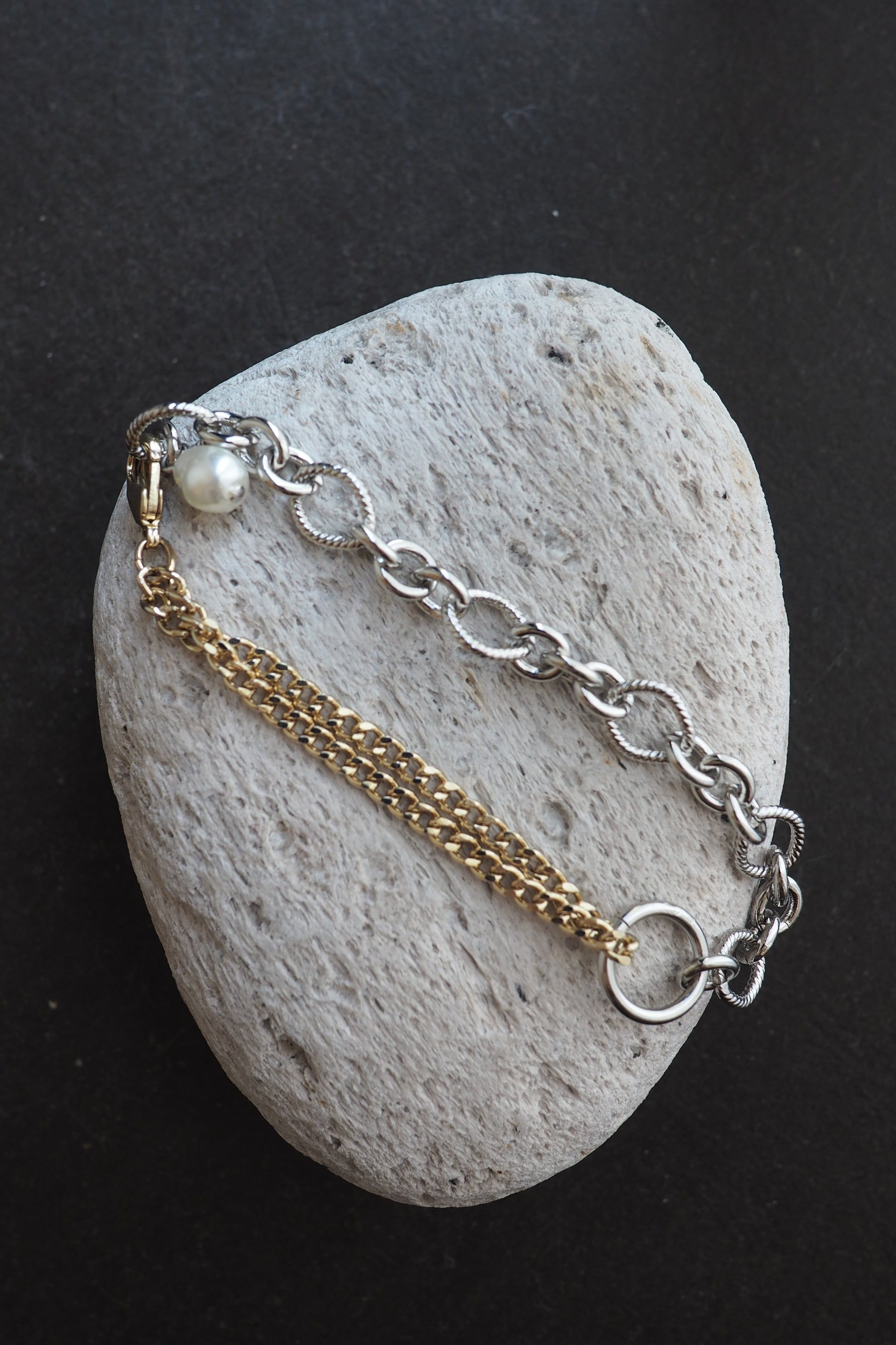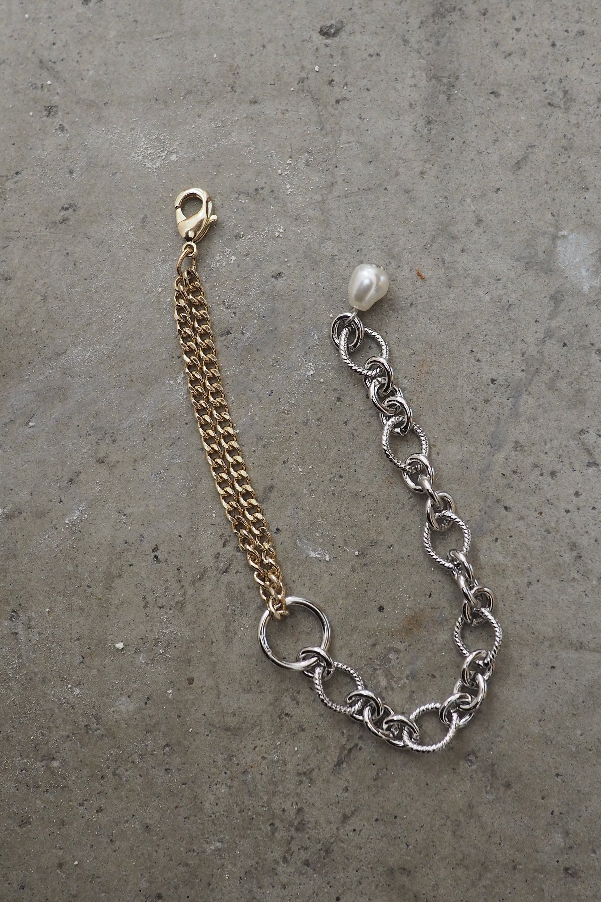 シルバーとゴールドのチェーンを組み合わせたブレスレット。