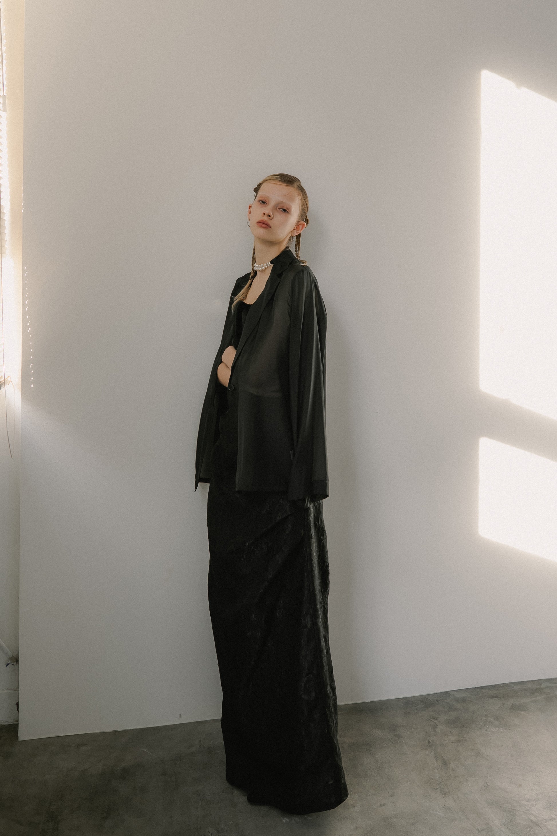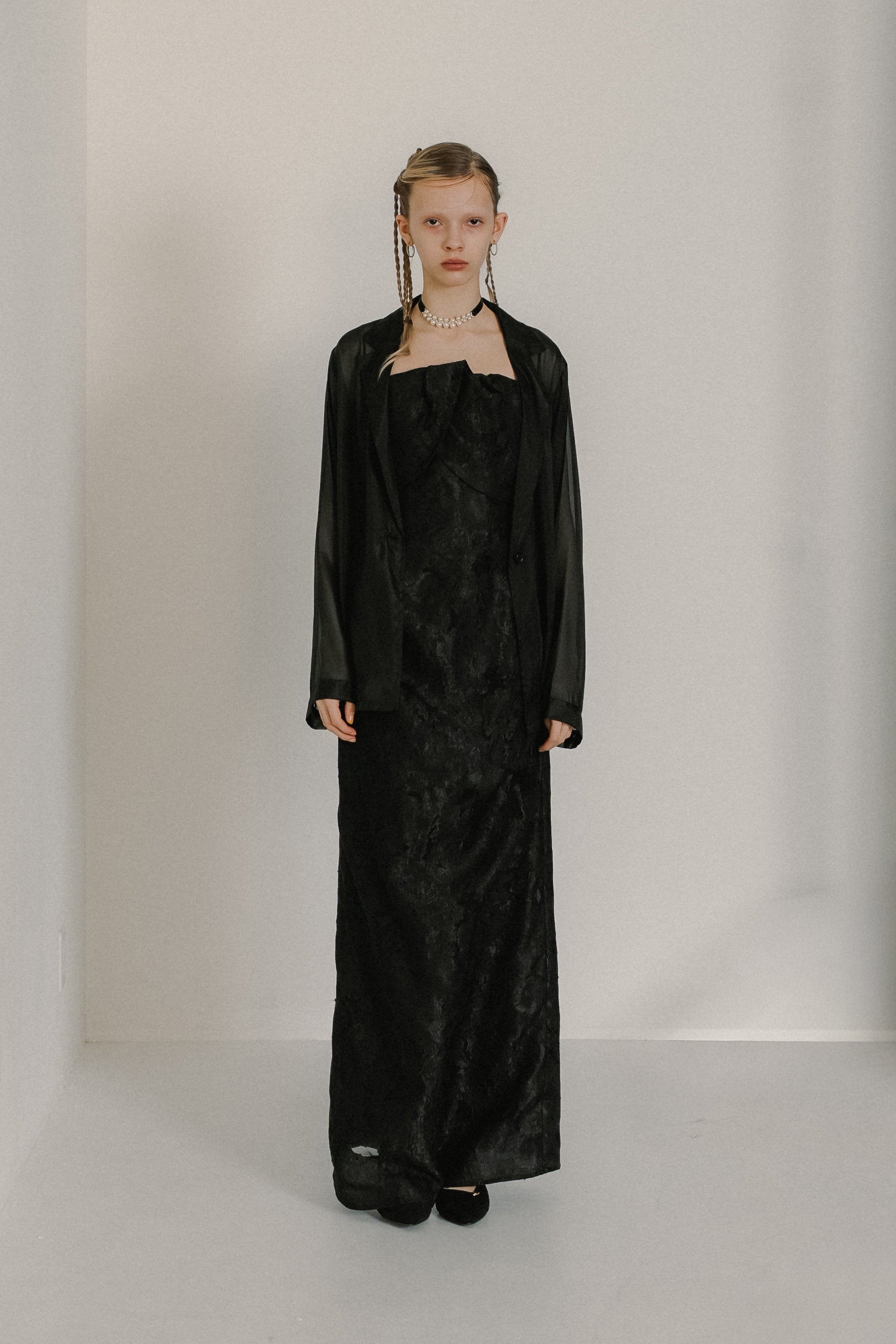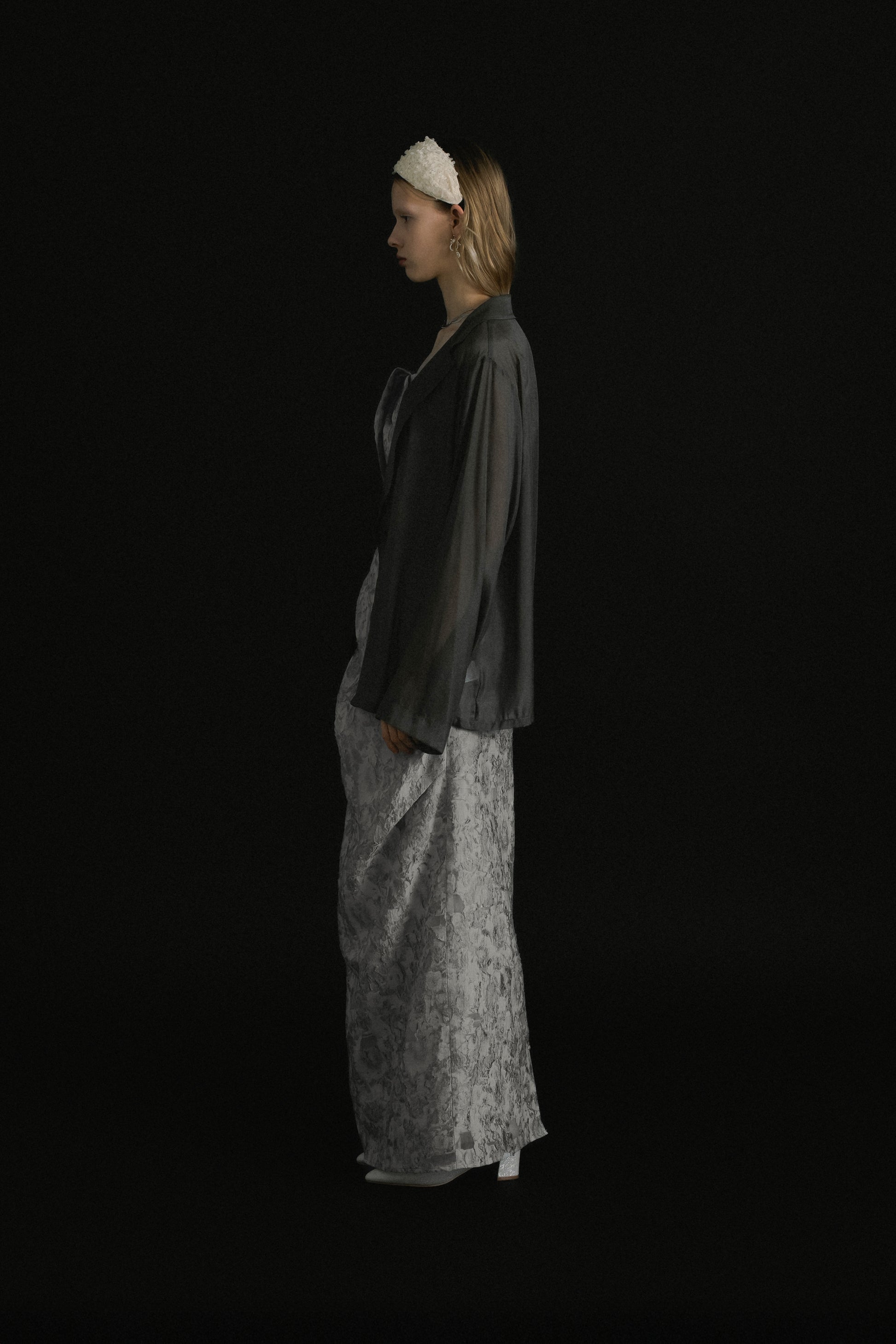 軽やかな透け感が、スタイリングに奥行きを与えるシアージャケット。
