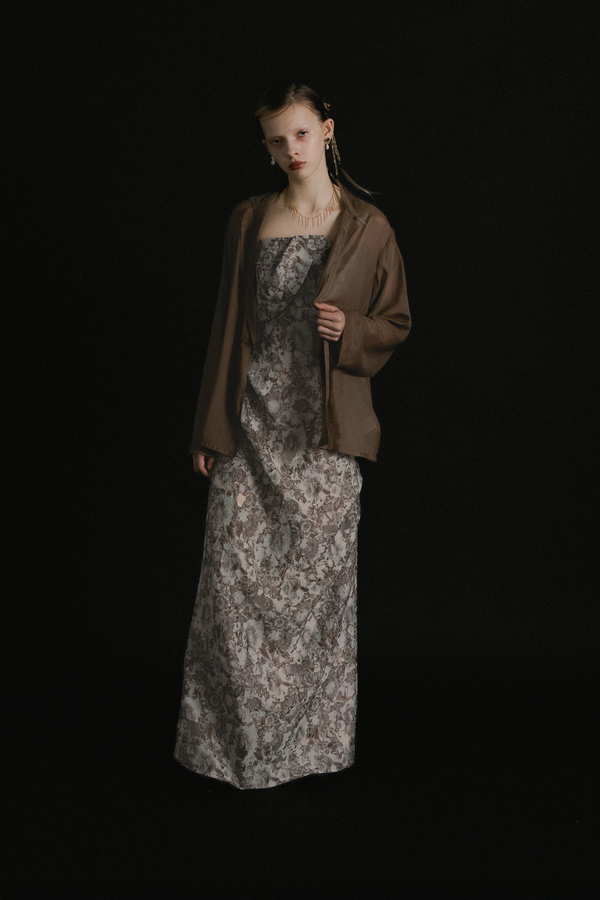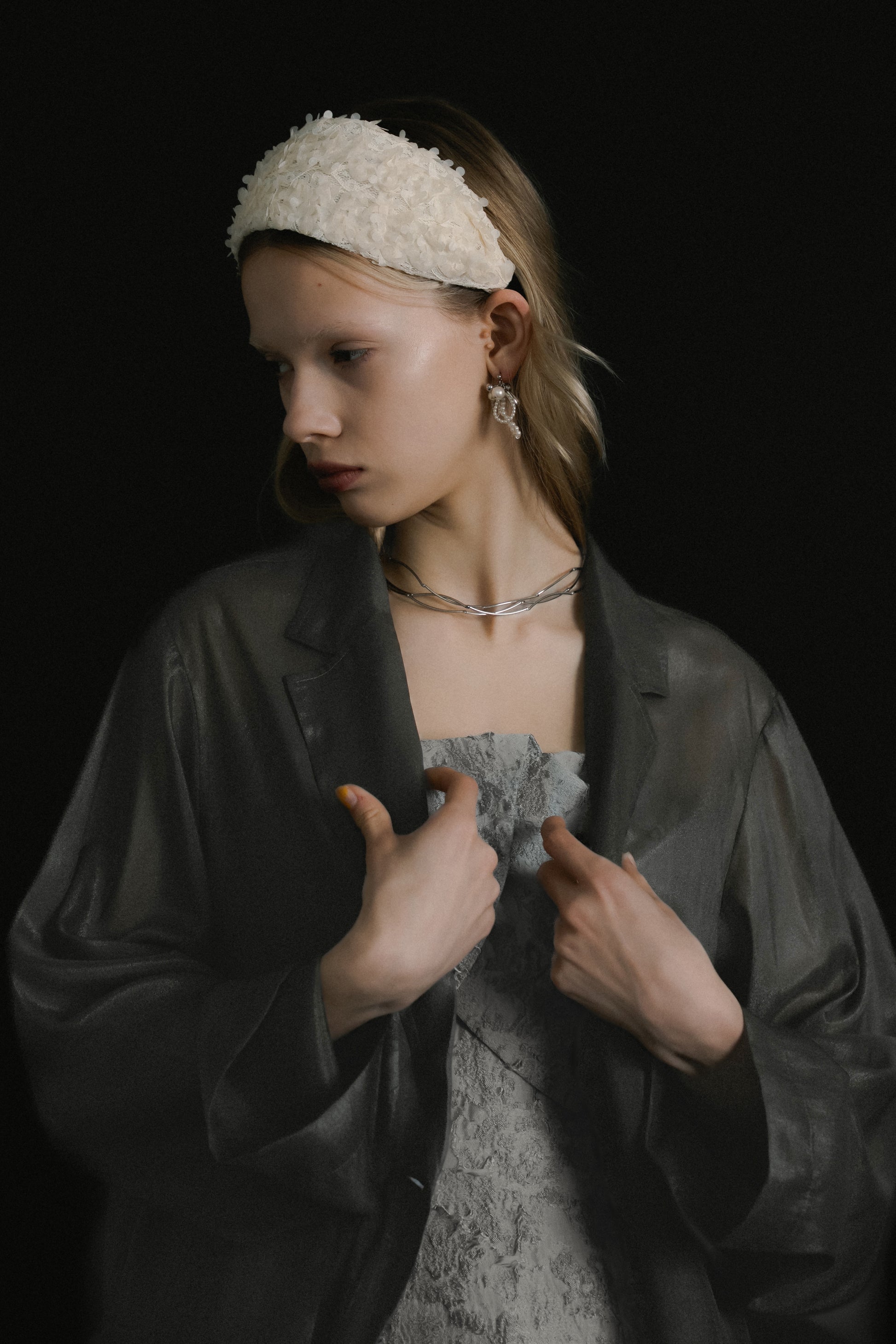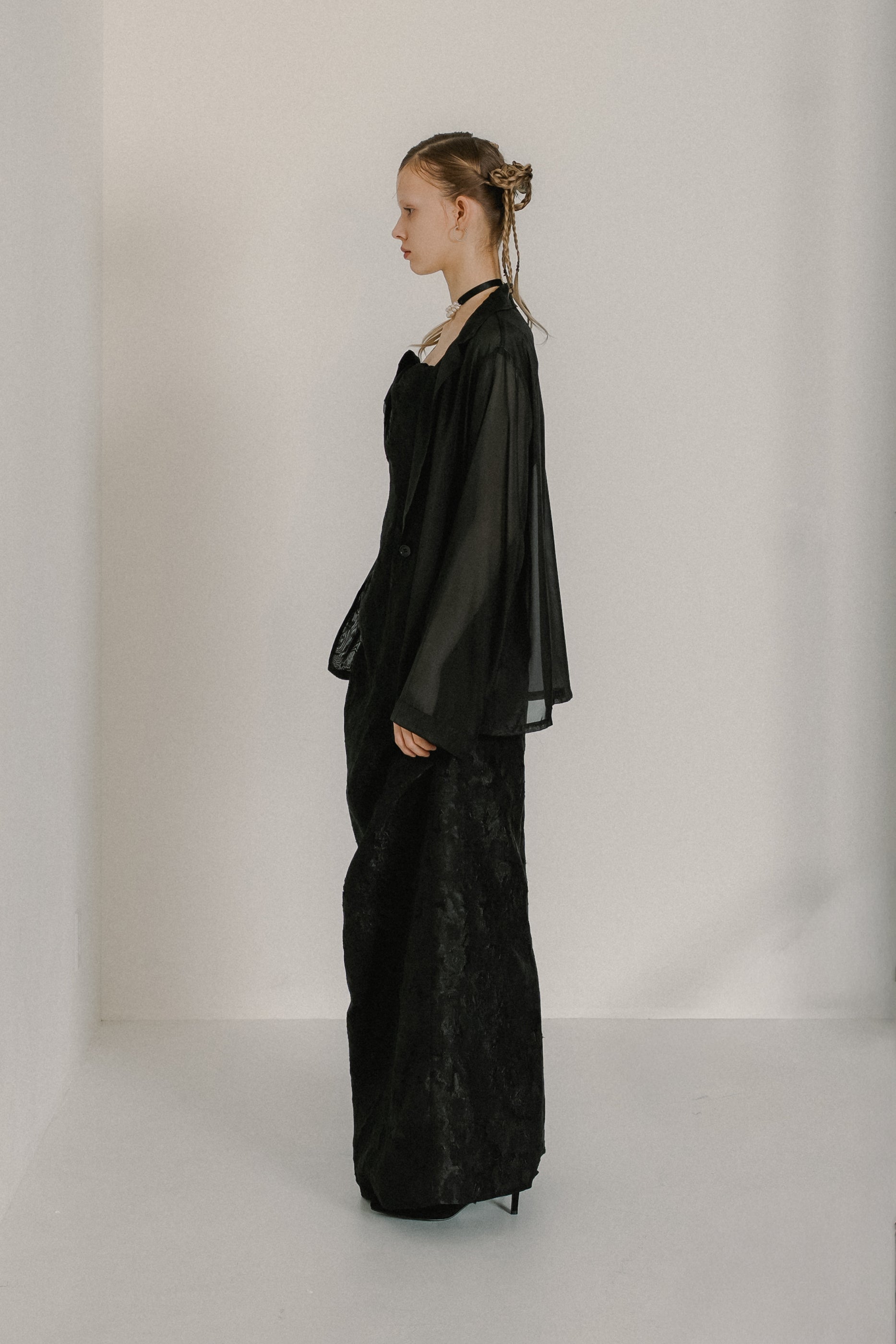 軽やかな透け感が、スタイリングに奥行きを与えるシアージャケット。
