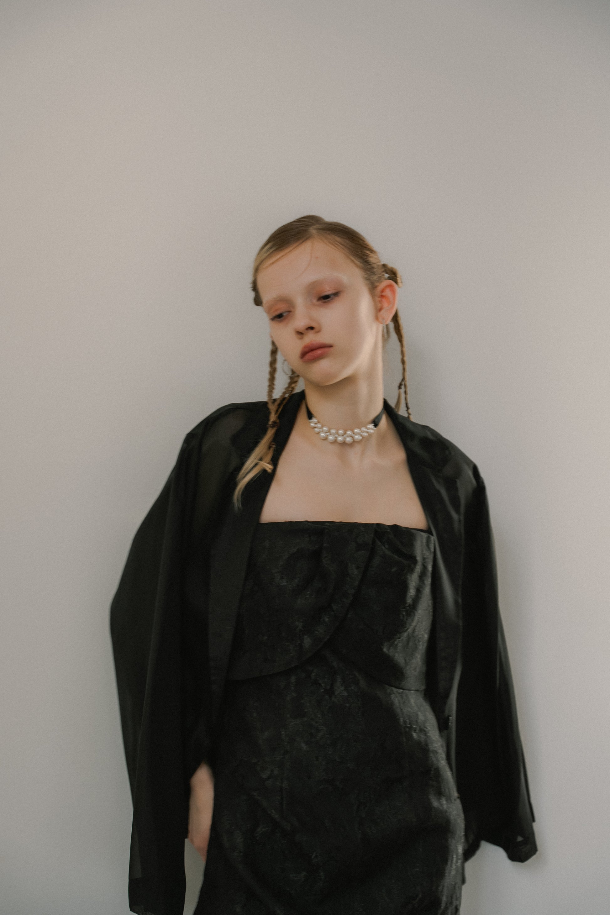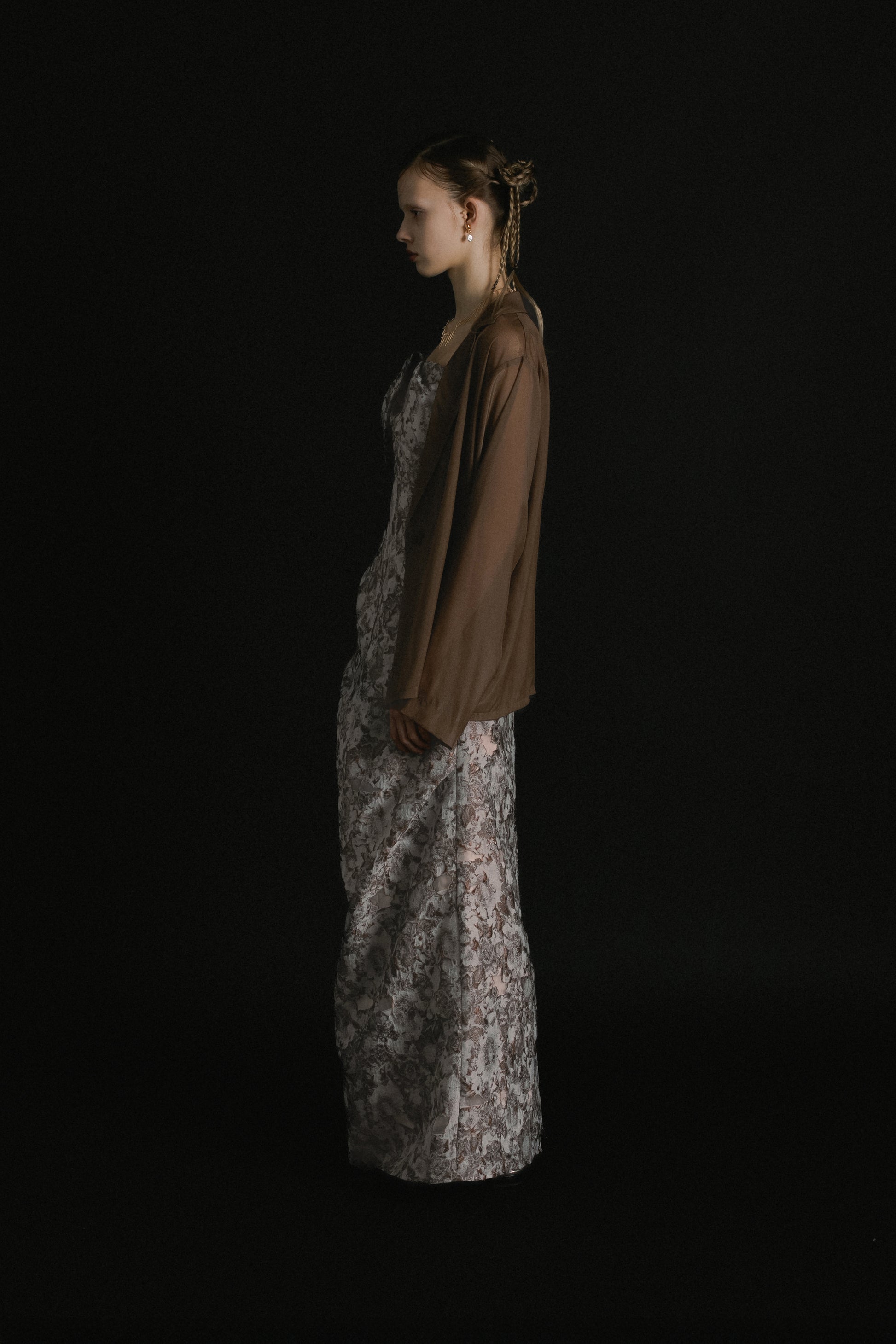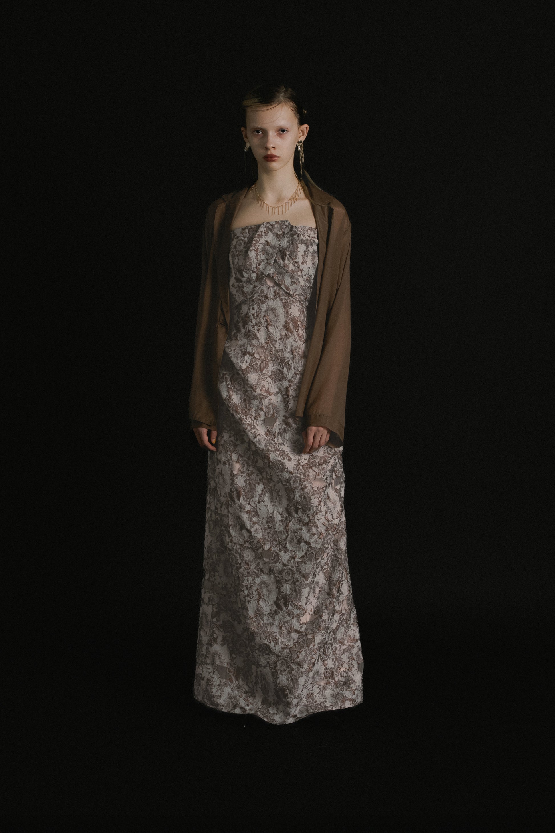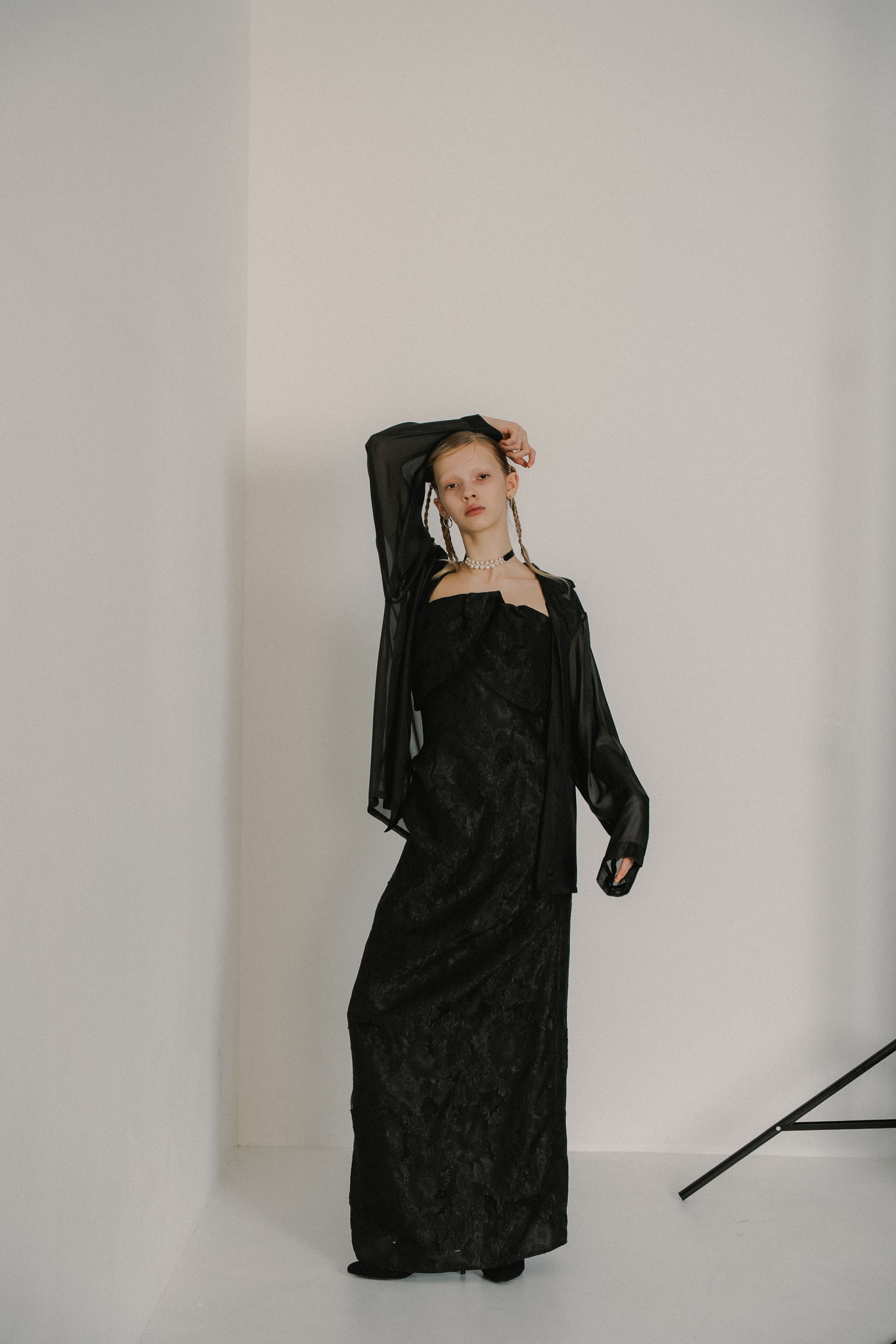フロントはあえてミニマルに仕上げ、ドレスのデザインを引き立てるバランスに。