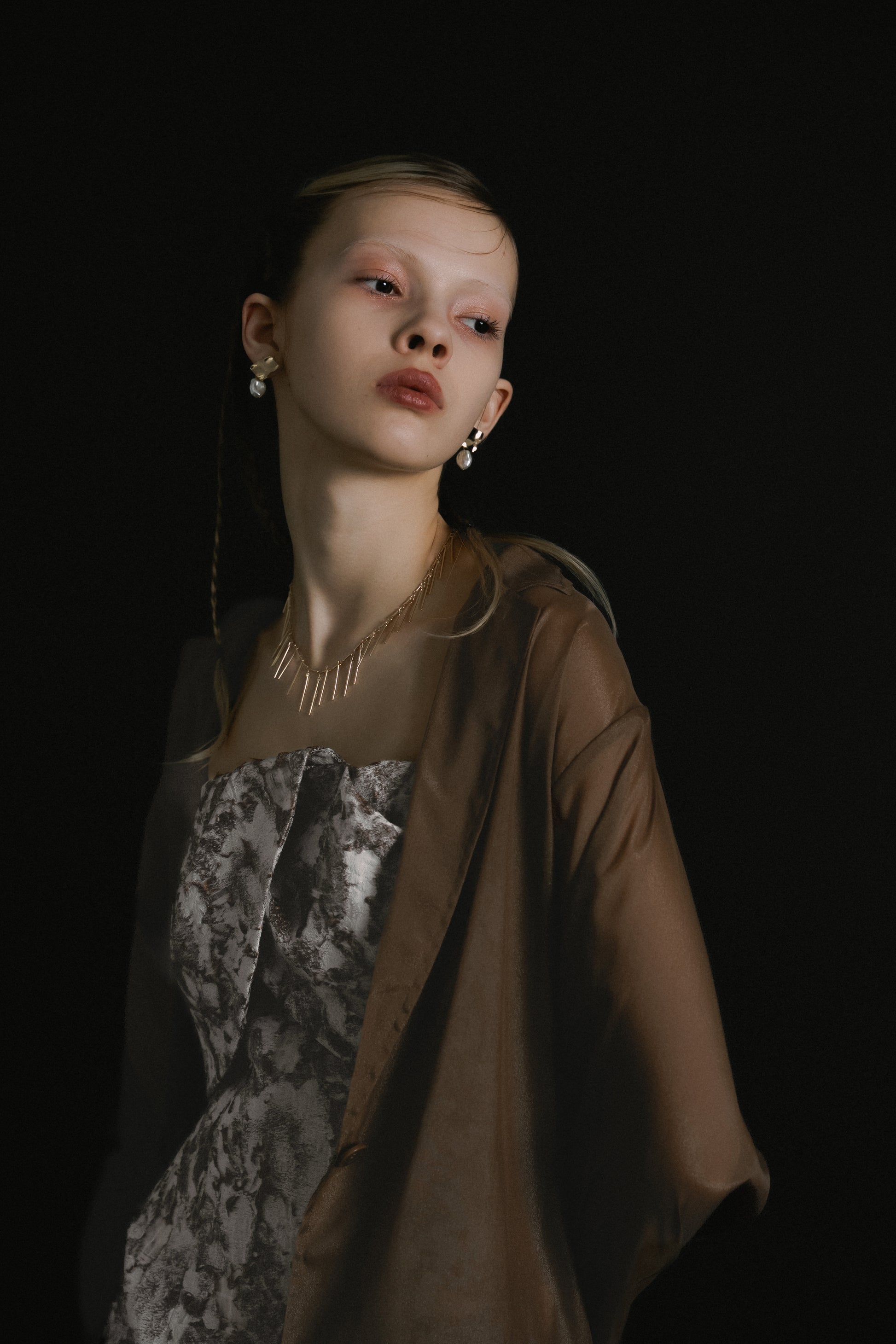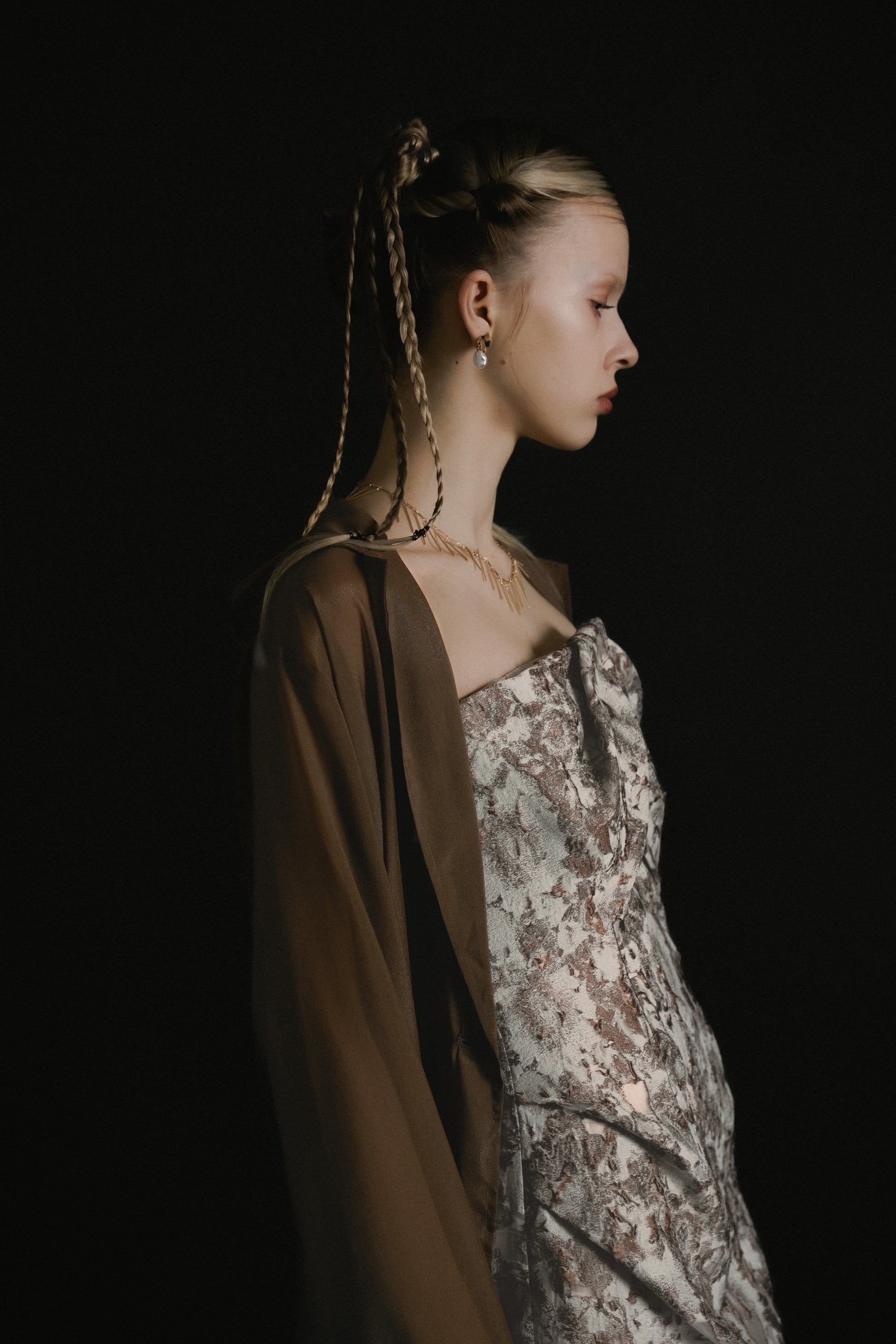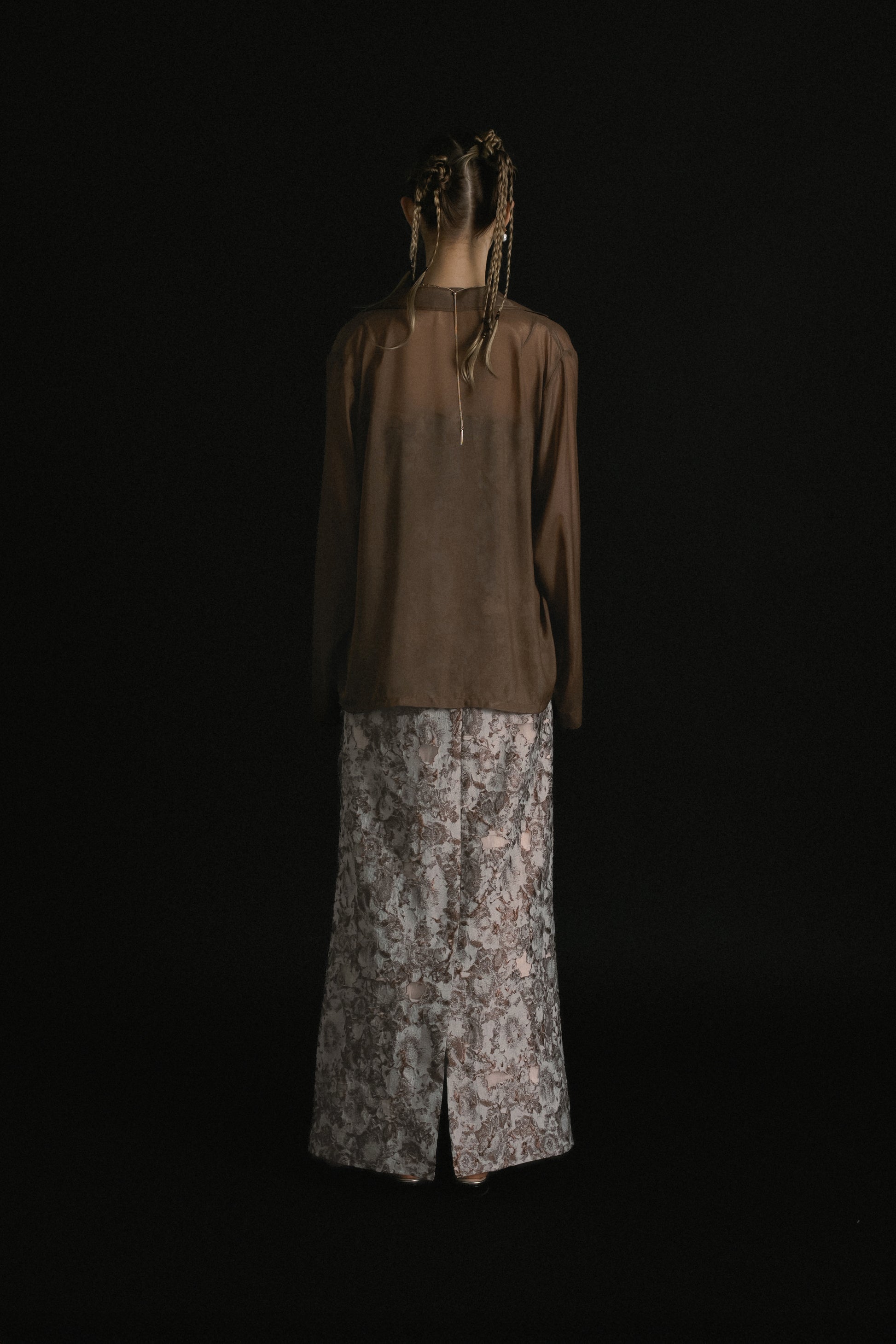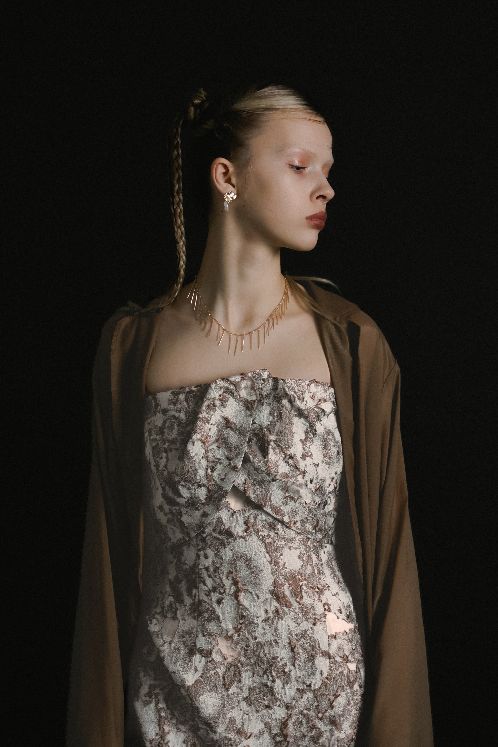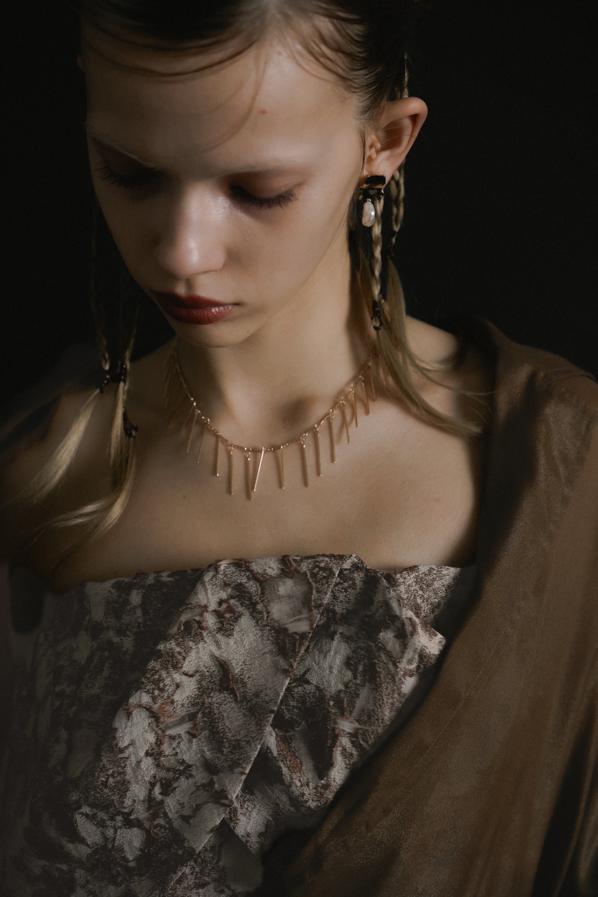 フロントはあえてミニマルに仕上げ、ドレスのデザインを引き立てるバランスに。