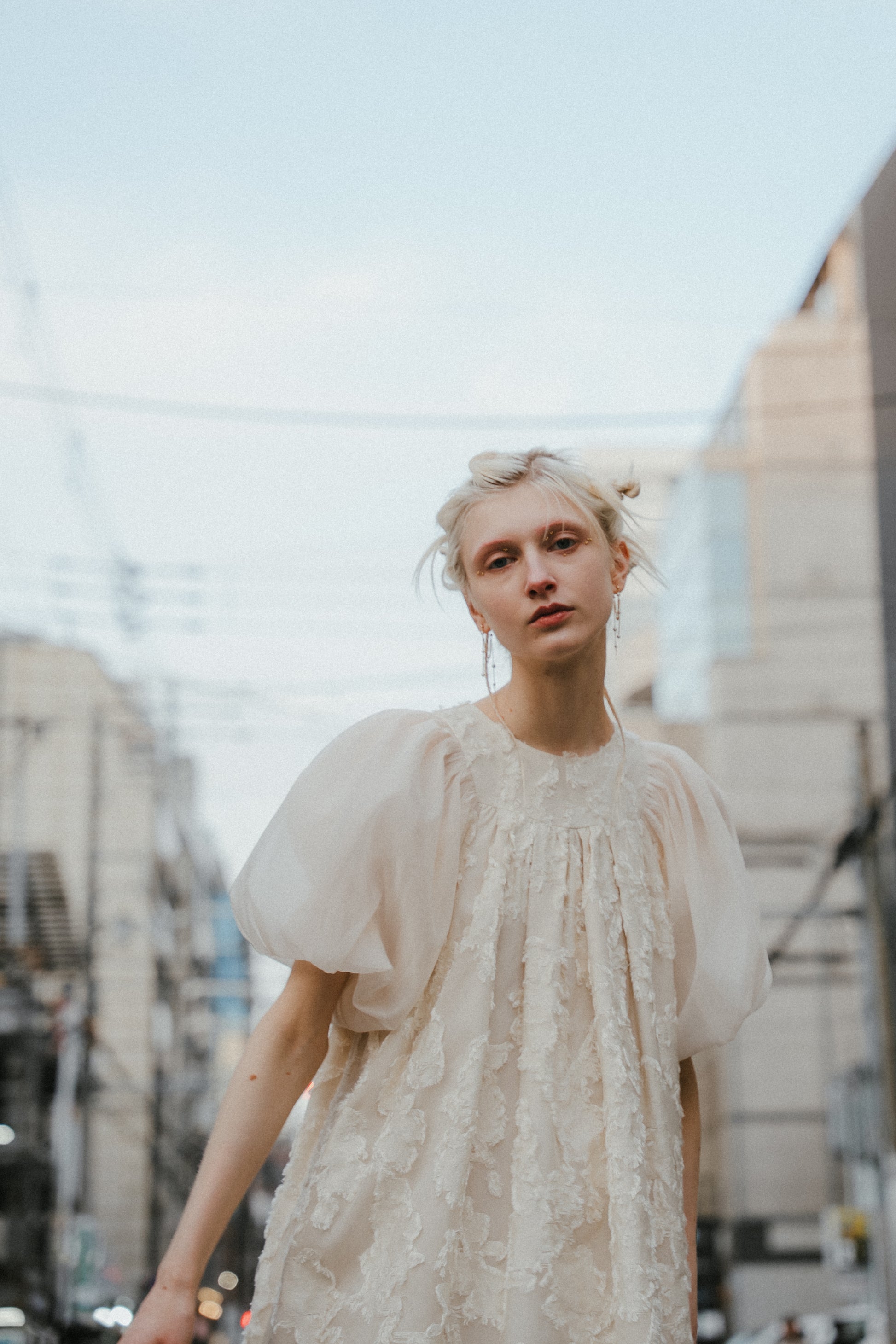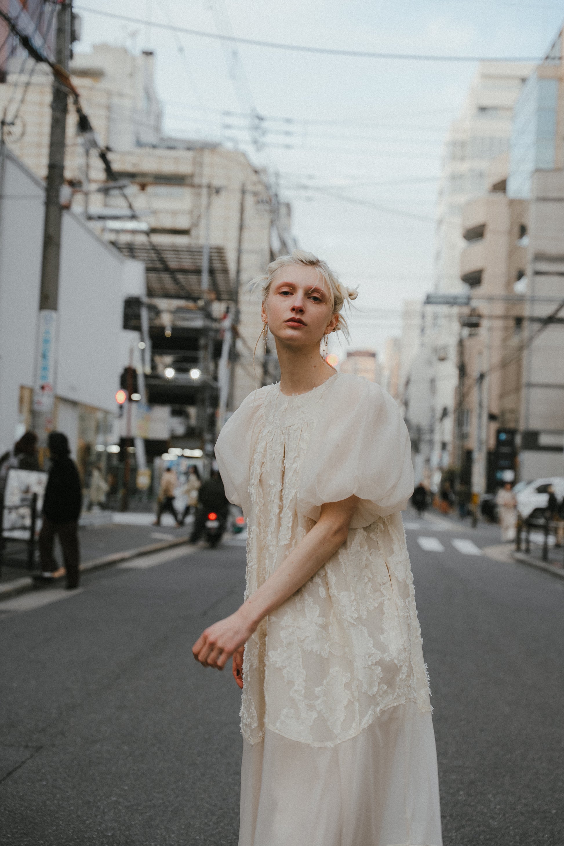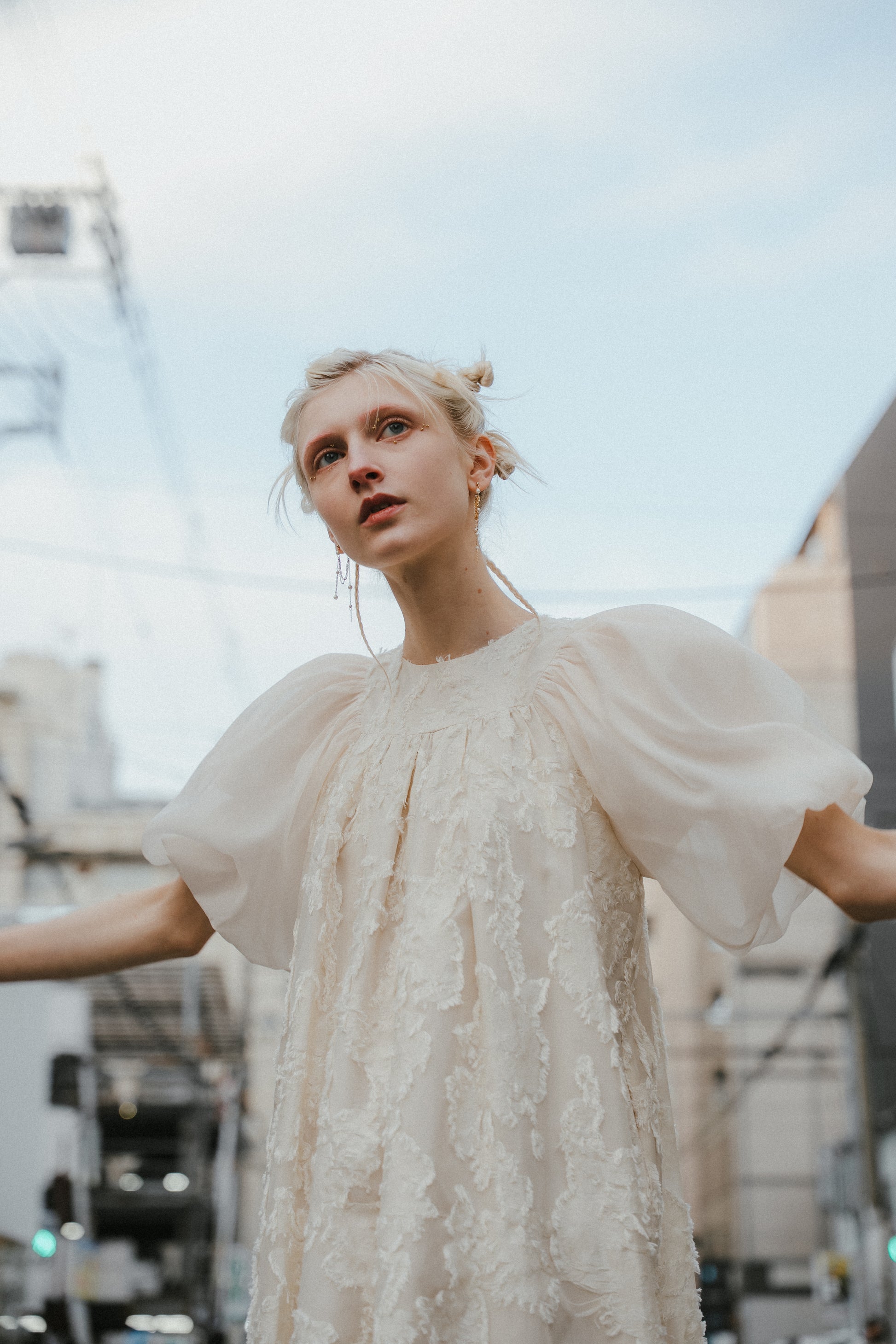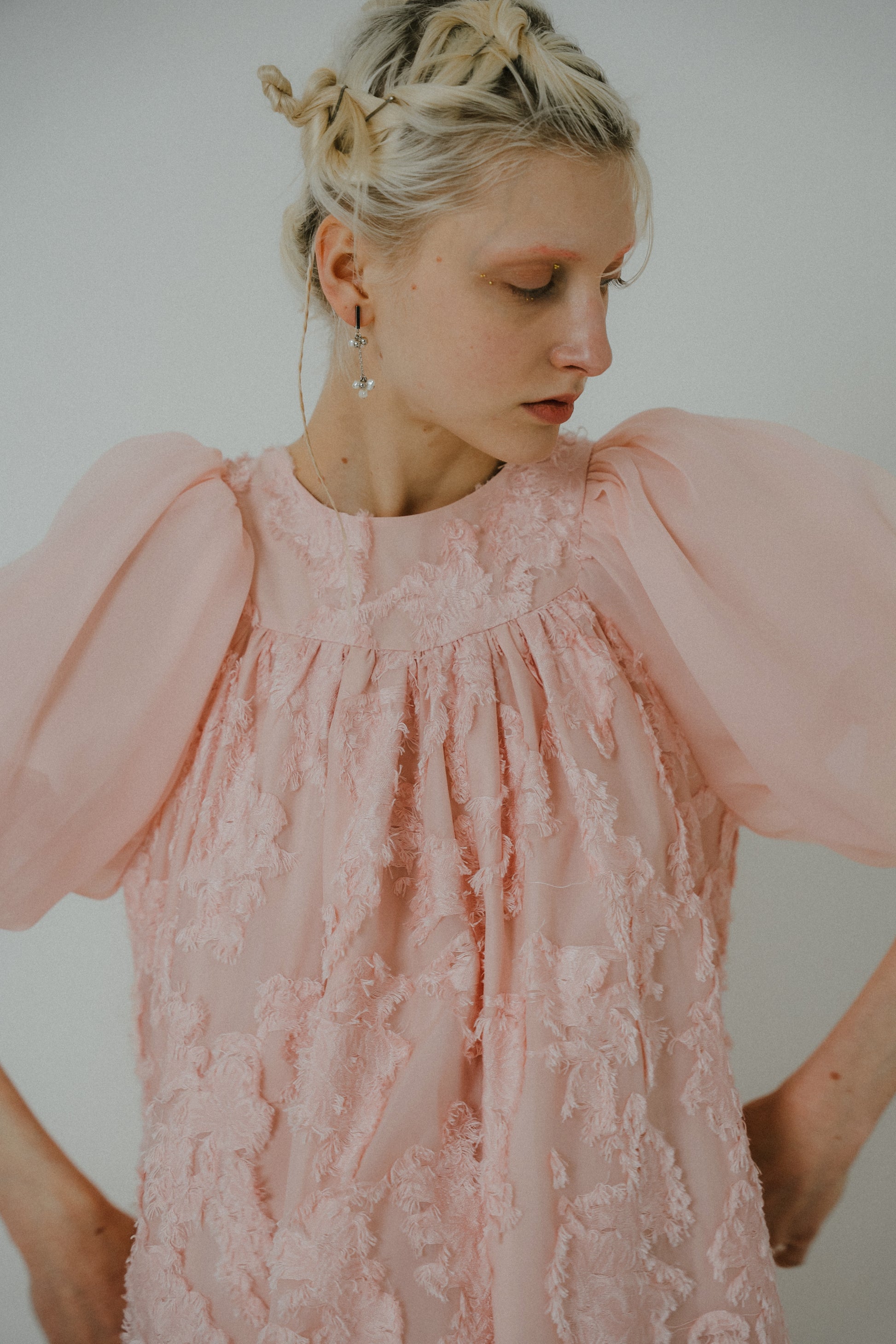 ・繊細なシアー素材に奥行きを持たせた生地感が、柔らかさの中に上品な華やかさを演出します。