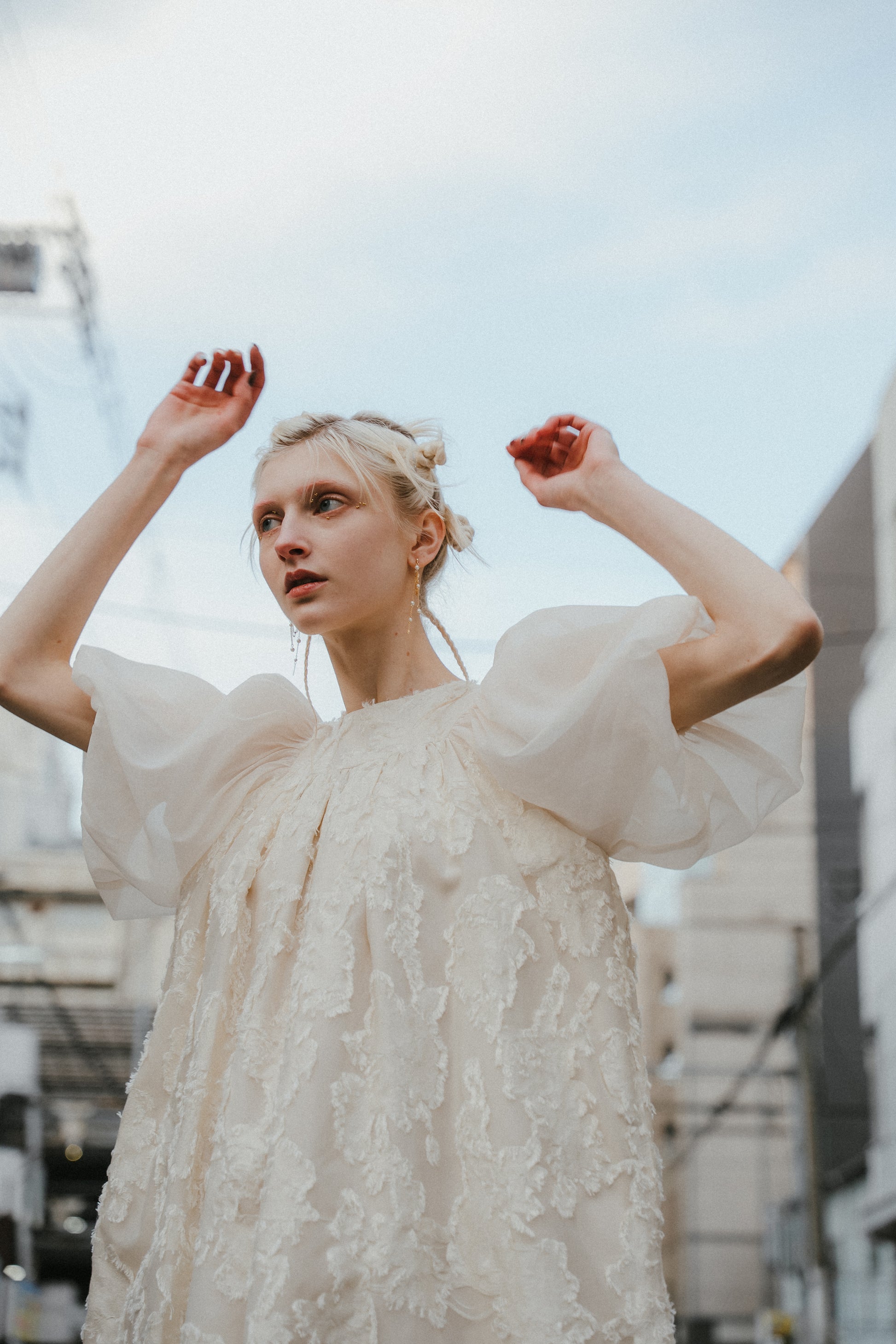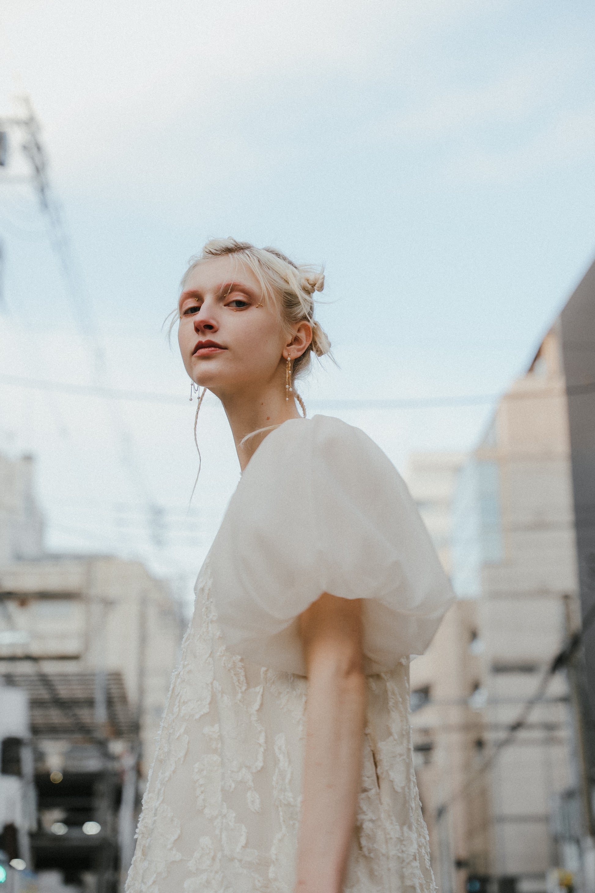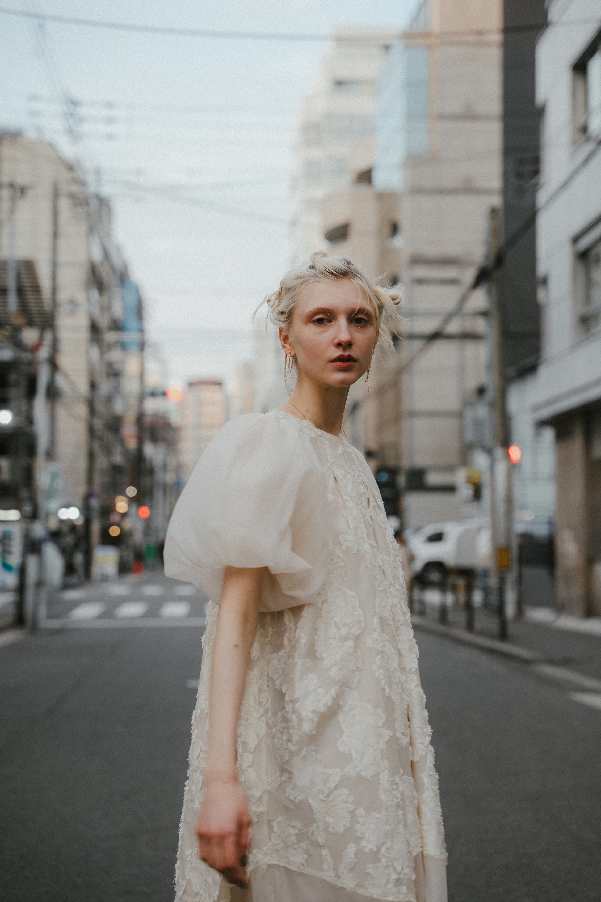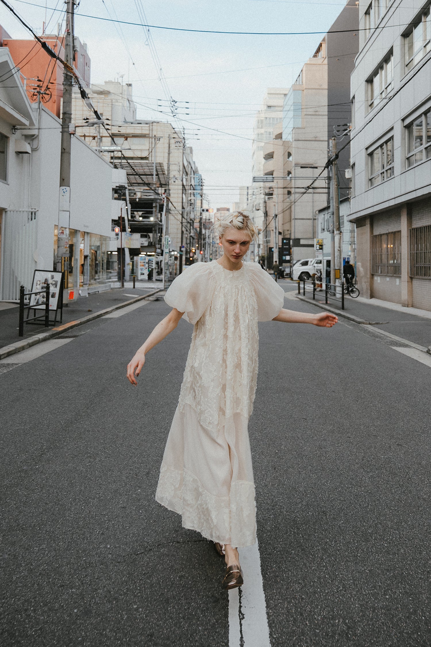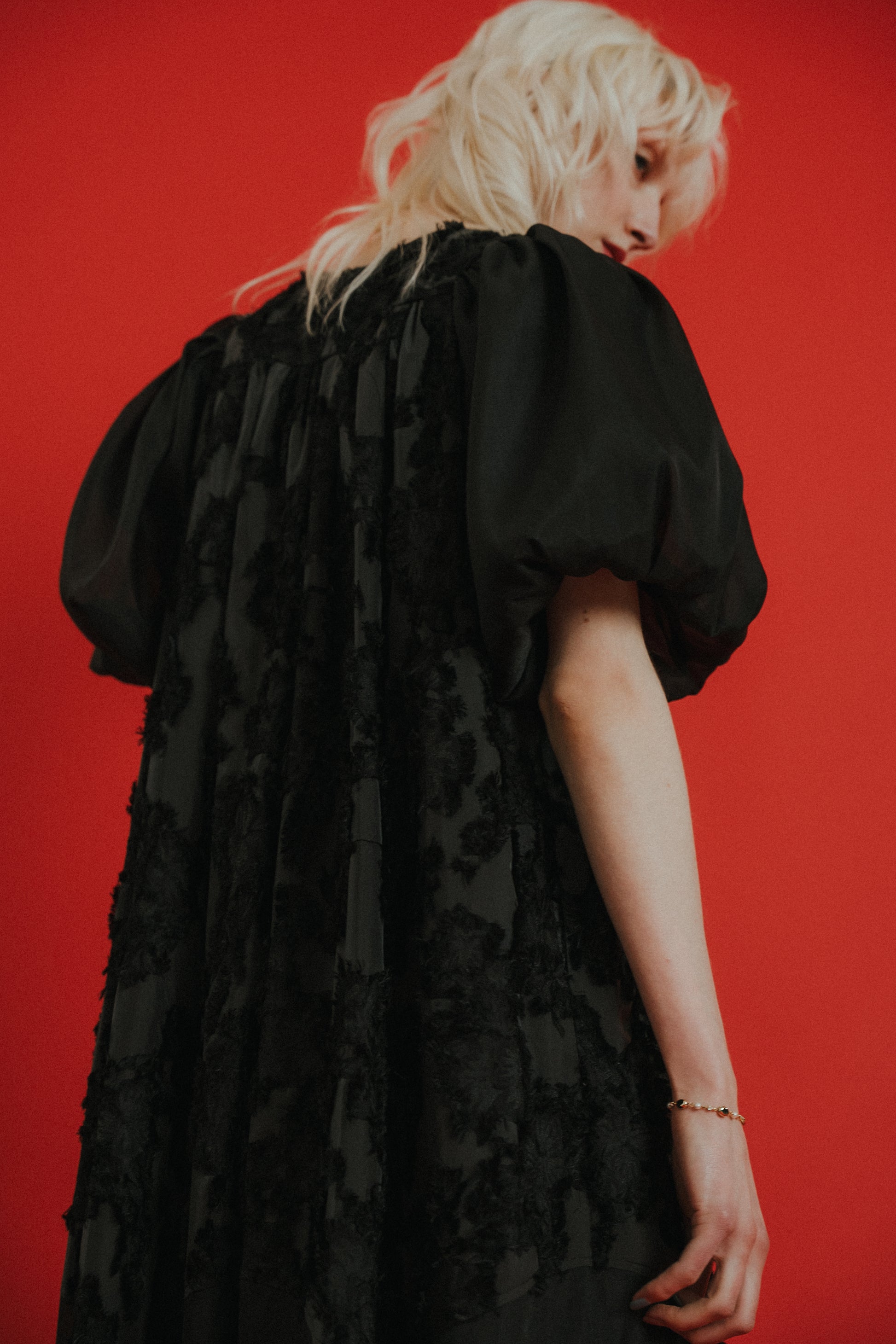 ・繊細なシアー素材に奥行きを持たせた生地感が、柔らかさの中に上品な華やかさを演出します。