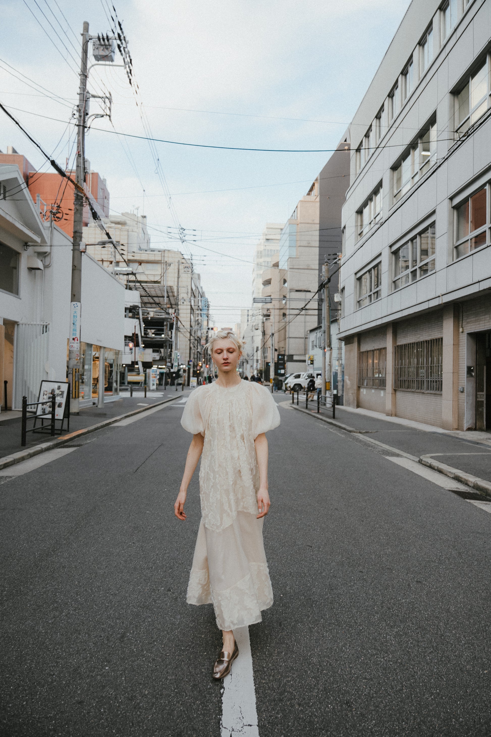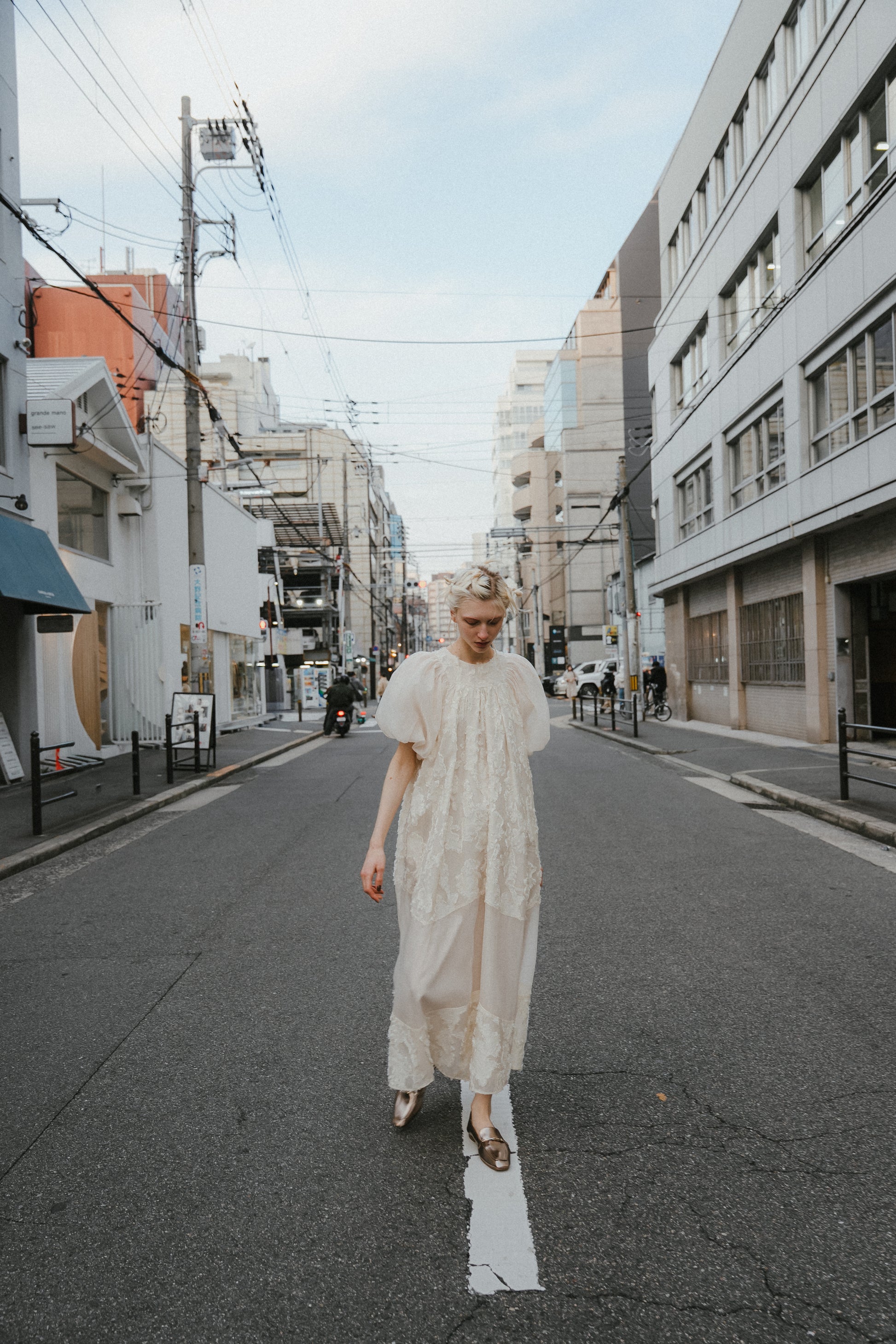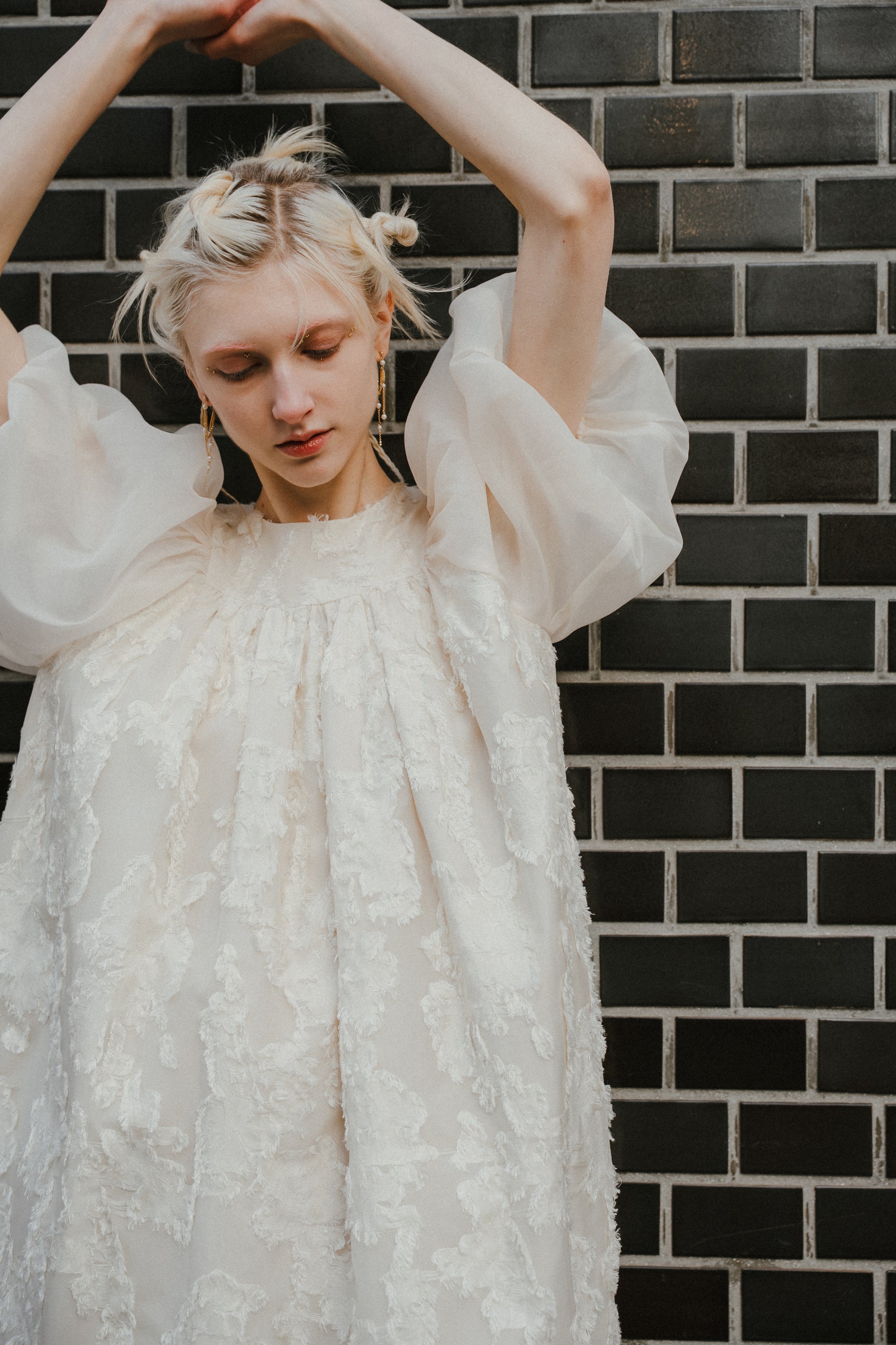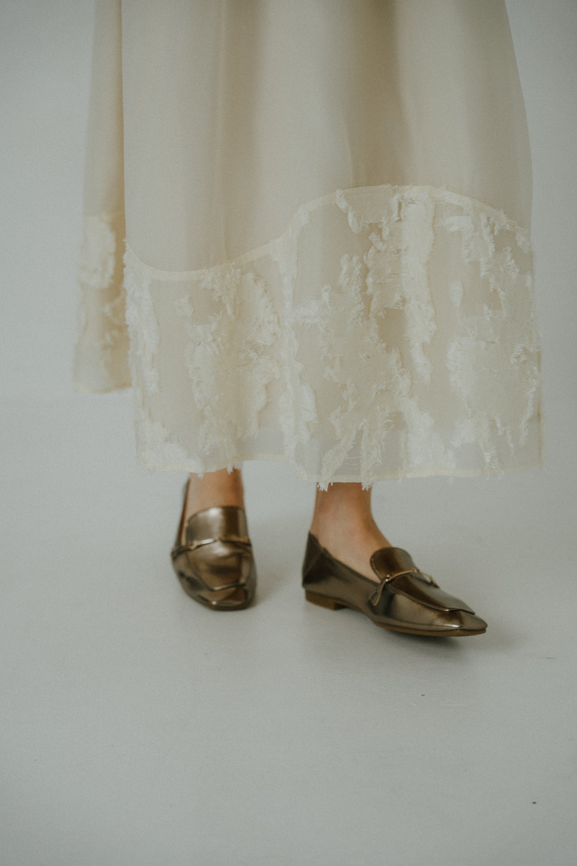 ・繊細なシアー素材に奥行きを持たせた生地感が、柔らかさの中に上品な華やかさを演出します。