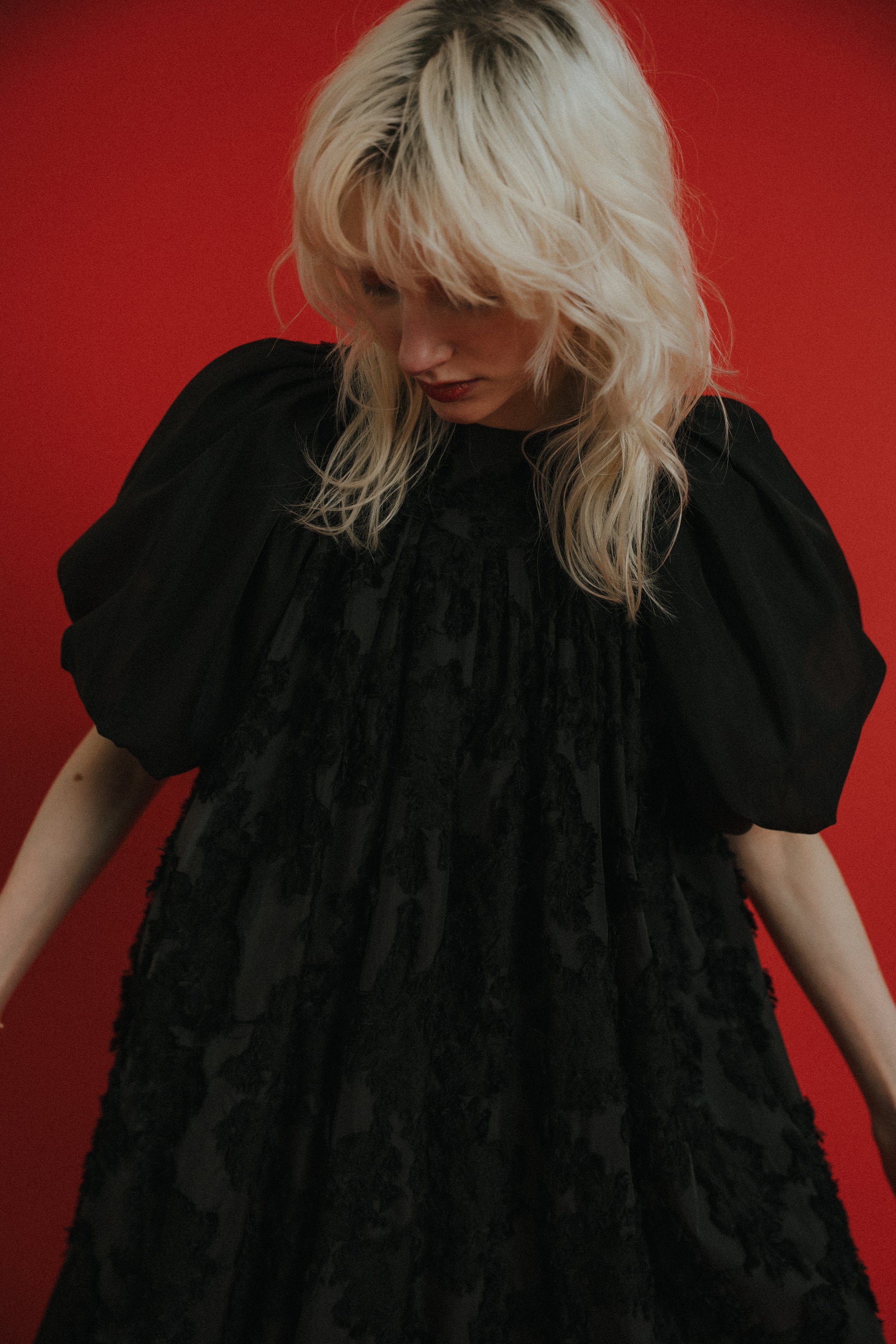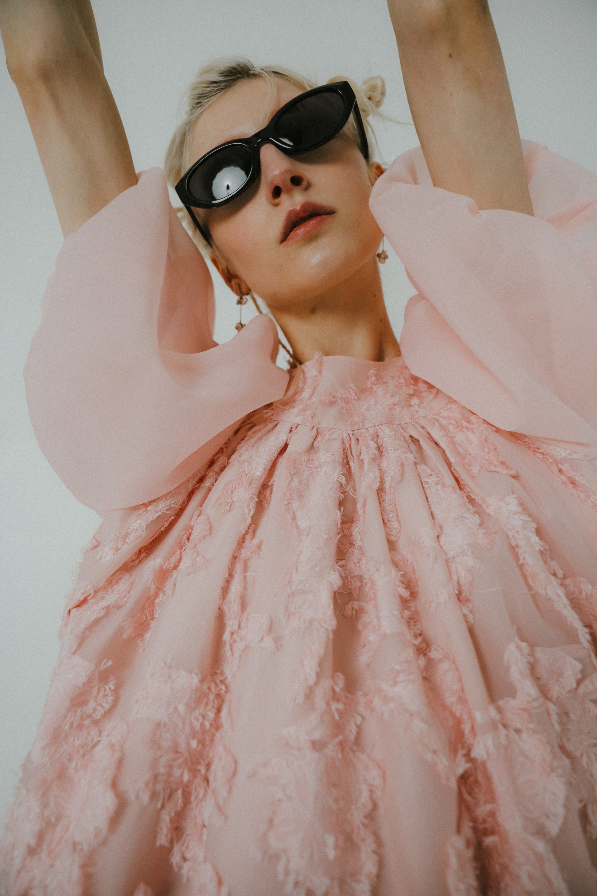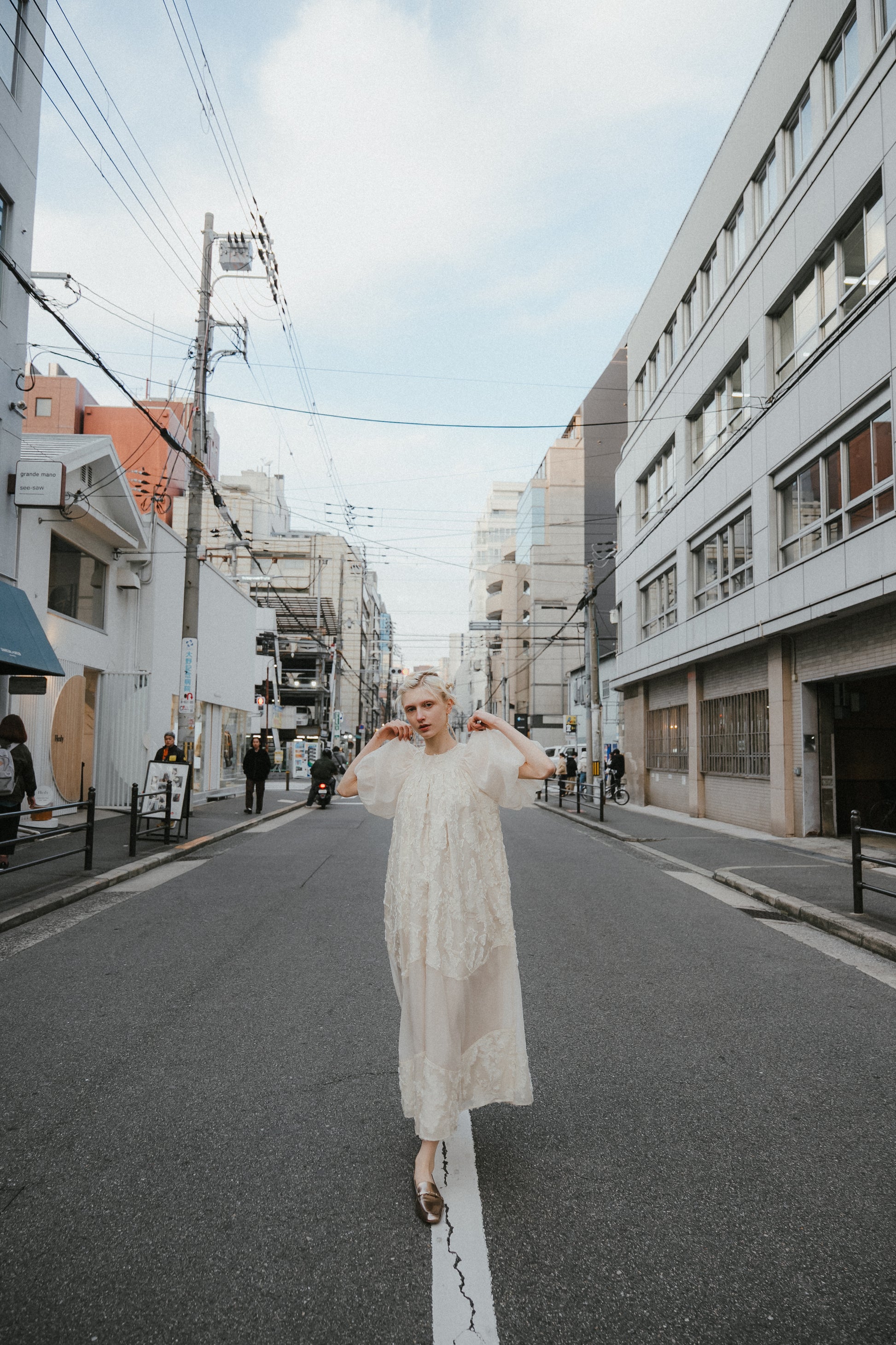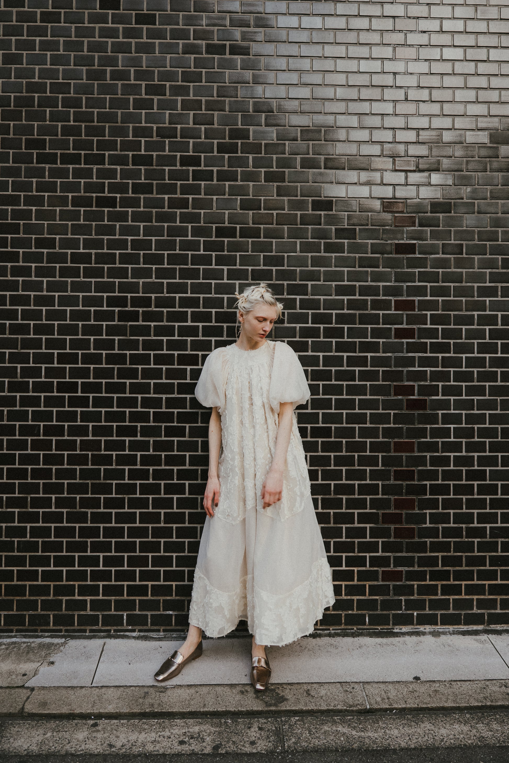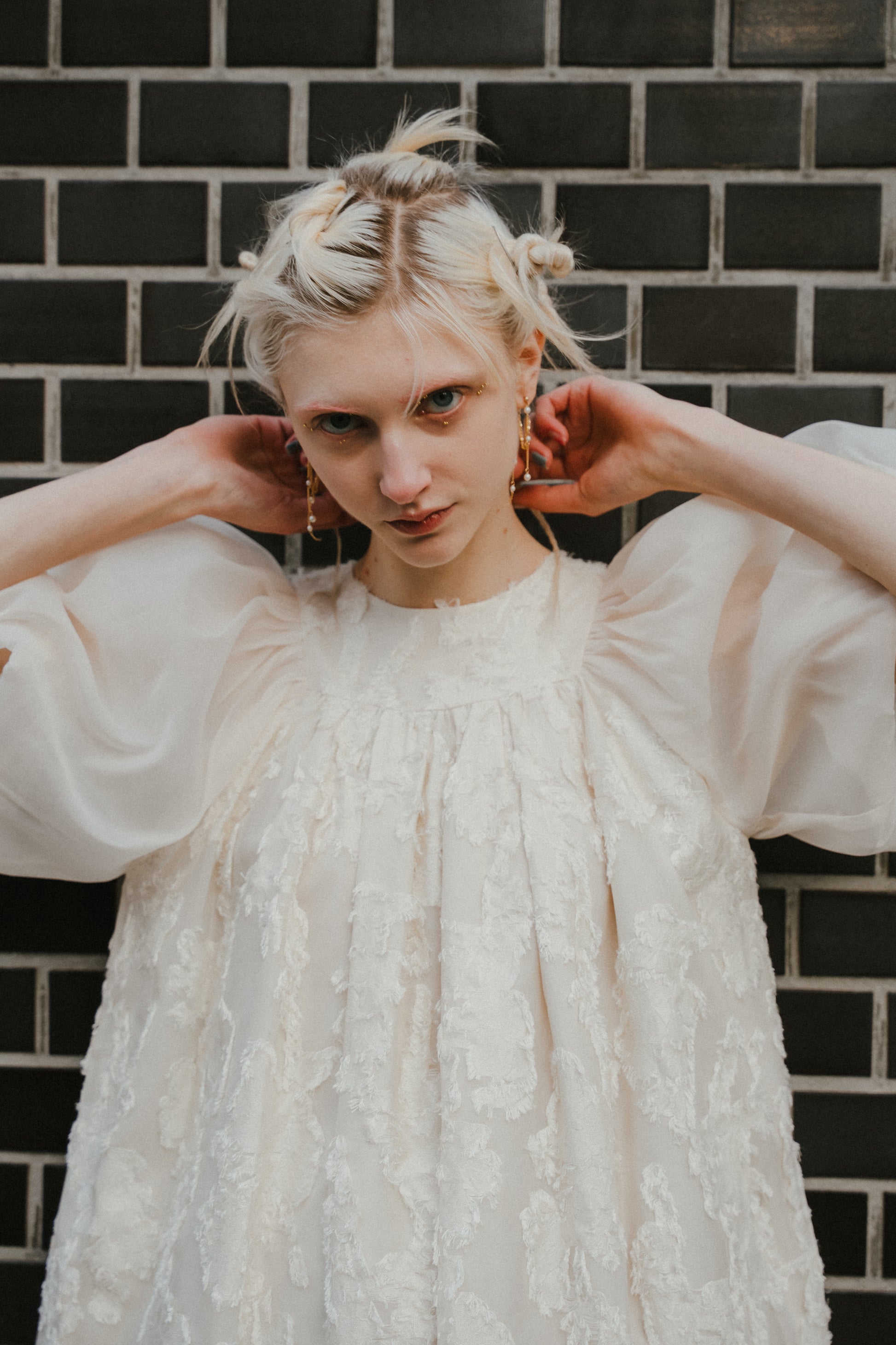 ・繊細なシアー素材に奥行きを持たせた生地感が、柔らかさの中に上品な華やかさを演出します。