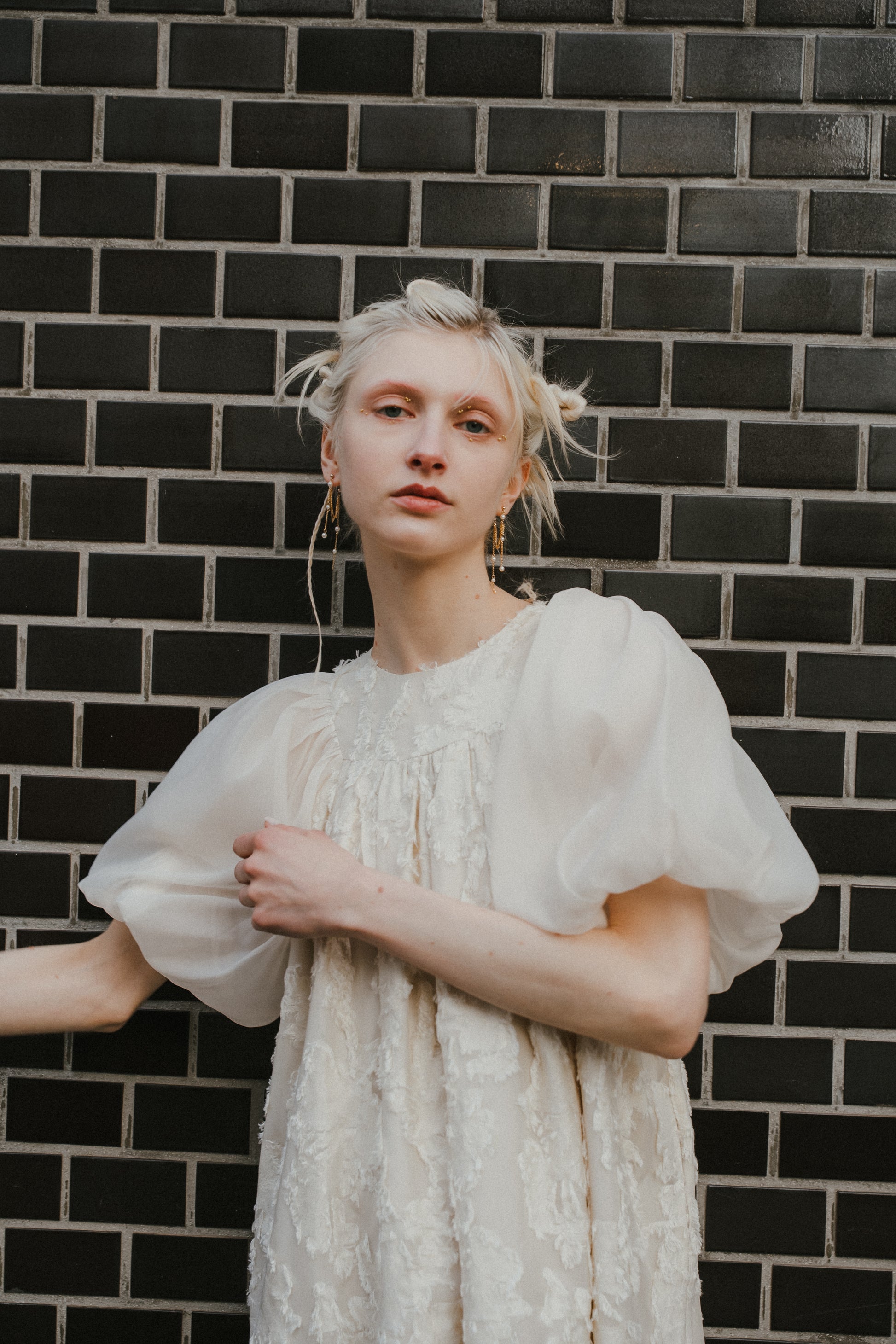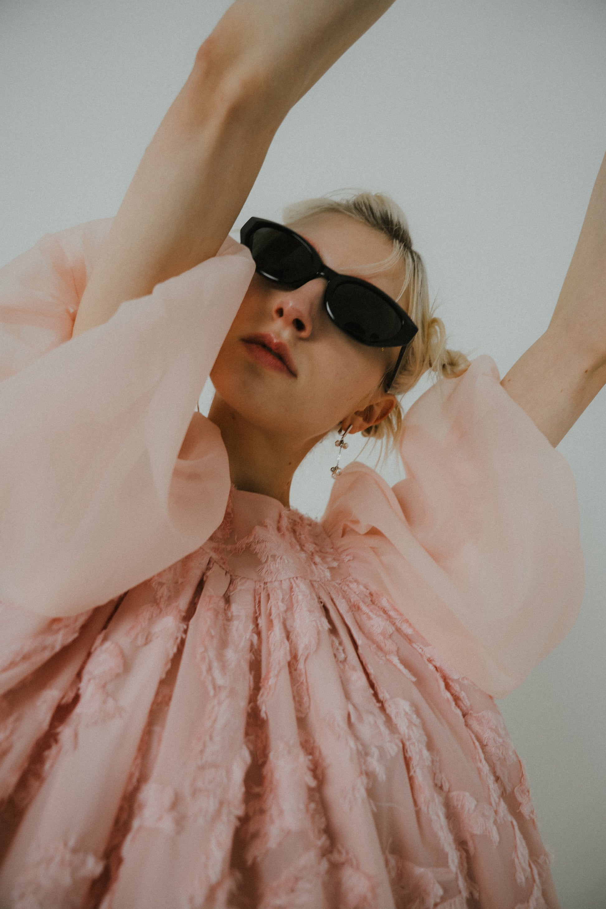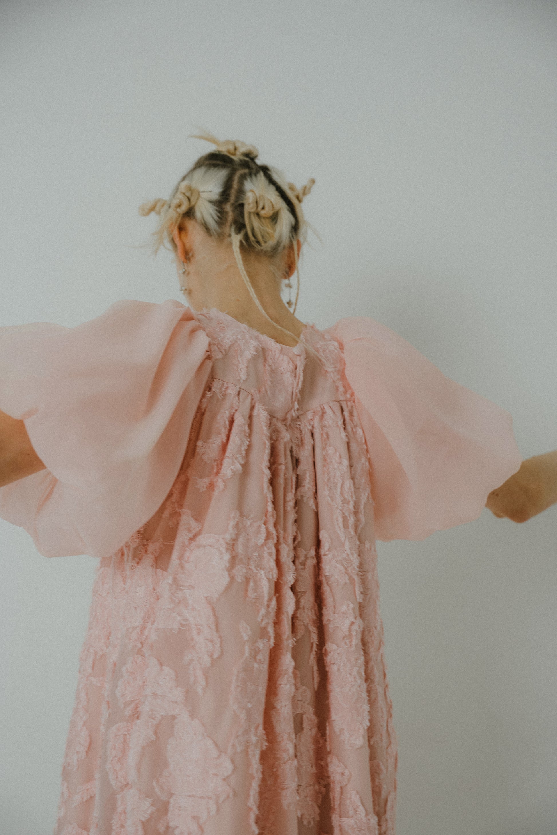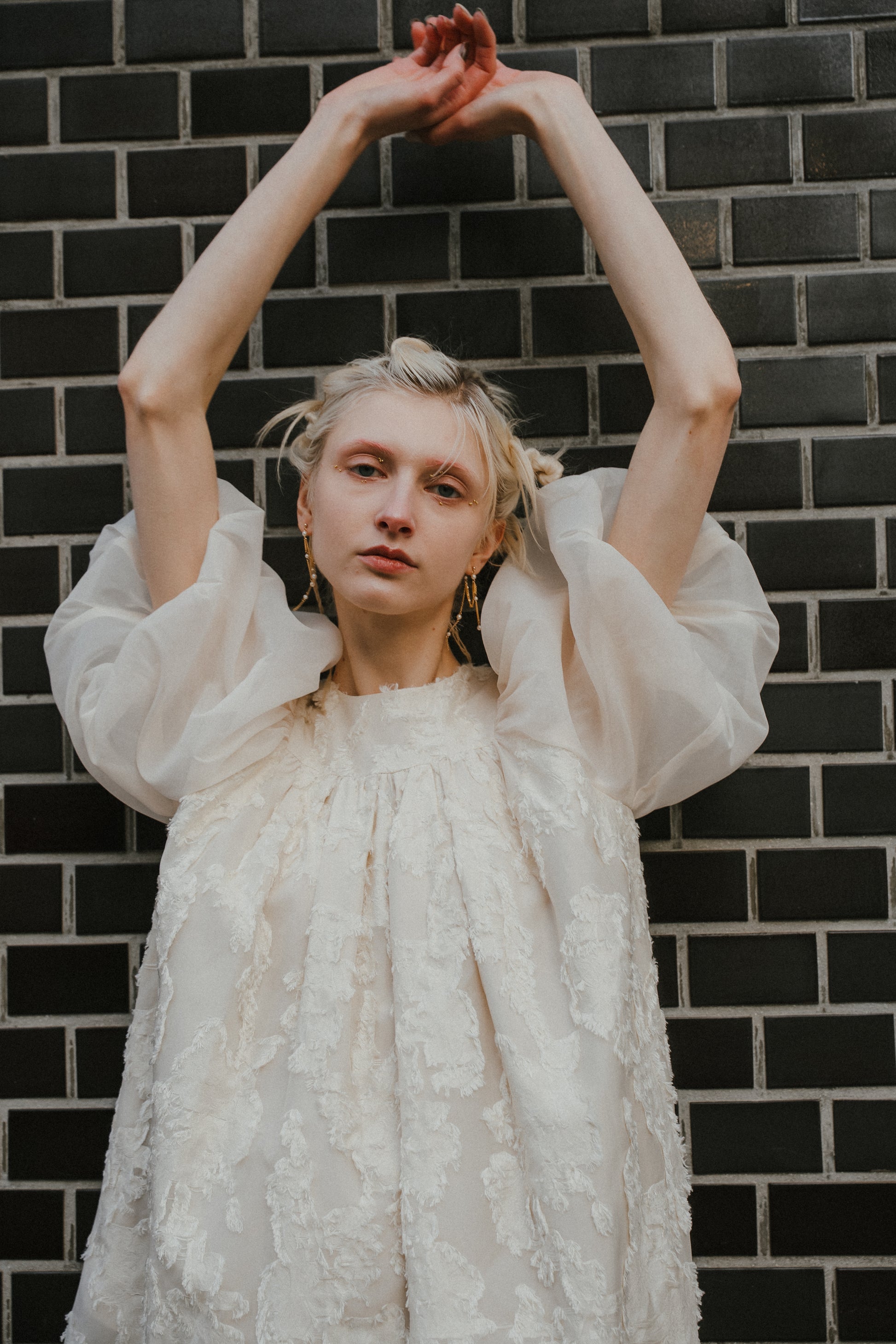 ・繊細なシアー素材に奥行きを持たせた生地感が、柔らかさの中に上品な華やかさを演出します。