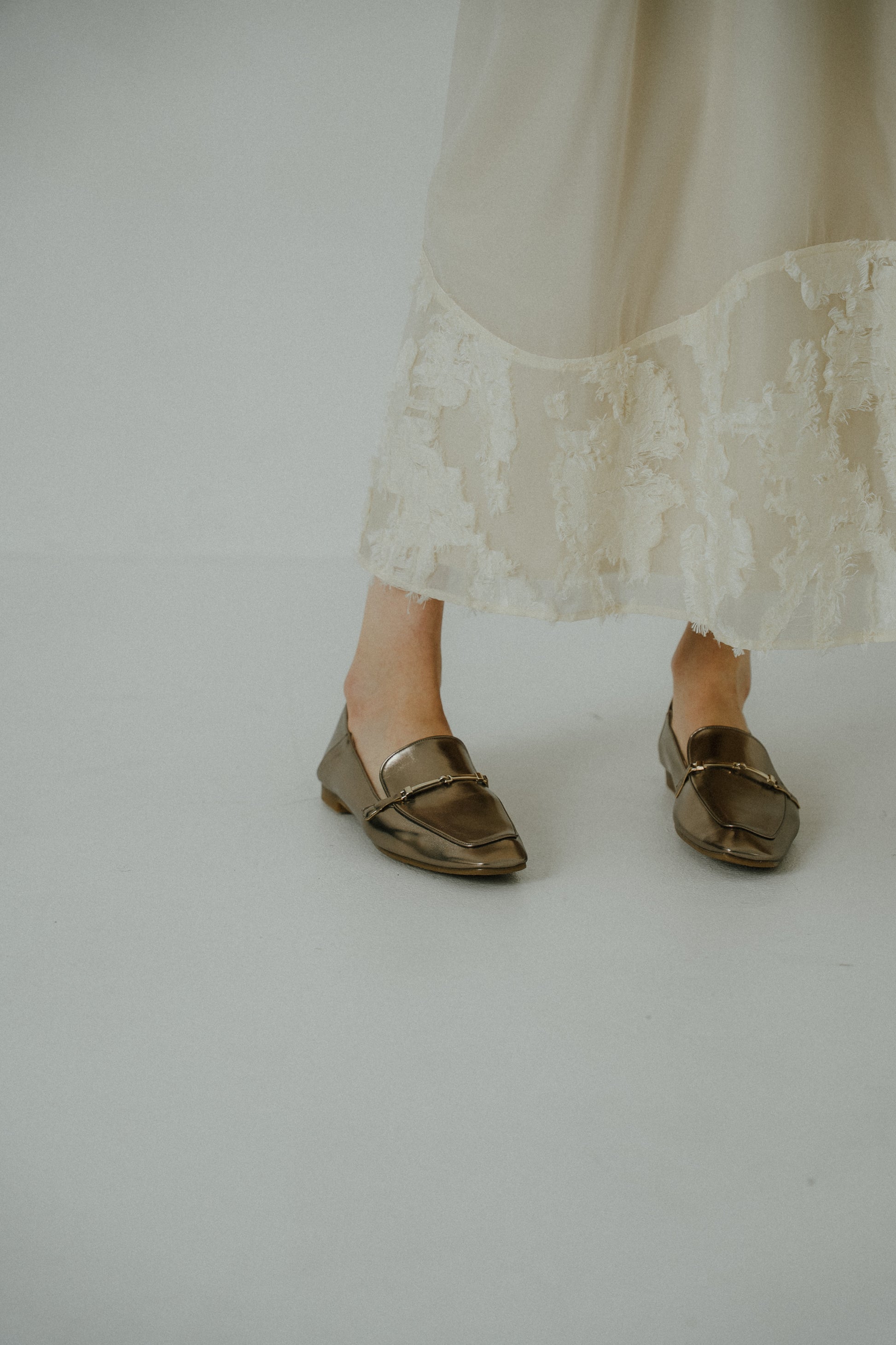 ・歩くたびに軽やかに揺れるデザインで、シンプルながらも印象に残る足元を演出します。