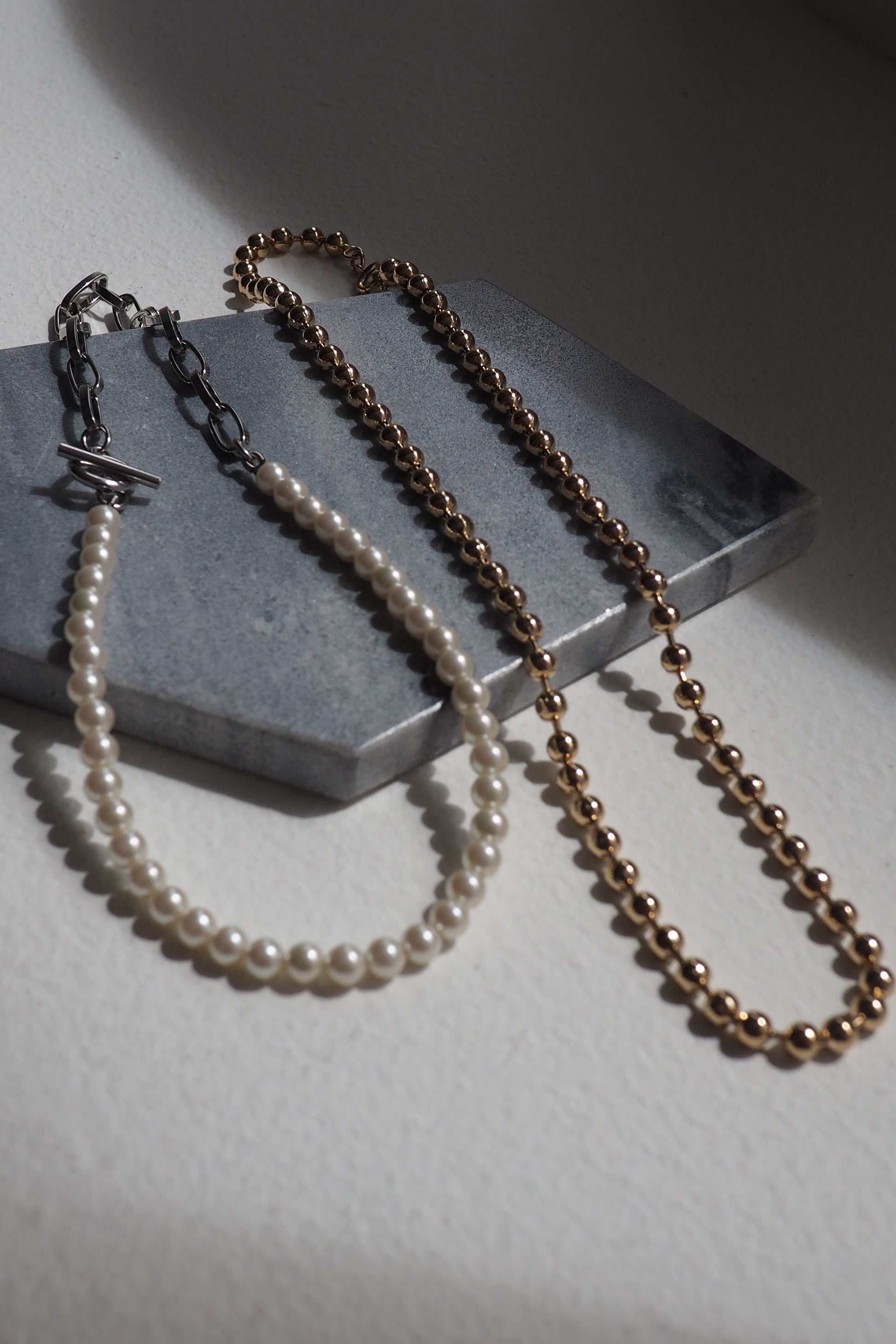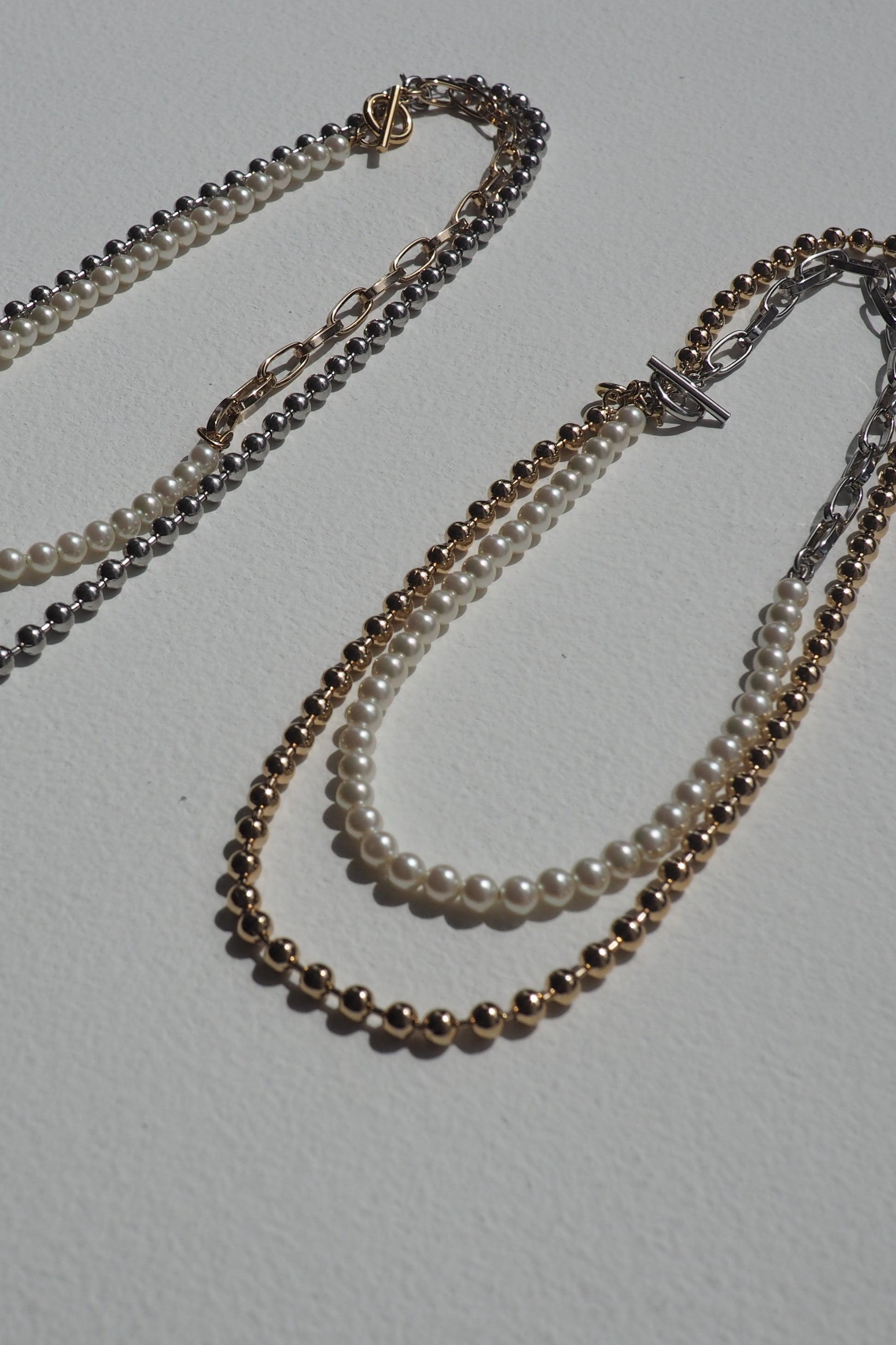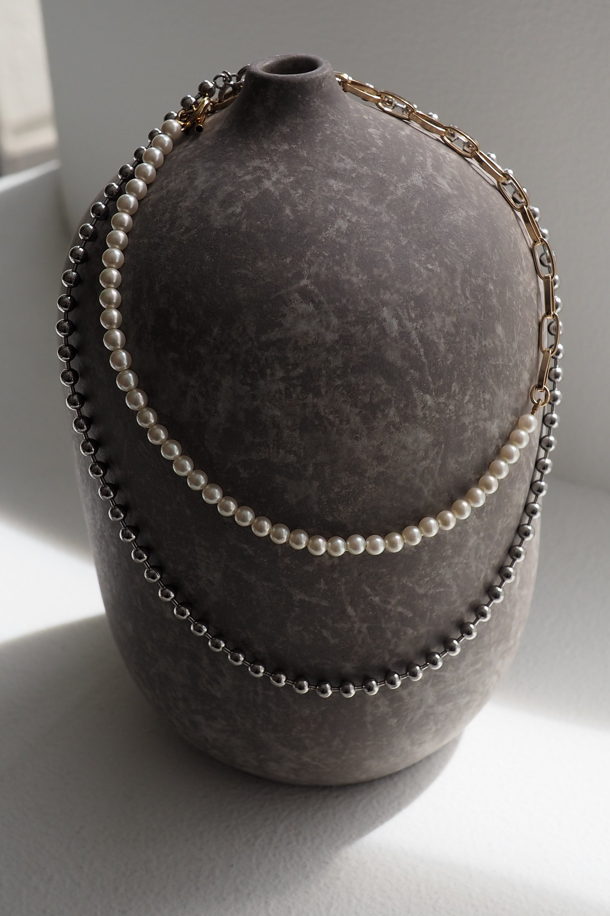 ・ボールチェーンとアンカーモチーフネックレスの2個付けセット。
