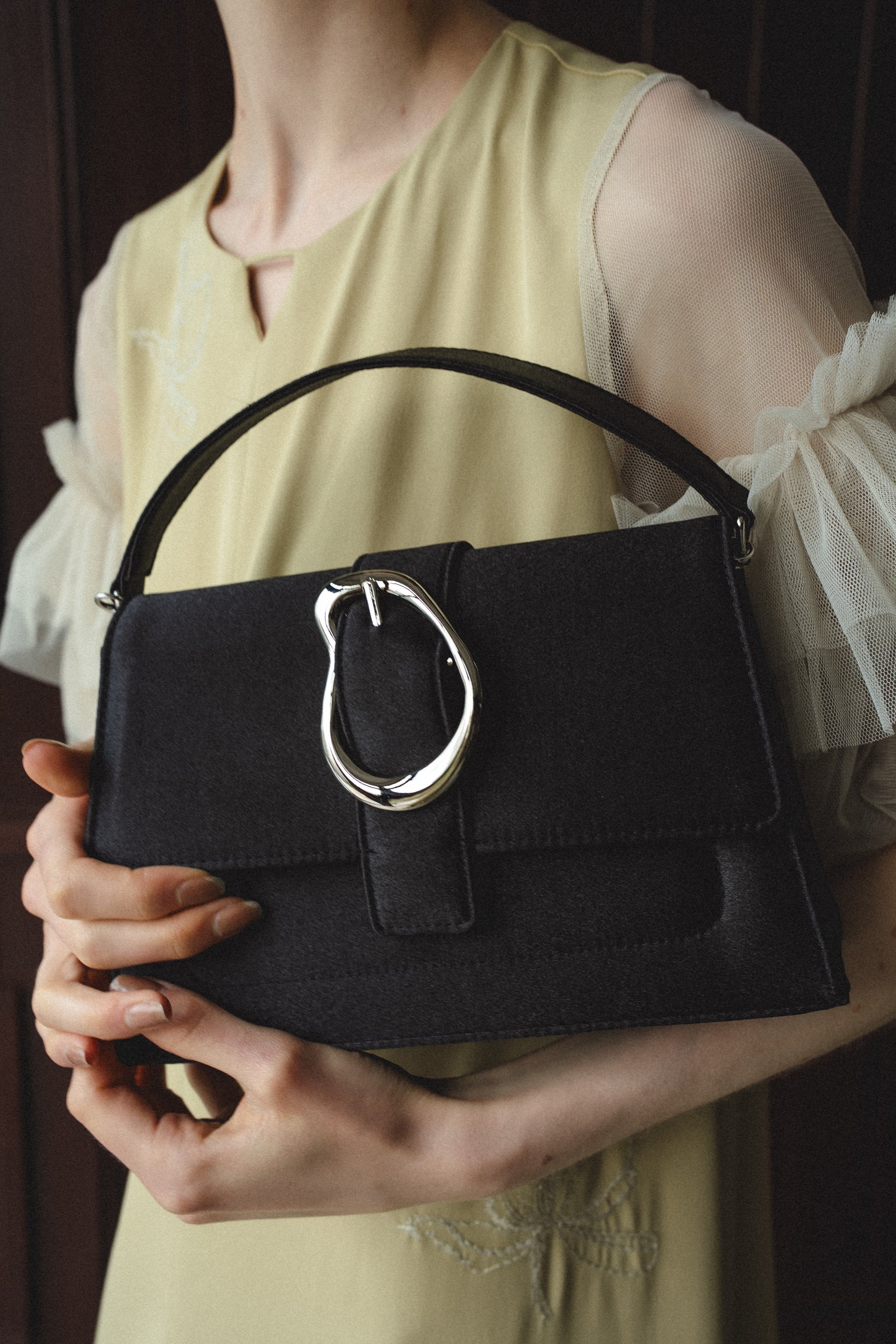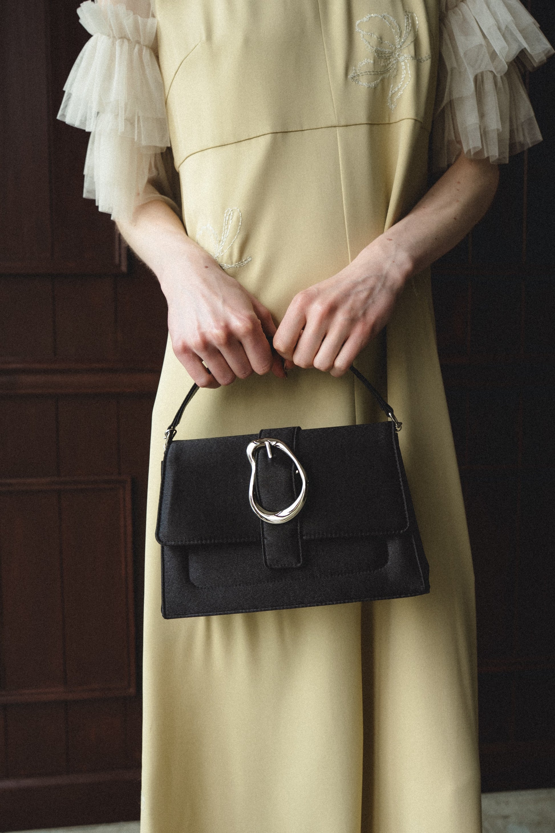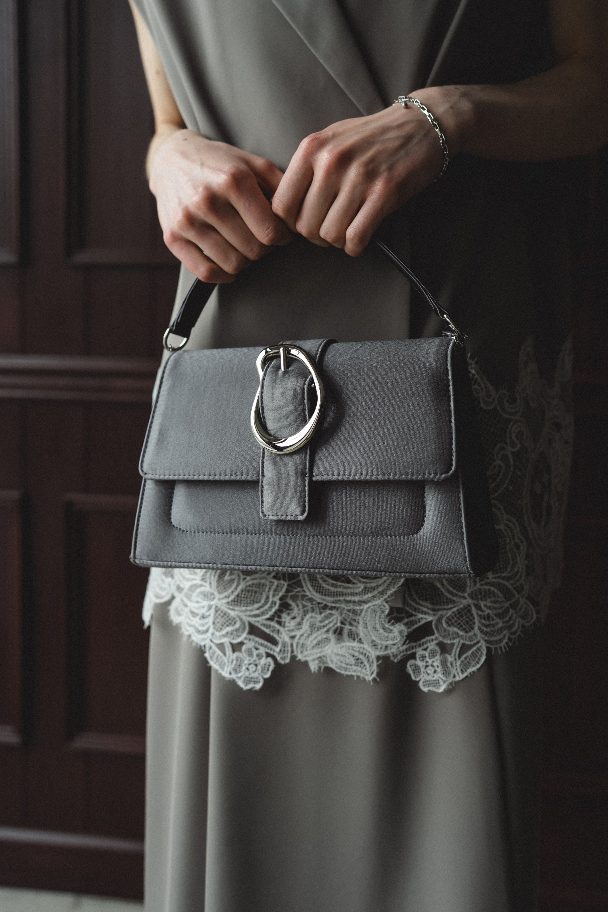 ・エッジの効いたアートのようなメタルバックルが目を惹く、モダン&エレガントなチェーンバッグ