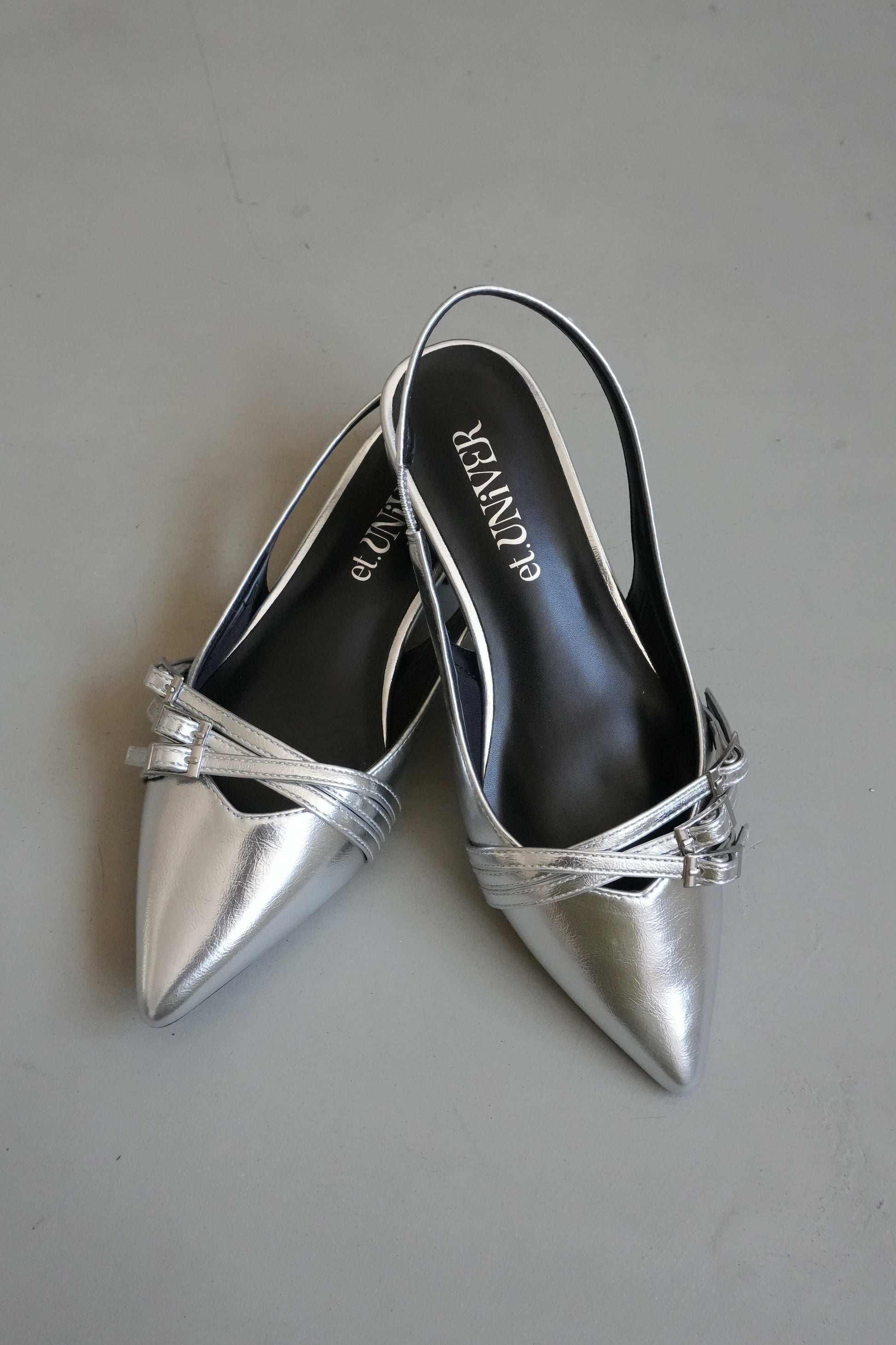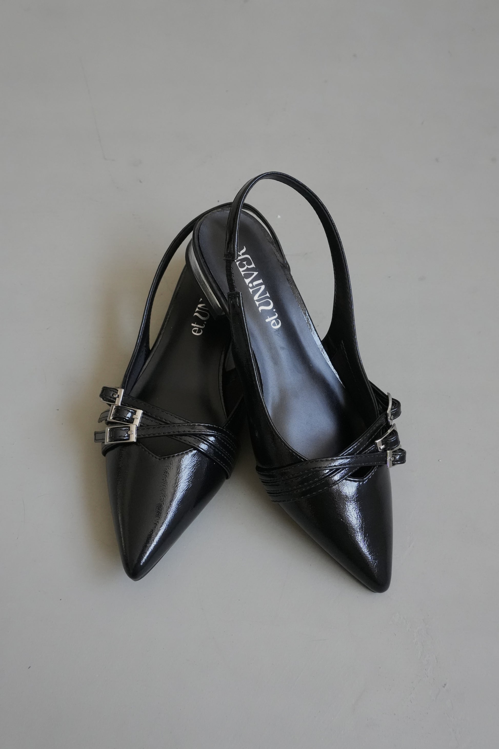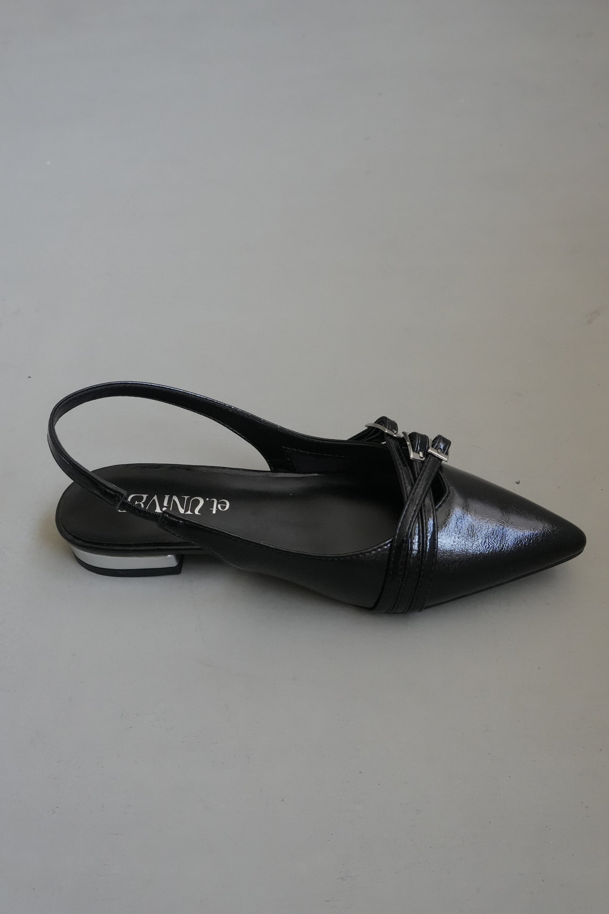 かかとが開いたスリングバックデザインで、パンプスよりも抜け感があり軽やかさがあります。