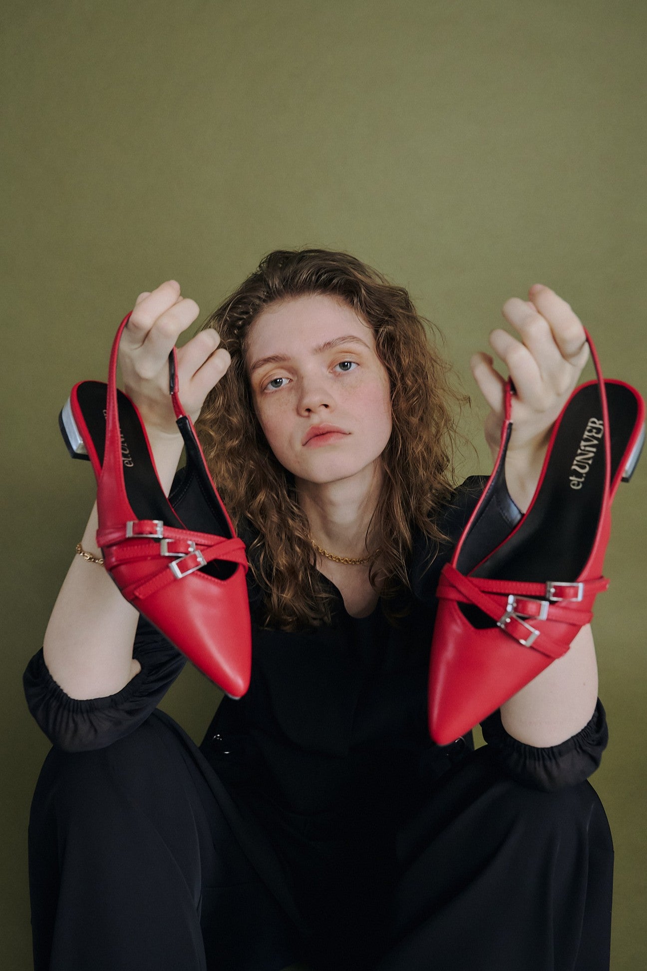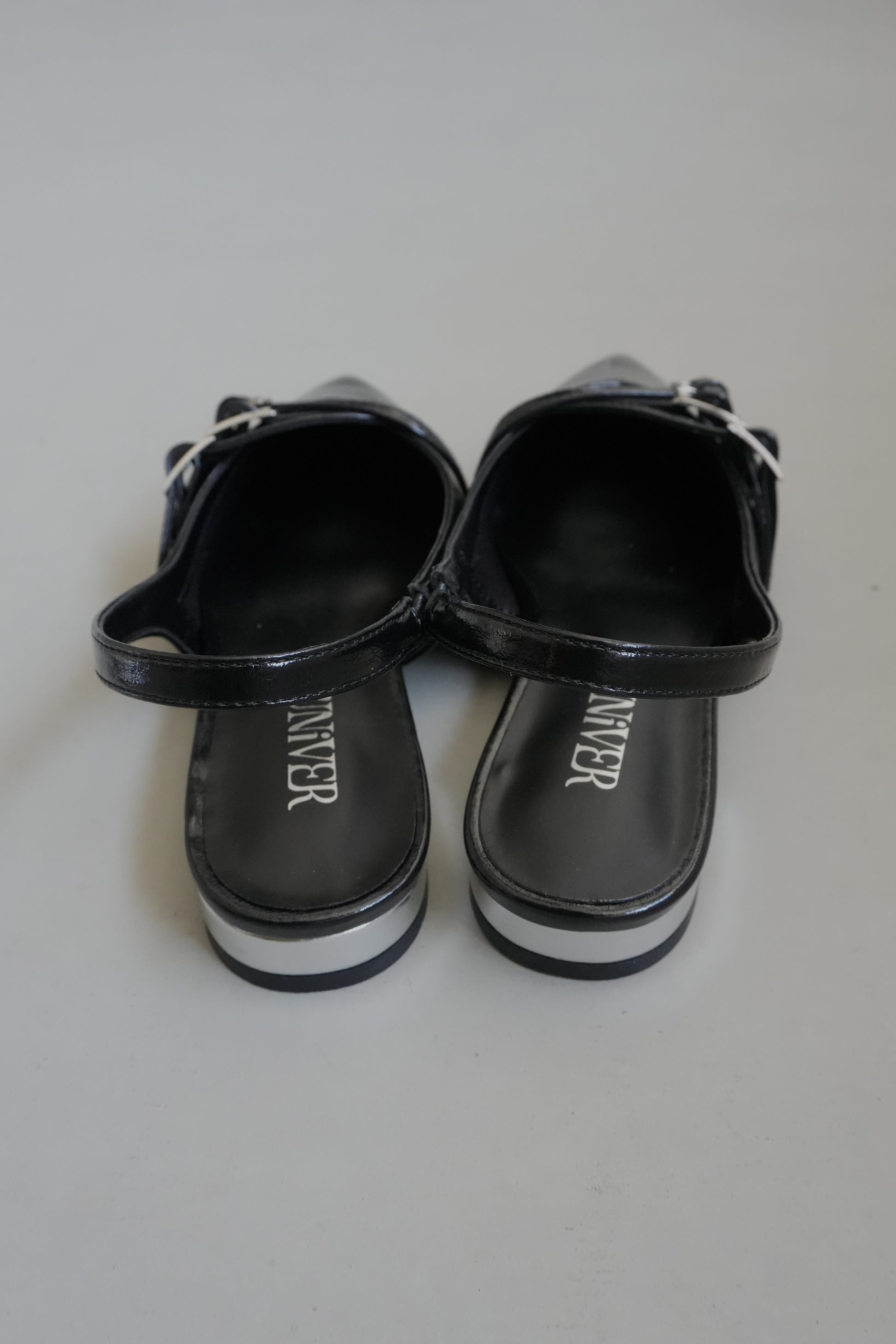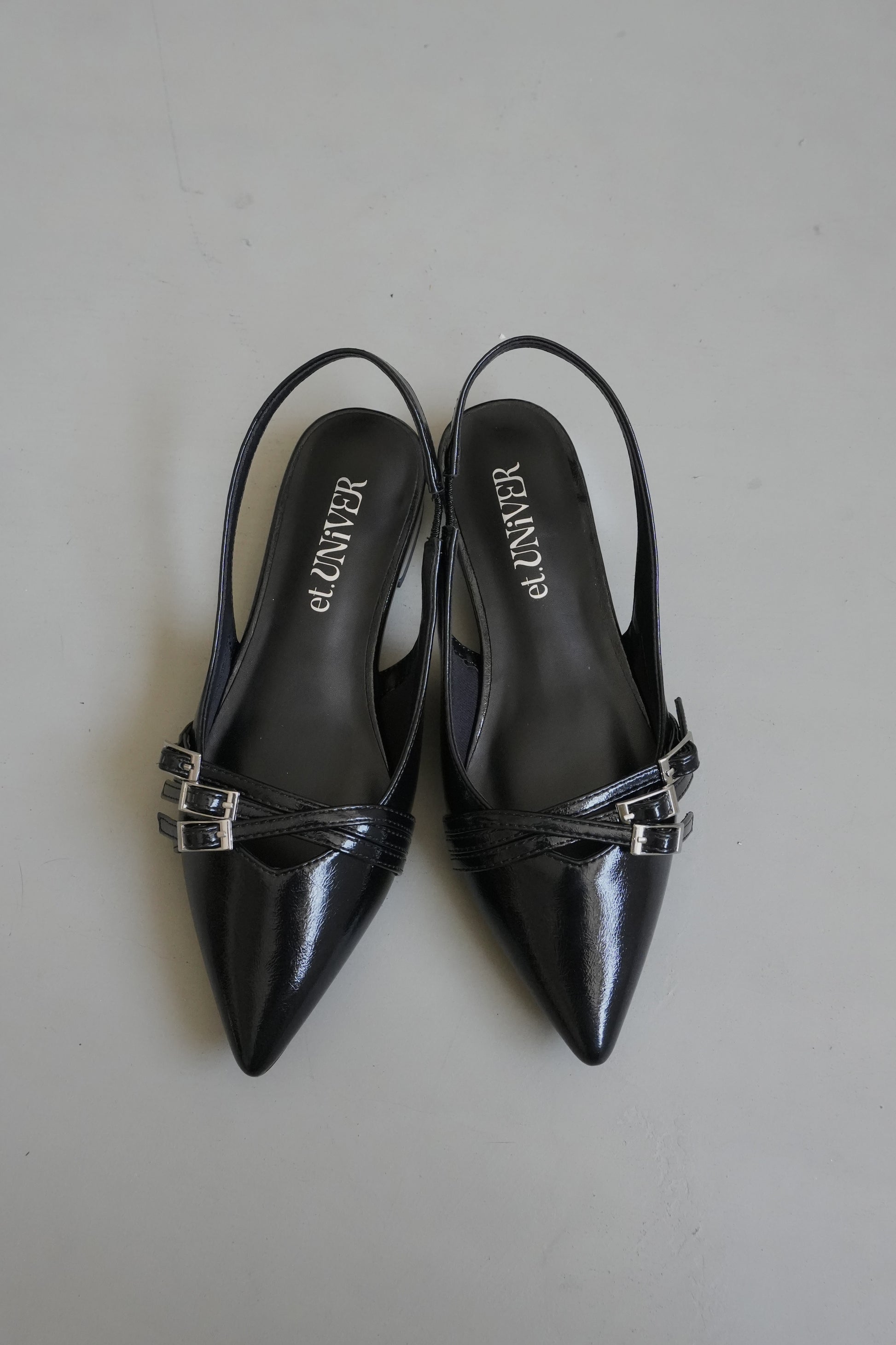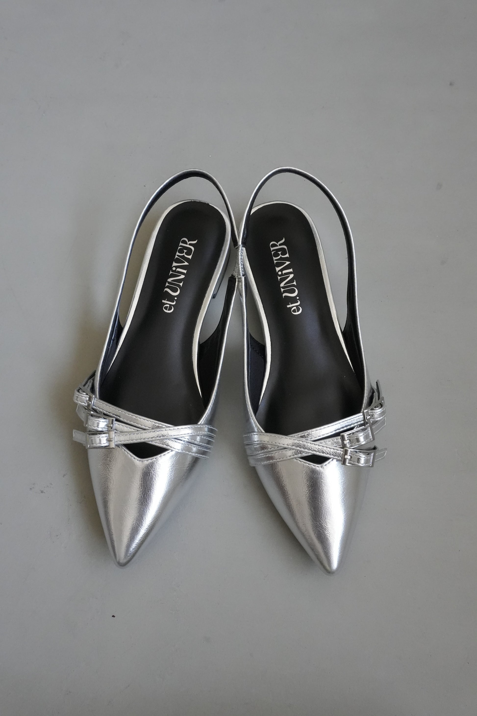 かかとが開いたスリングバックデザインで、パンプスよりも抜け感があり軽やかさがあります。
