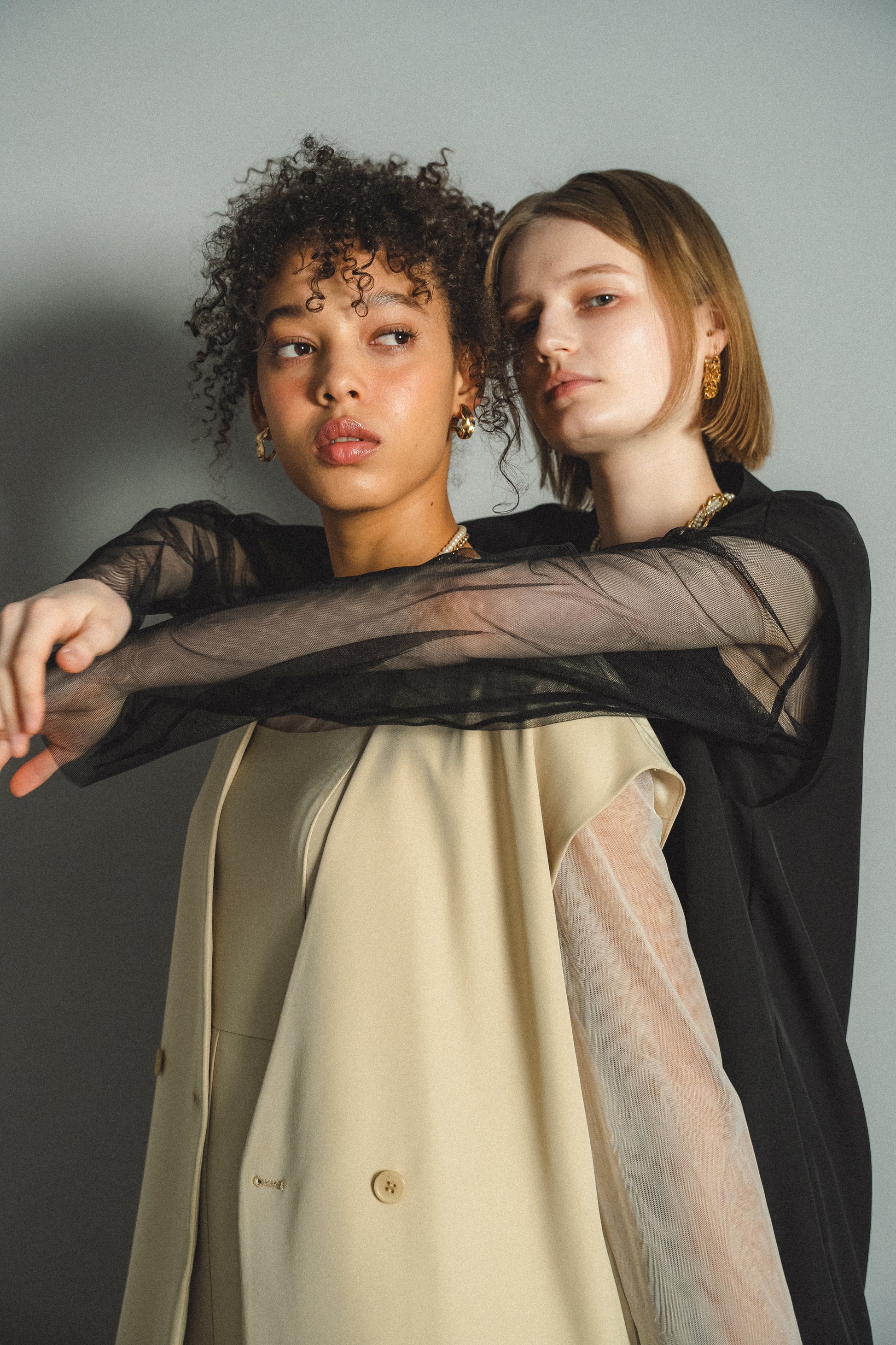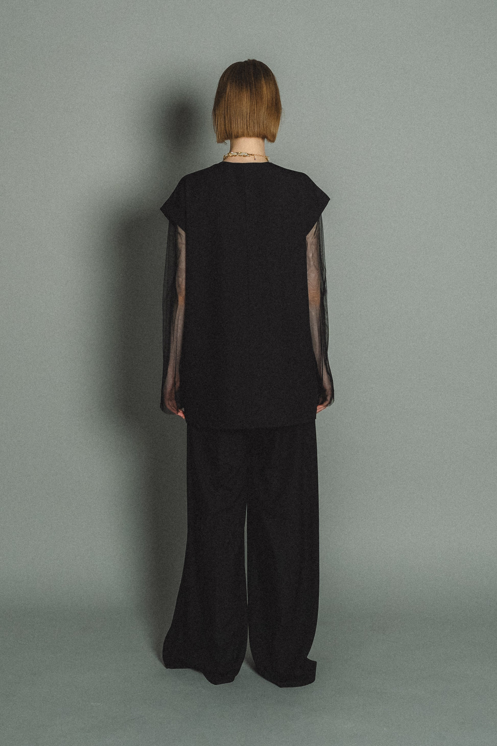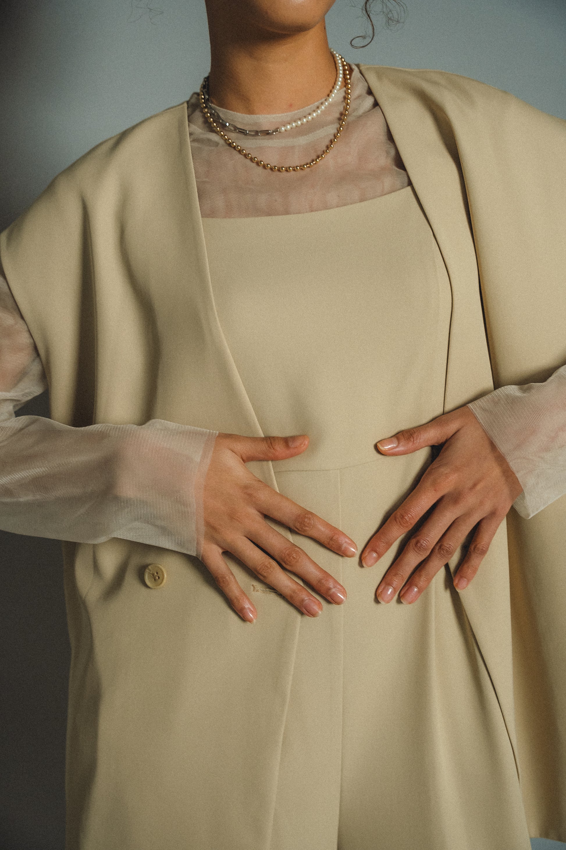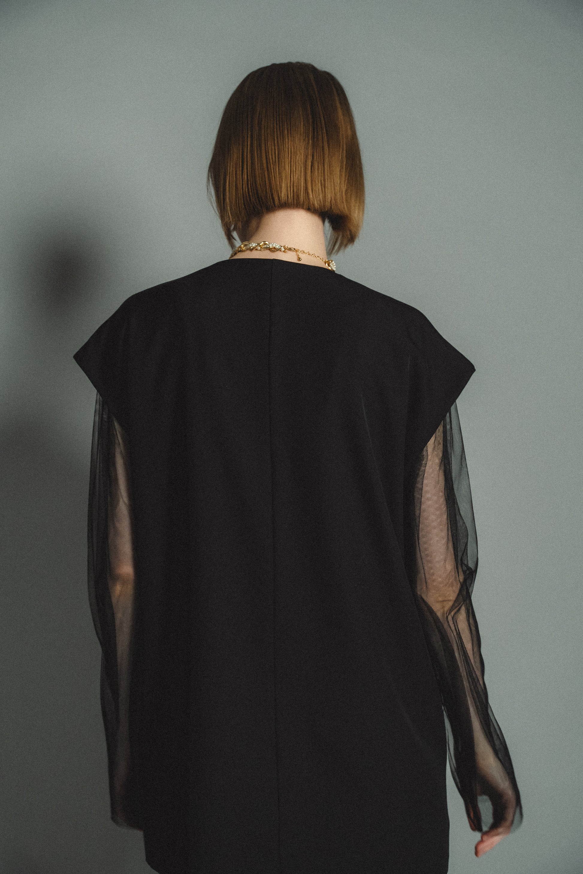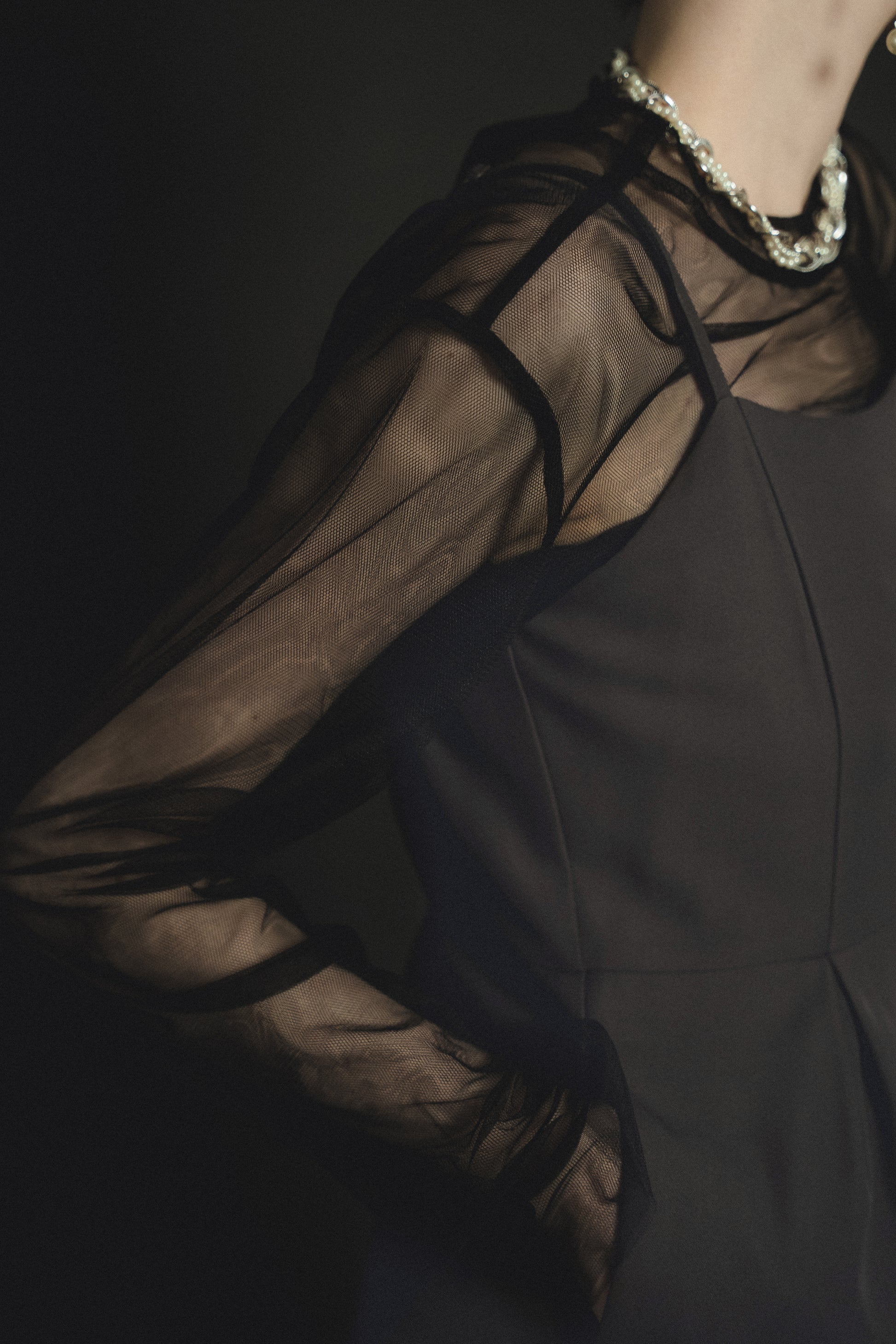 ・トップスはチュール生地を二枚重ねることで素肌の露出を軽減し、奥行のある印象に仕上げました。