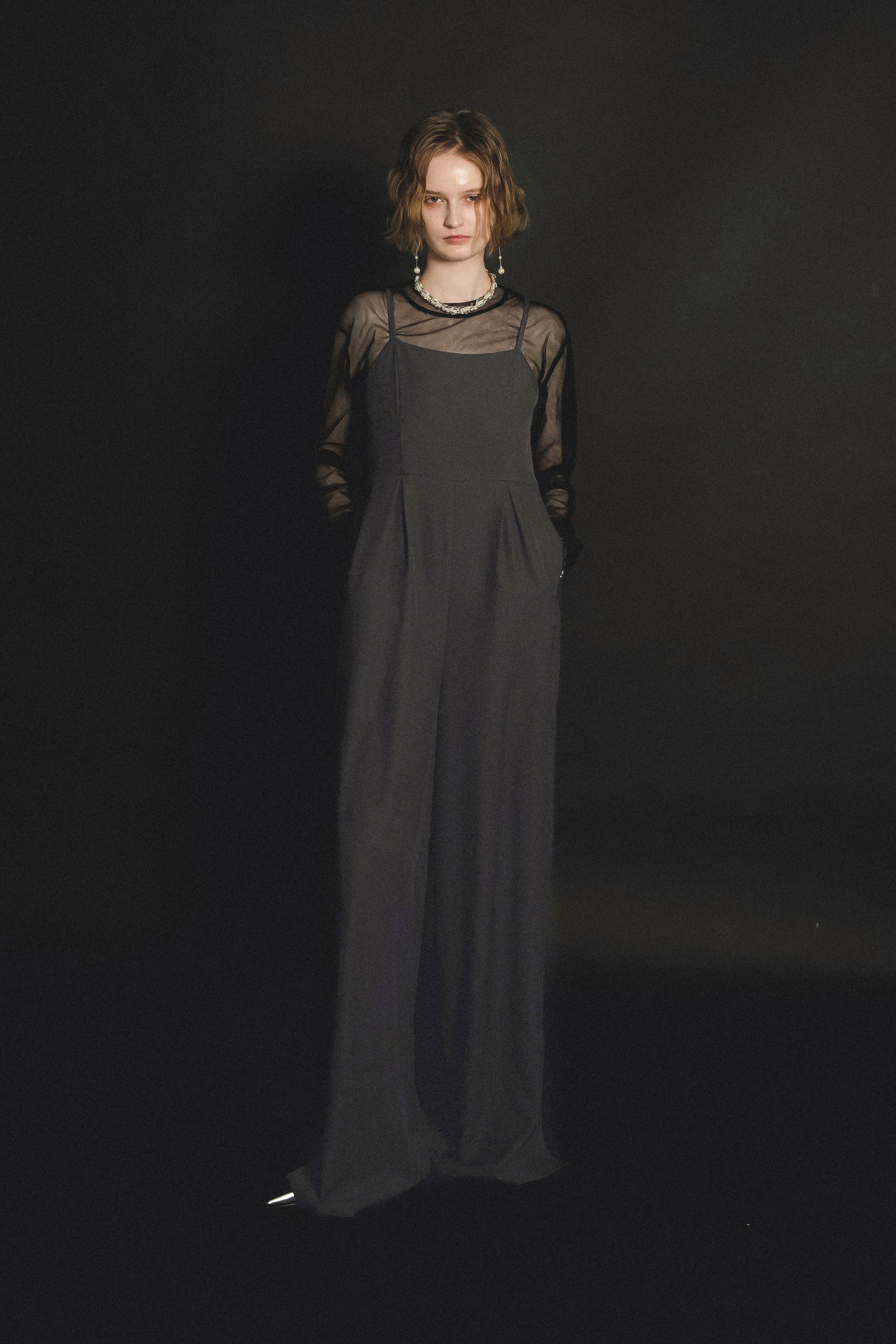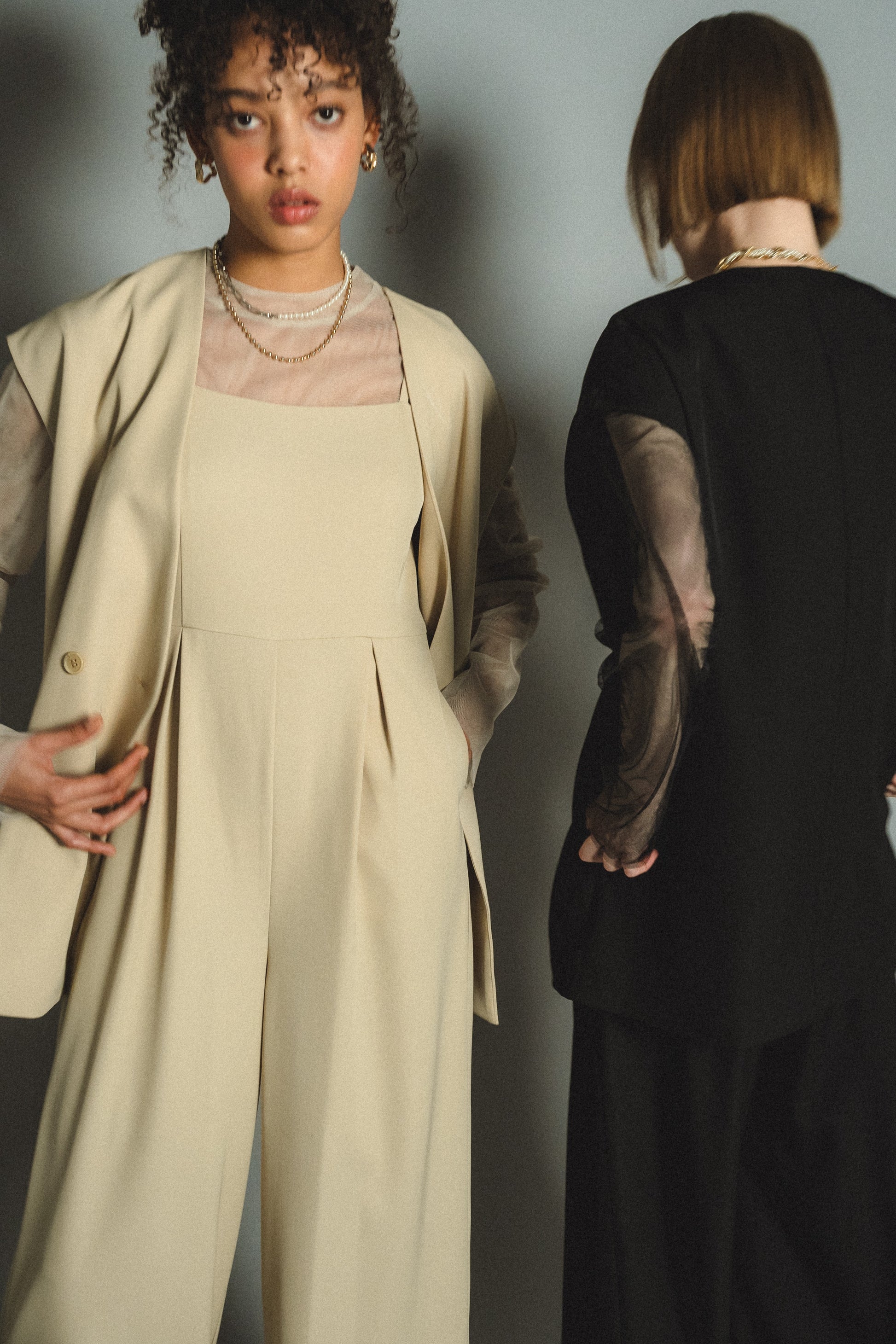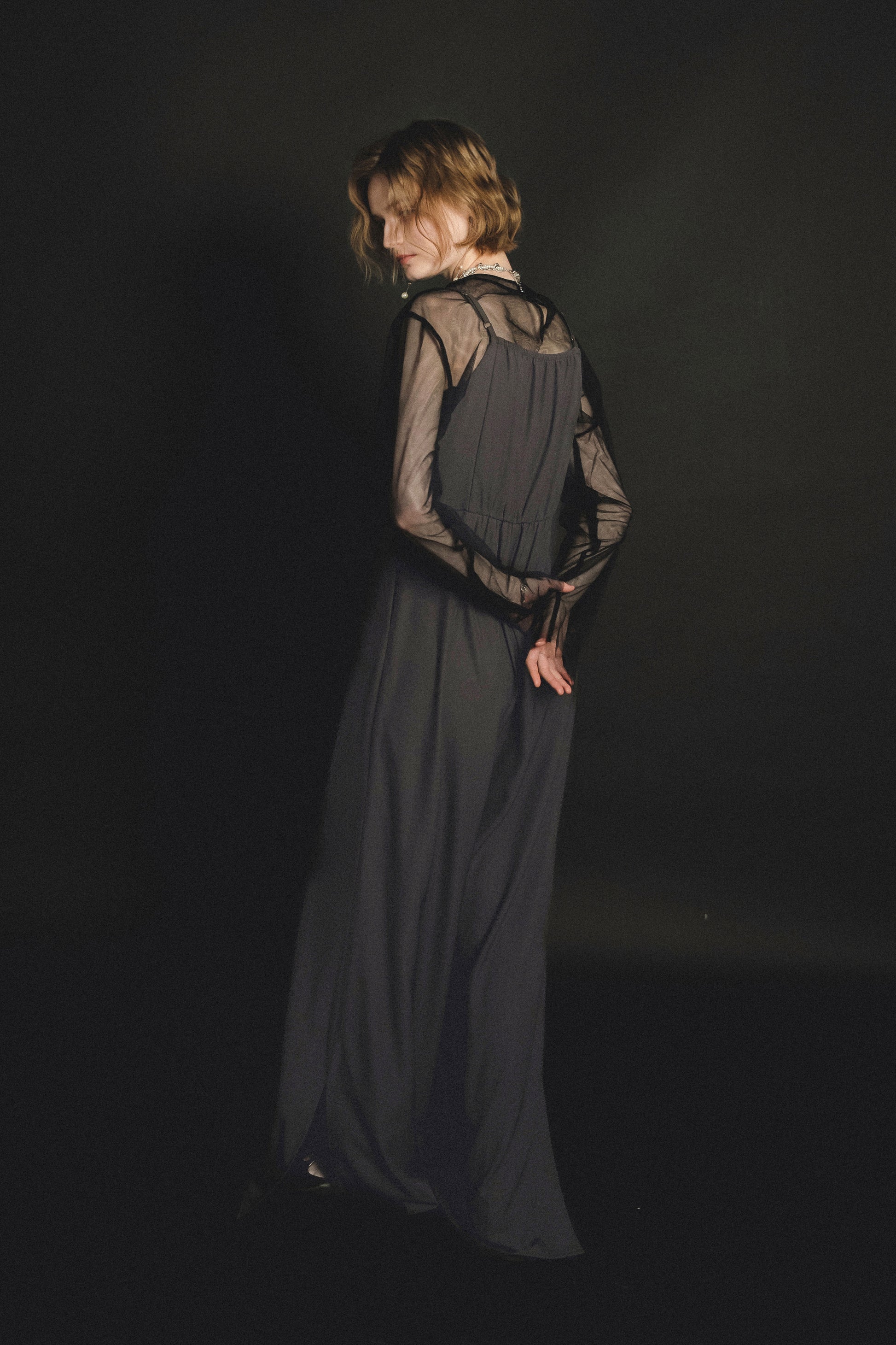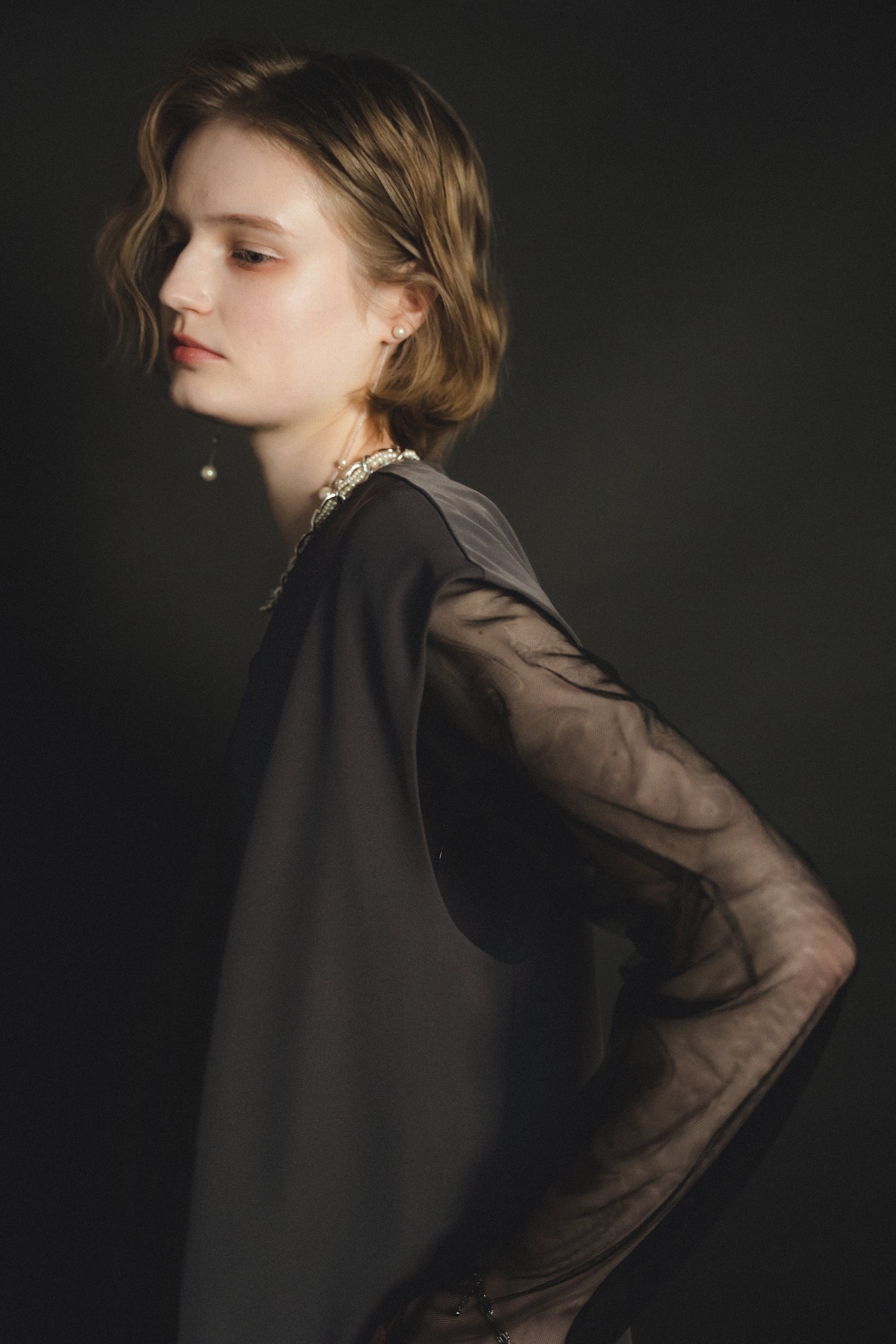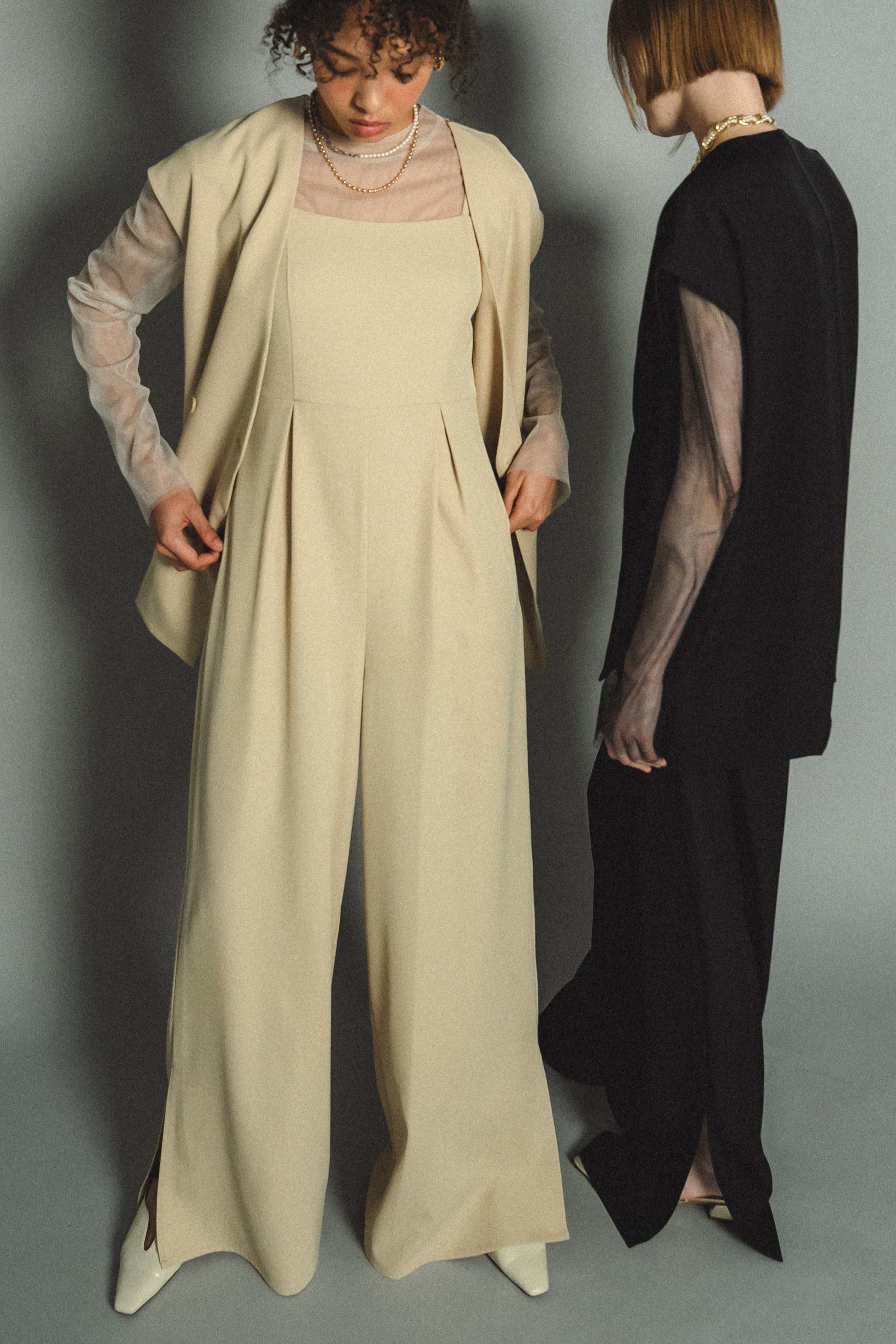 ・トップスはチュール生地を二枚重ねることで素肌の露出を軽減し、奥行のある印象に仕上げました。