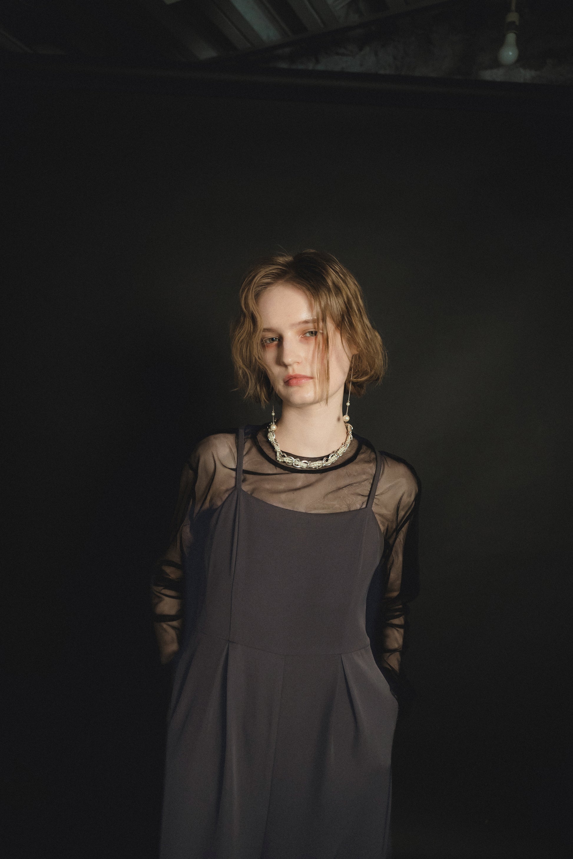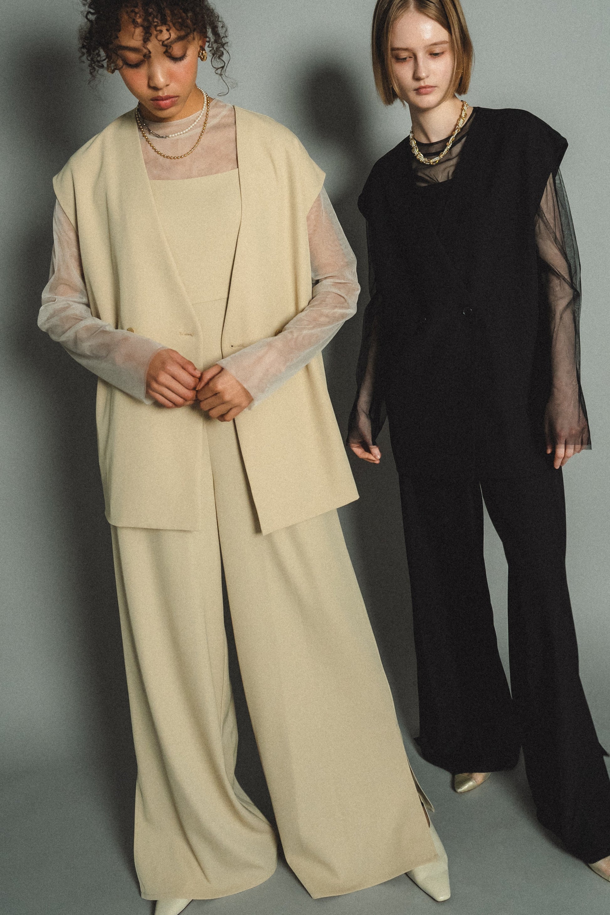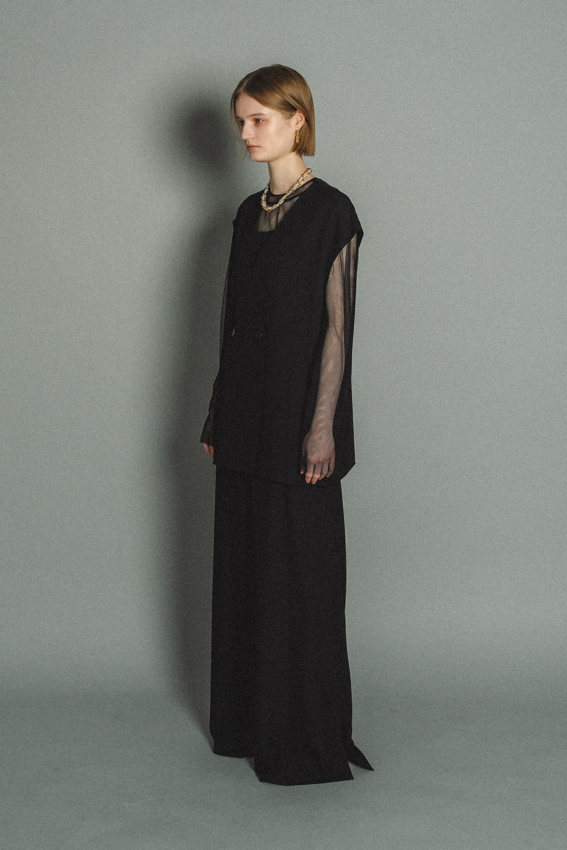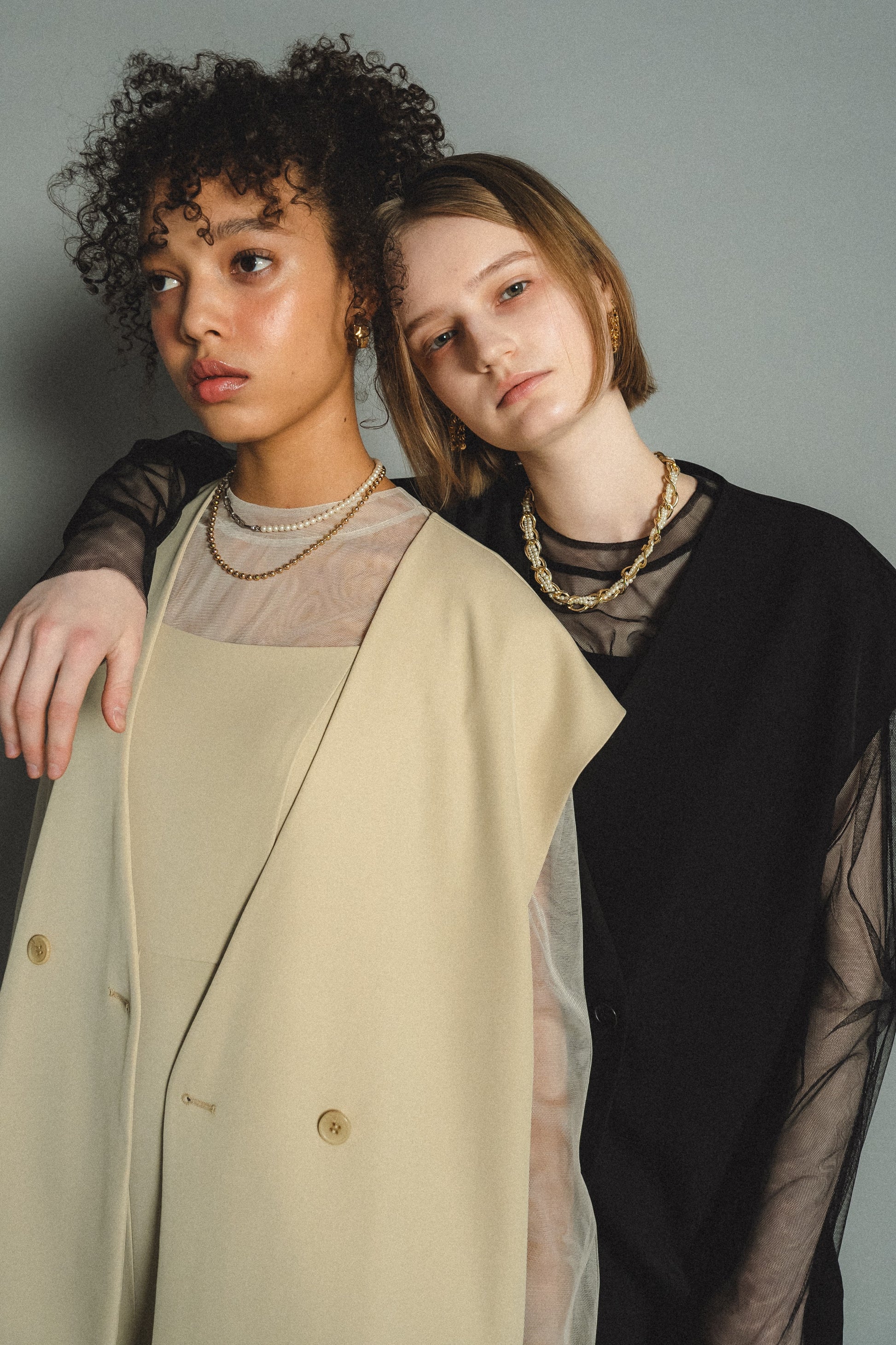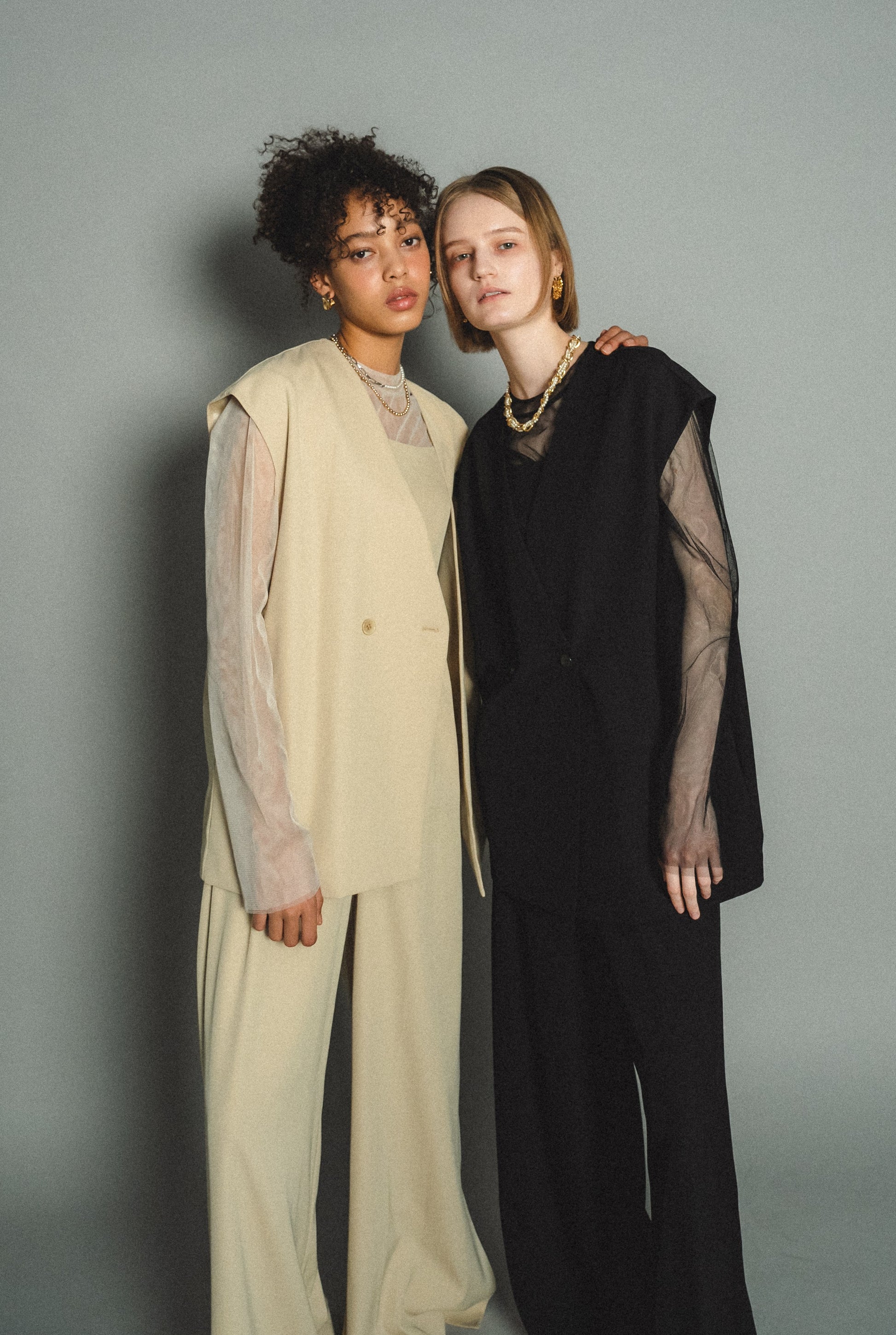 ・トップスはチュール生地を二枚重ねることで素肌の露出を軽減し、奥行のある印象に仕上げました。