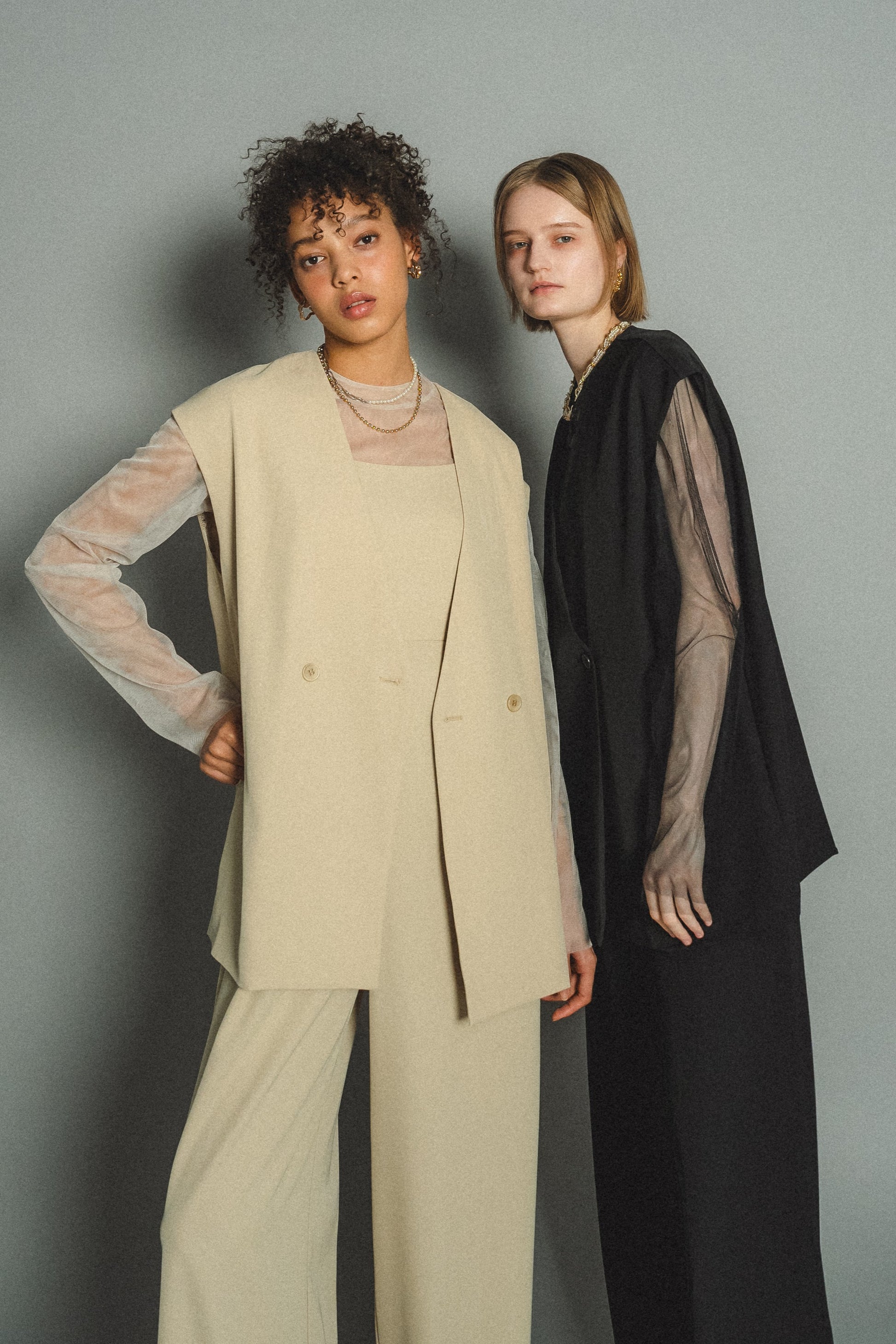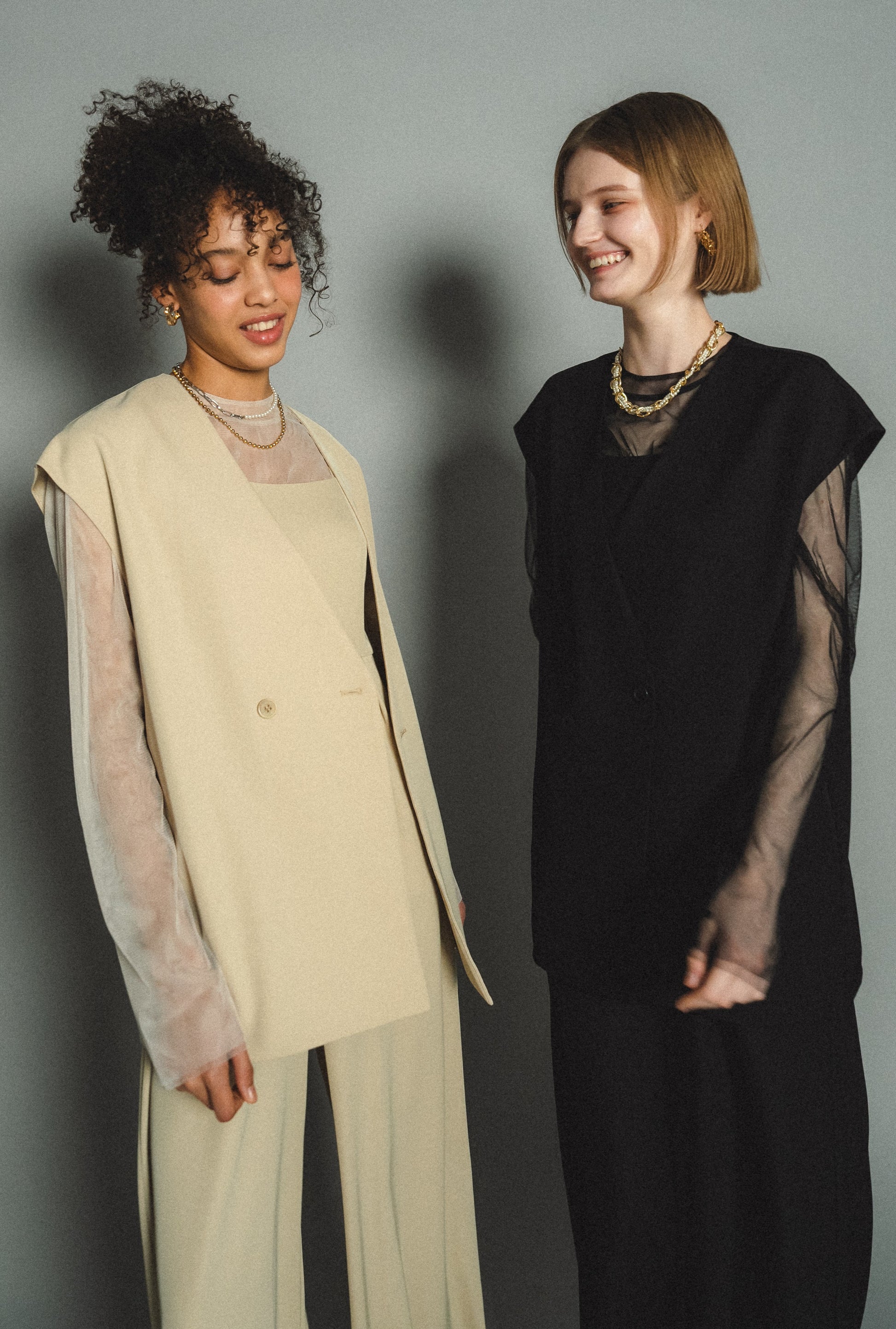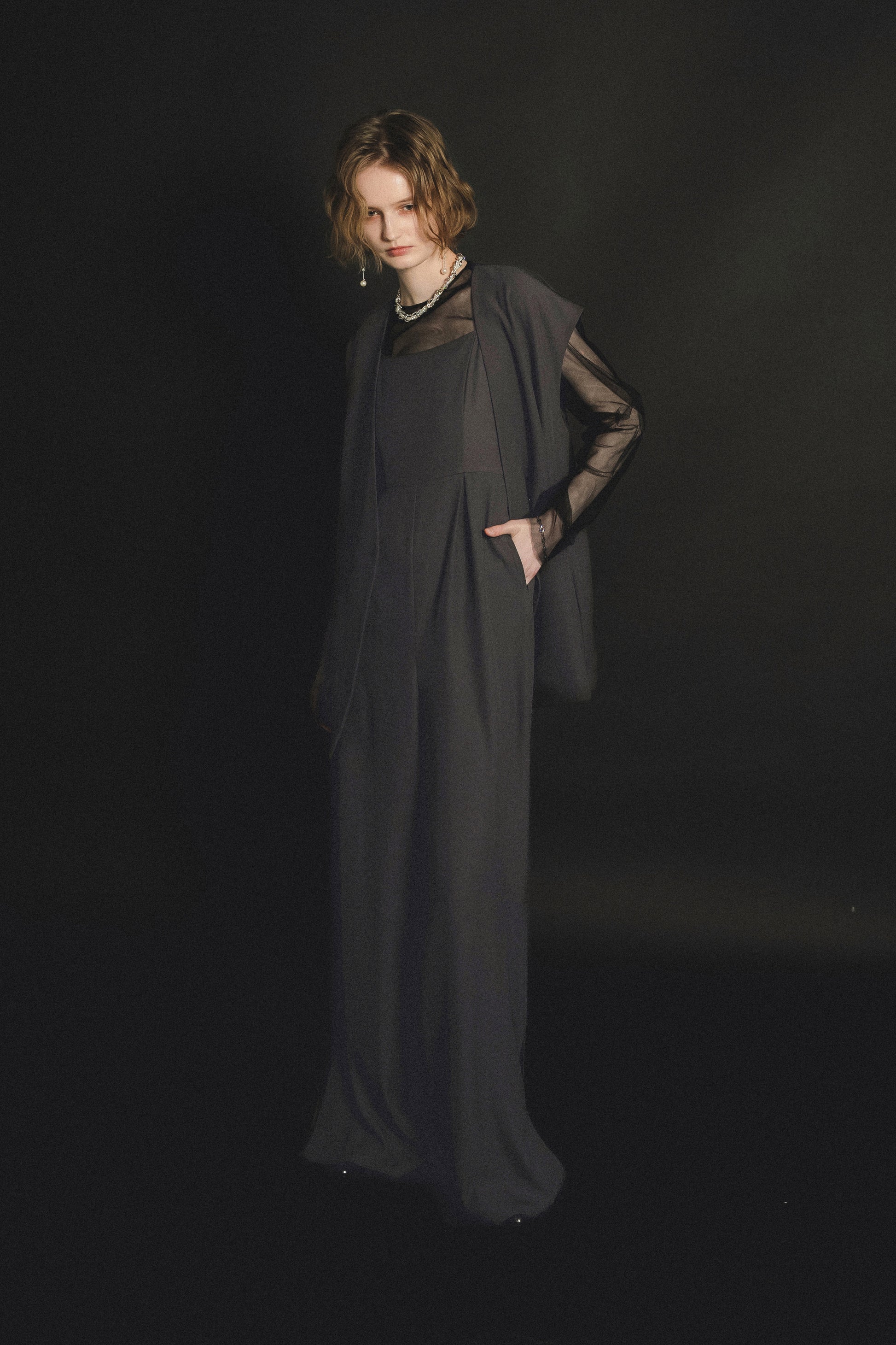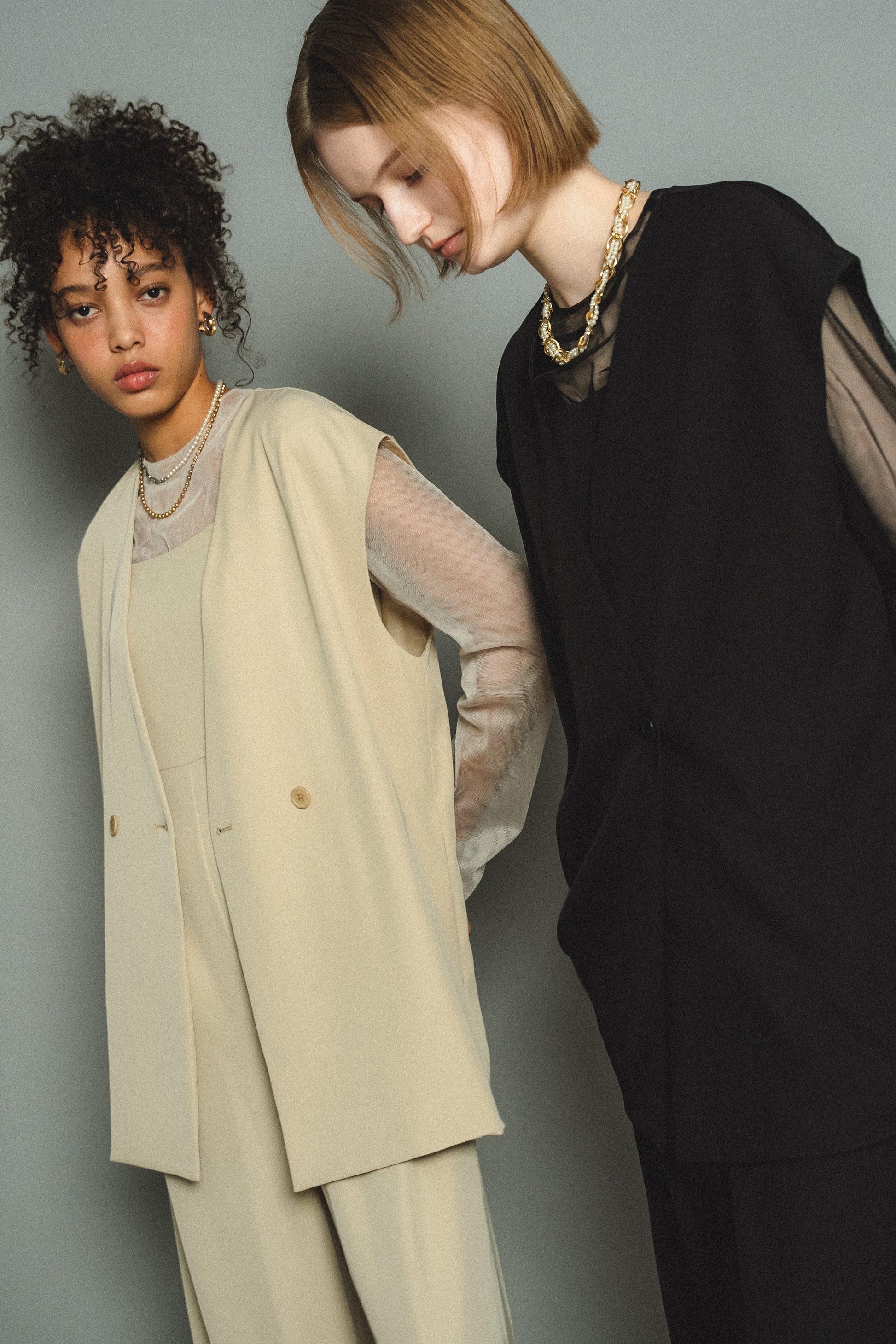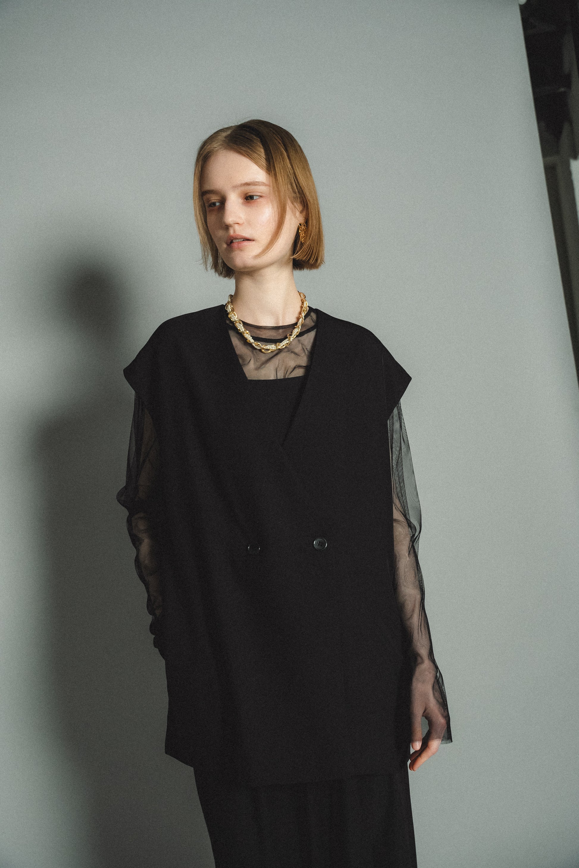 ・トップスはチュール生地を二枚重ねることで素肌の露出を軽減し、奥行のある印象に仕上げました。