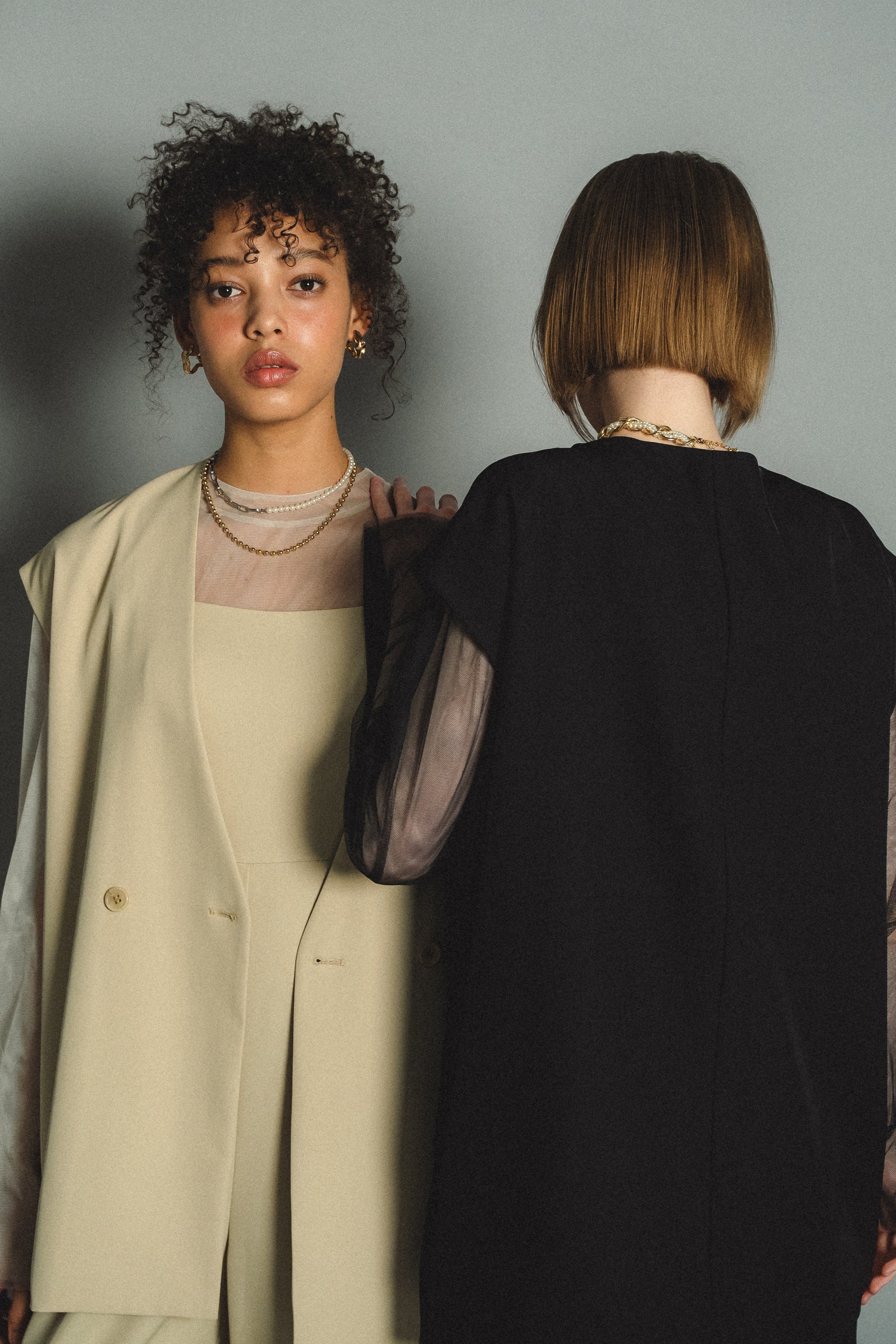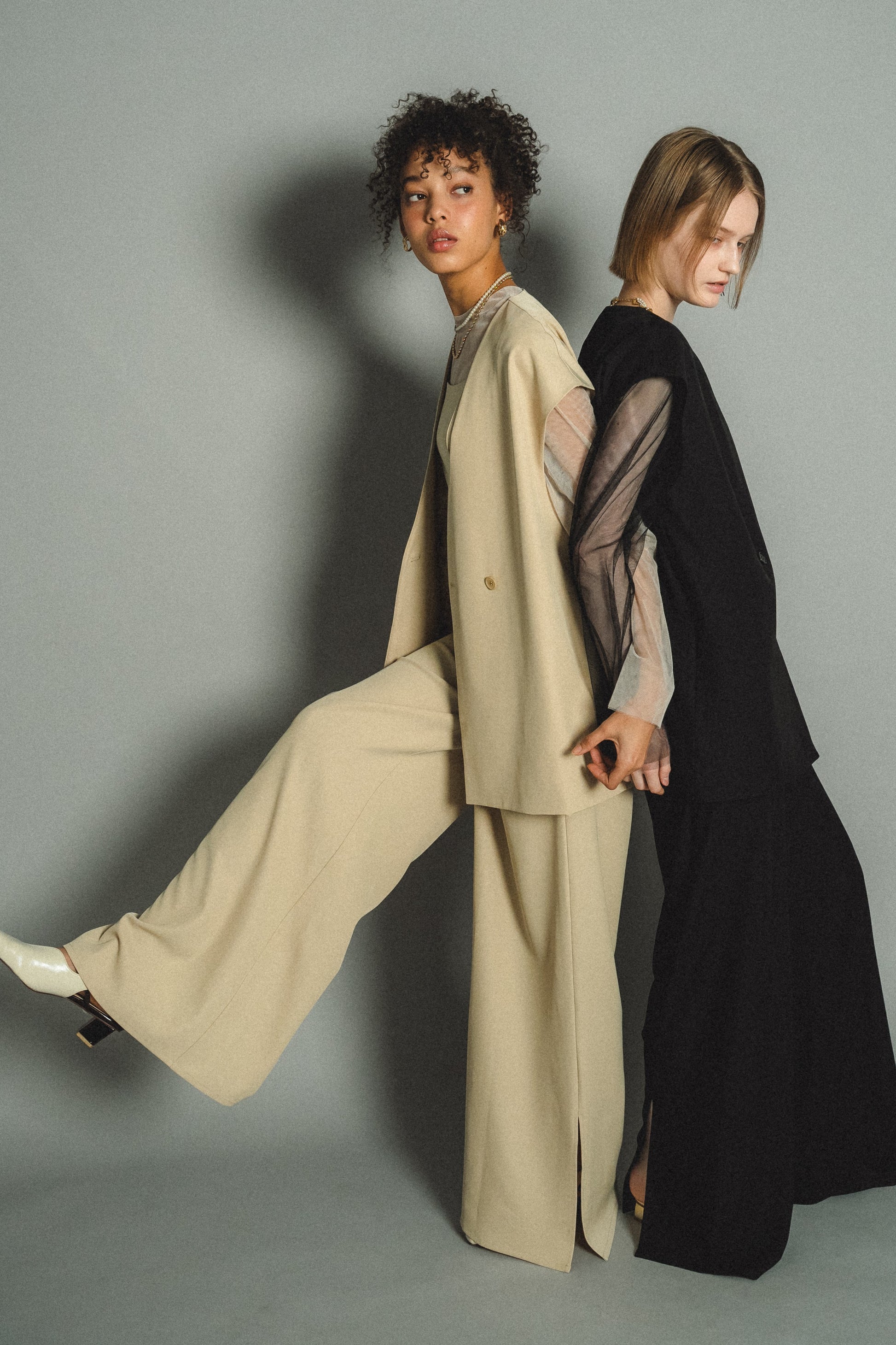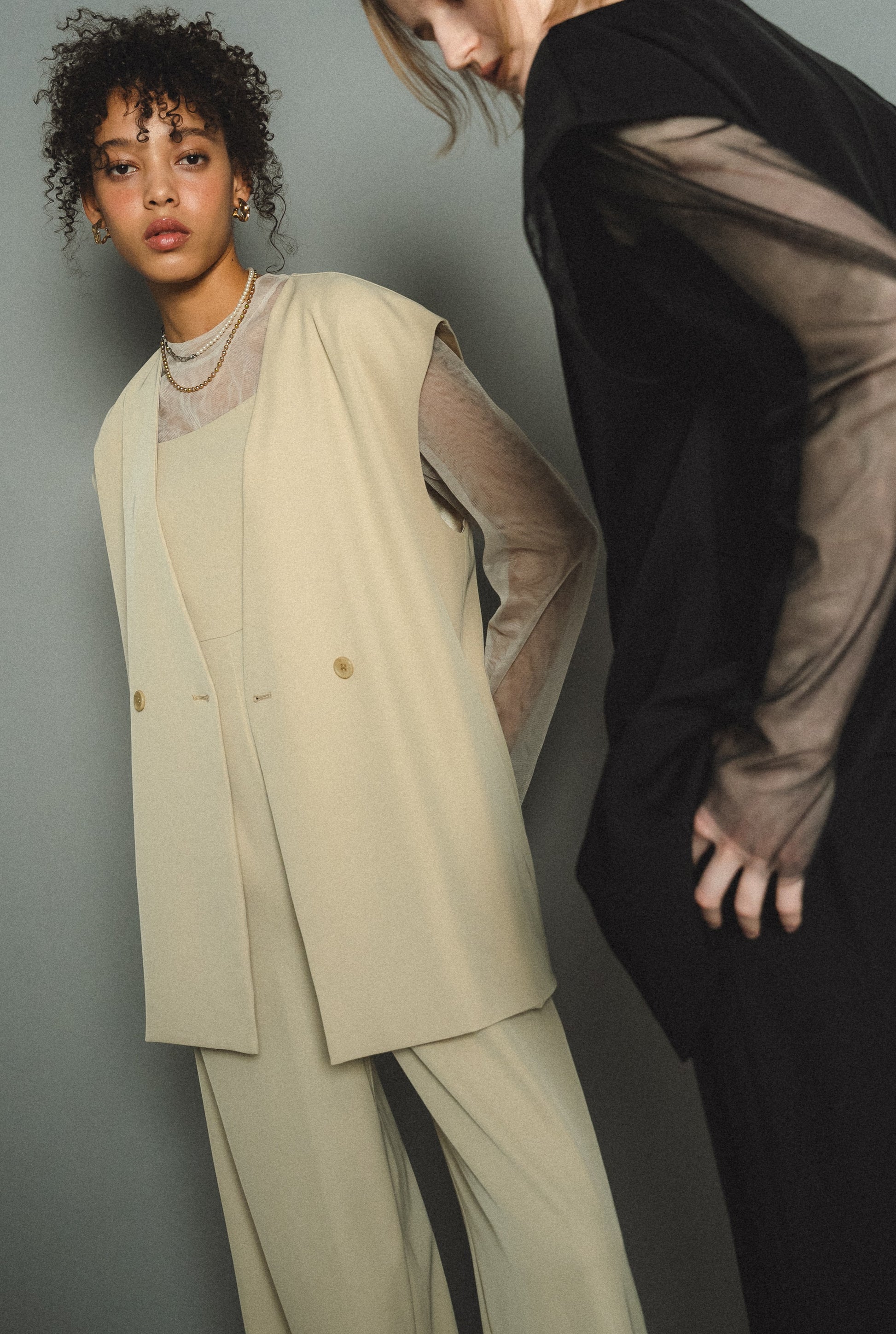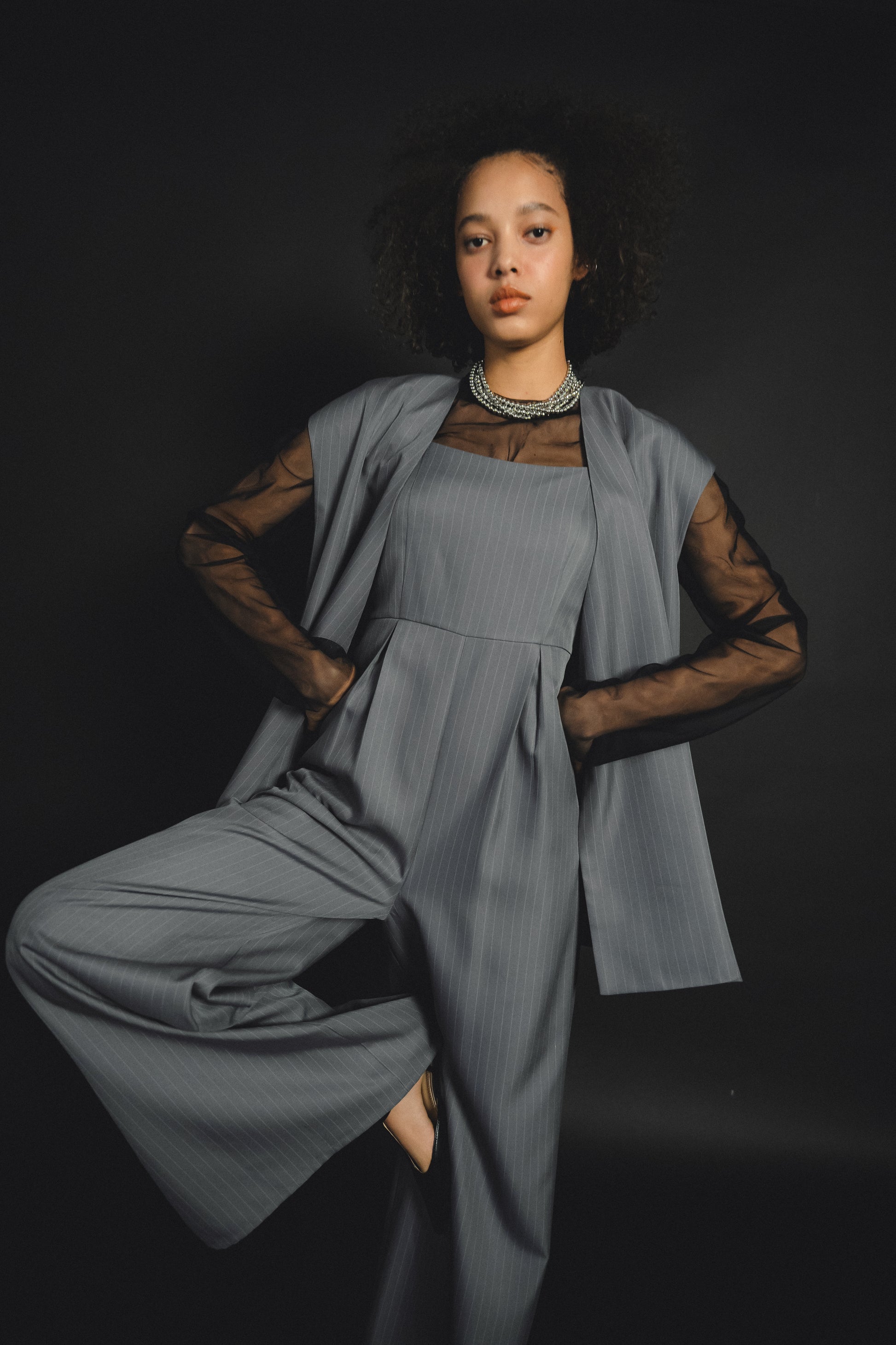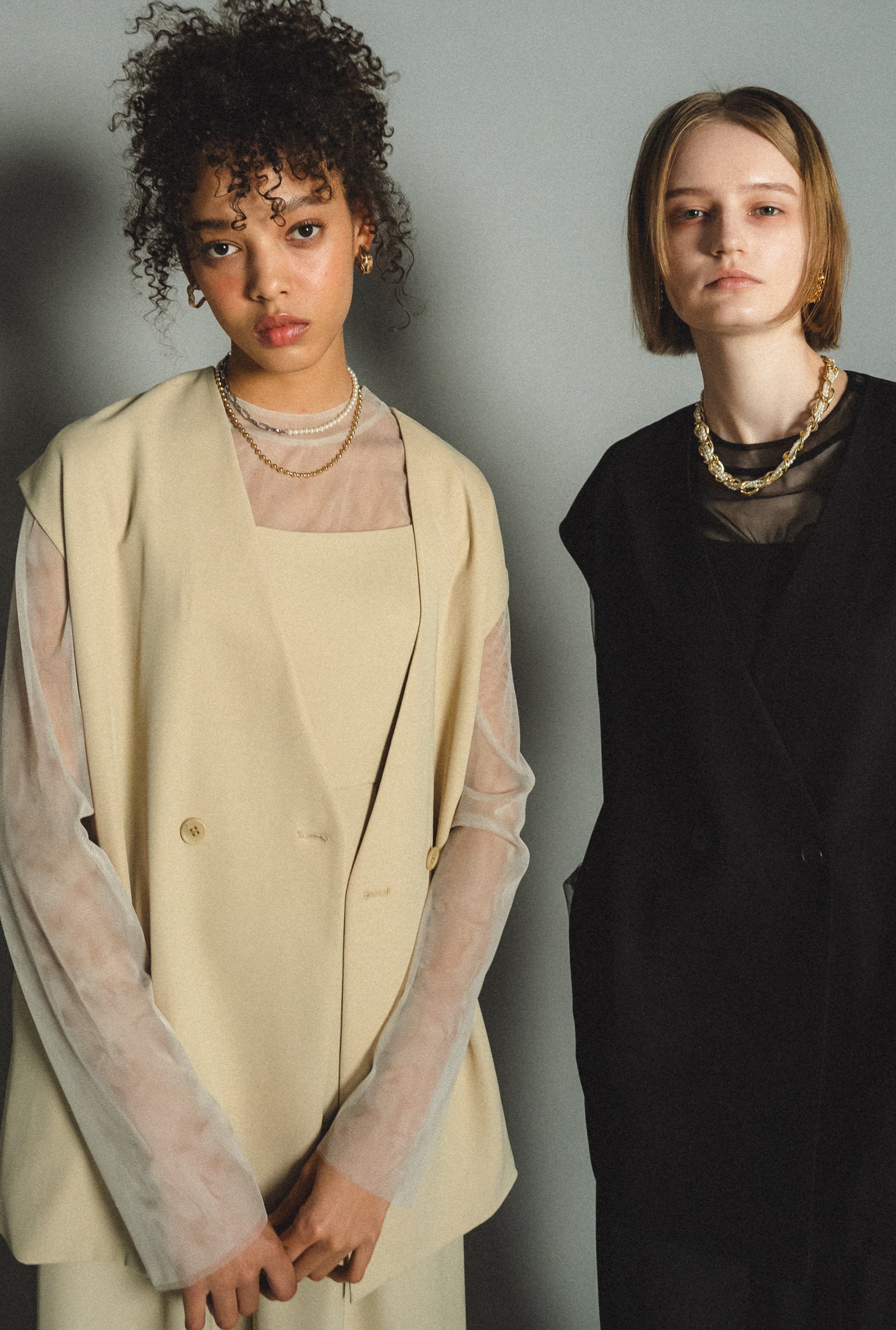 ・トップスはチュール生地を二枚重ねることで素肌の露出を軽減し、奥行のある印象に仕上げました。