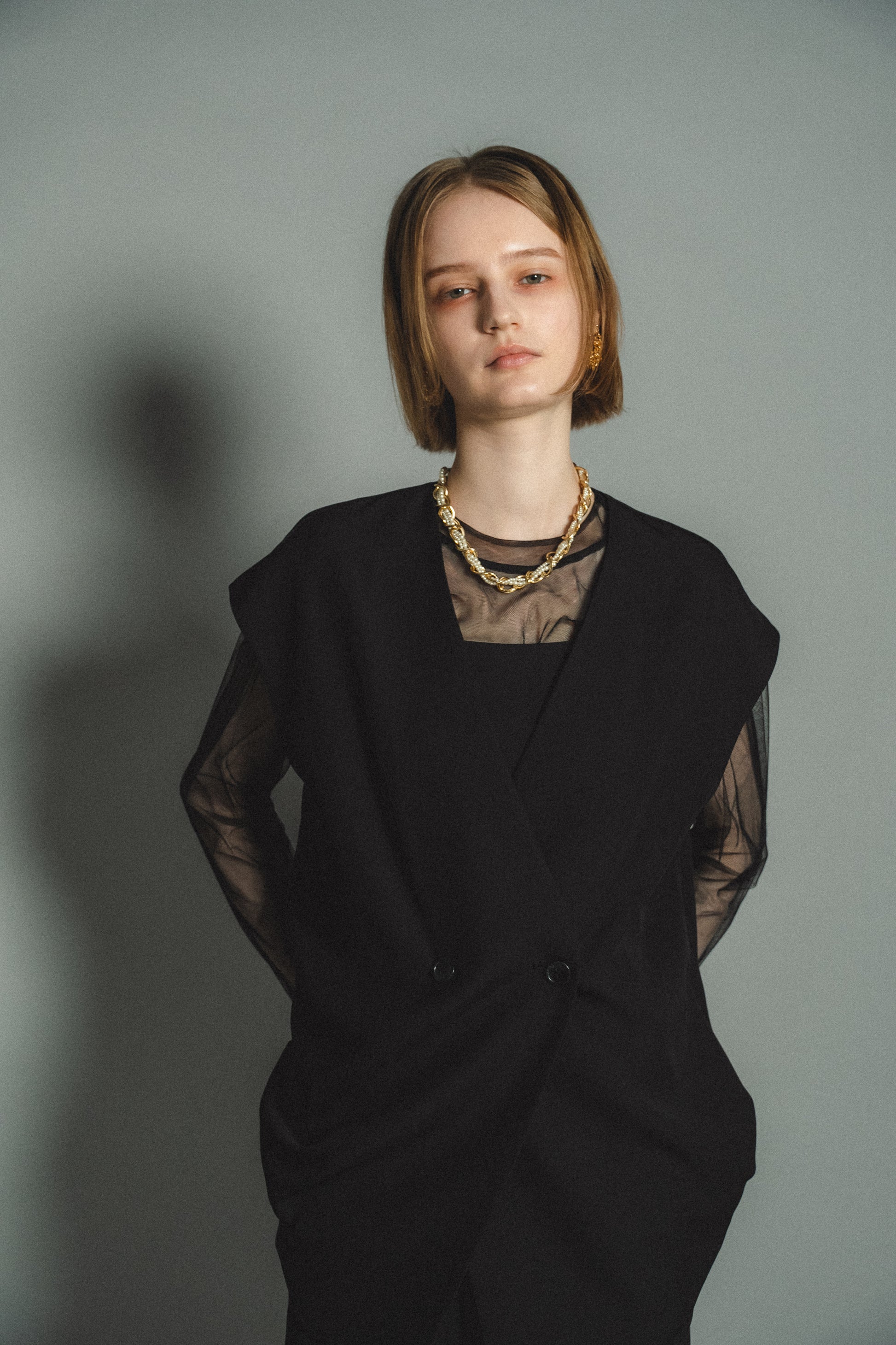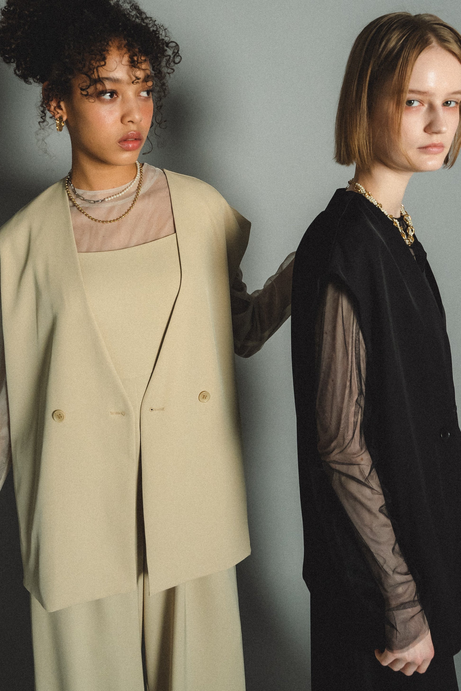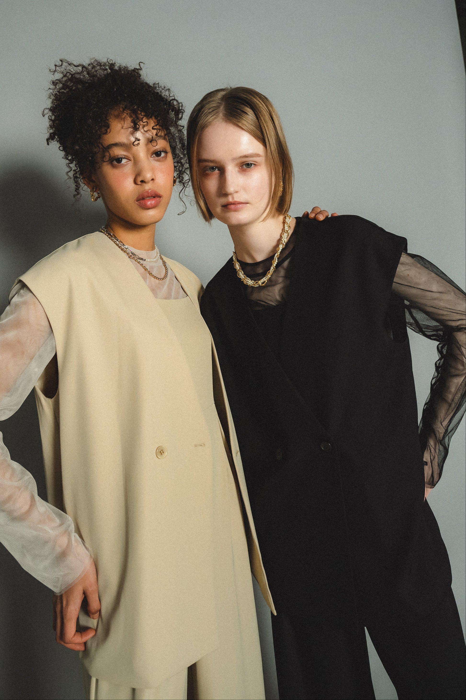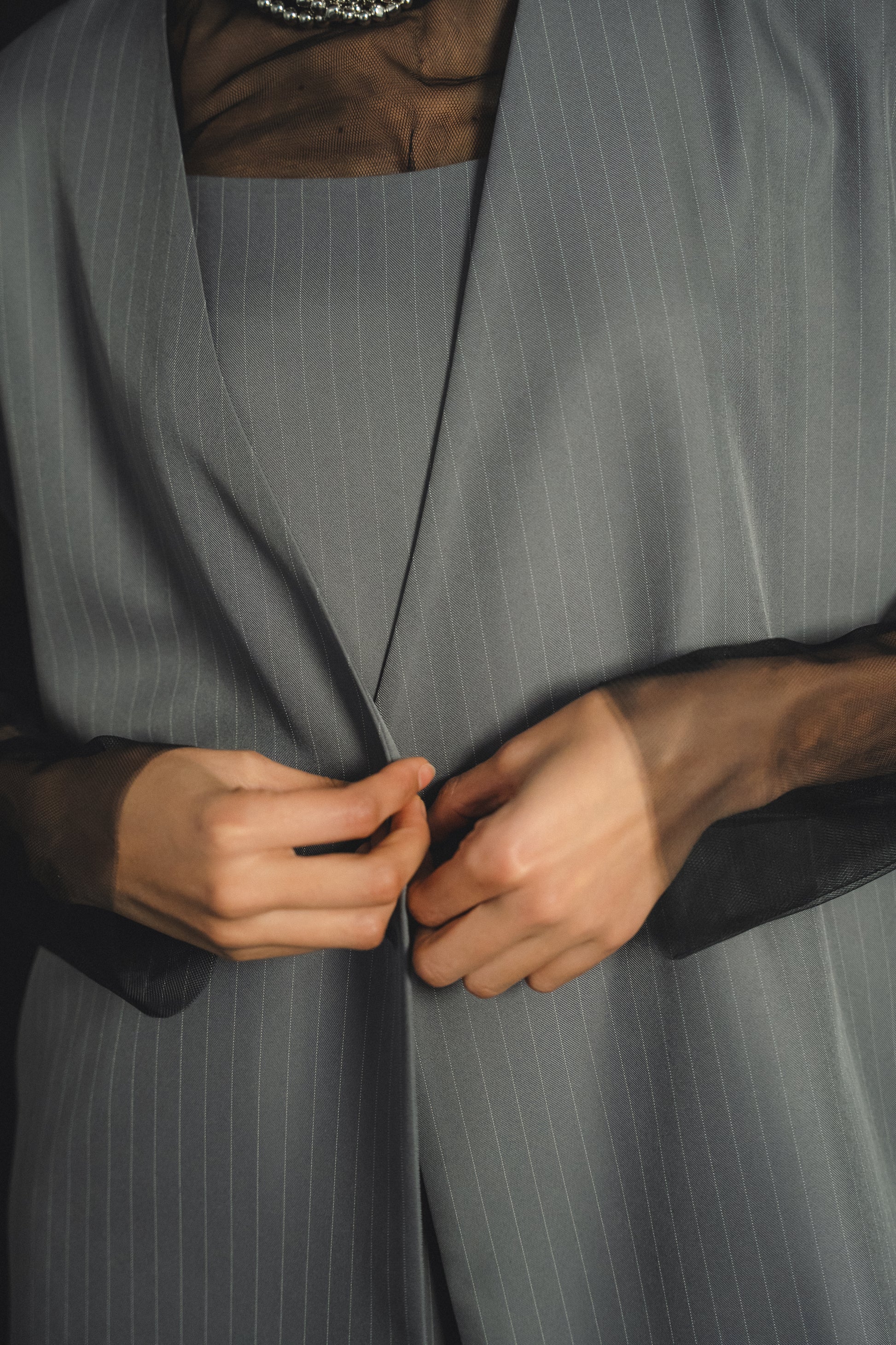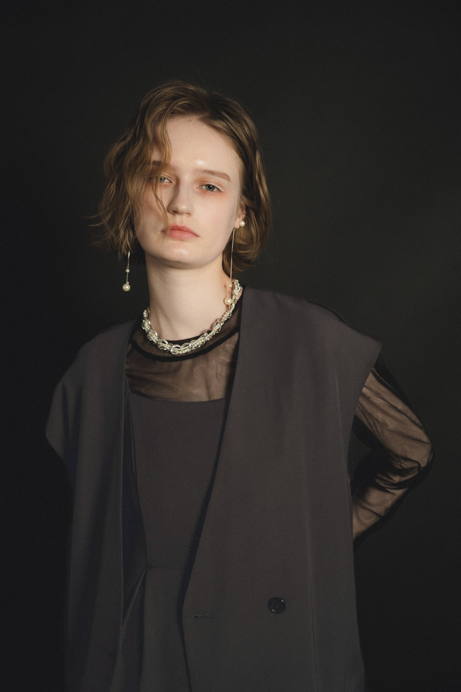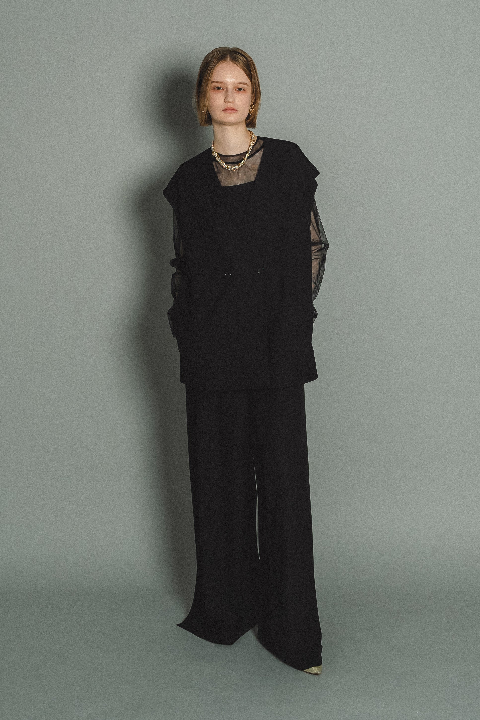 ・トップスはチュール生地を二枚重ねることで素肌の露出を軽減し、奥行のある印象に仕上げました。