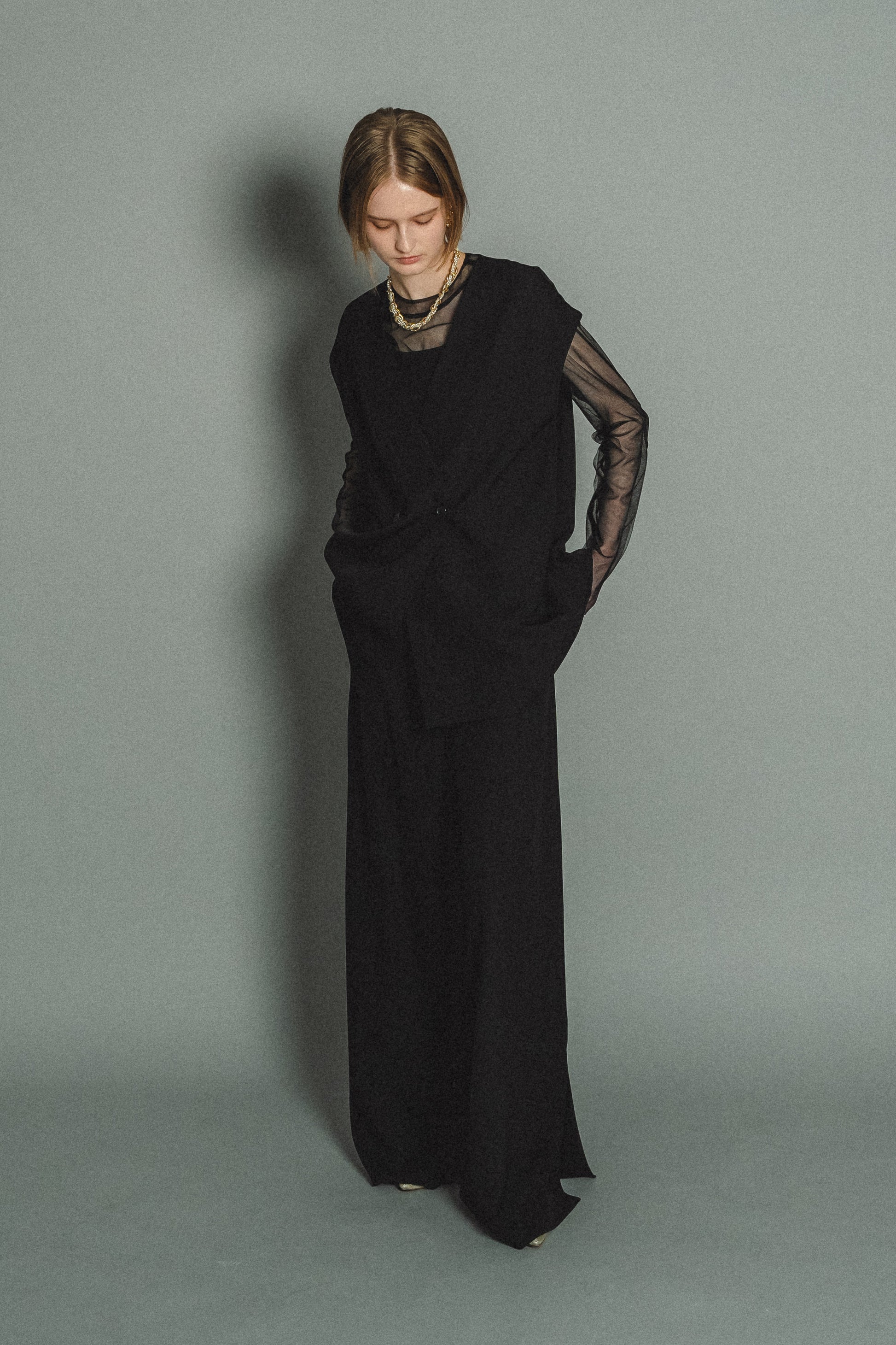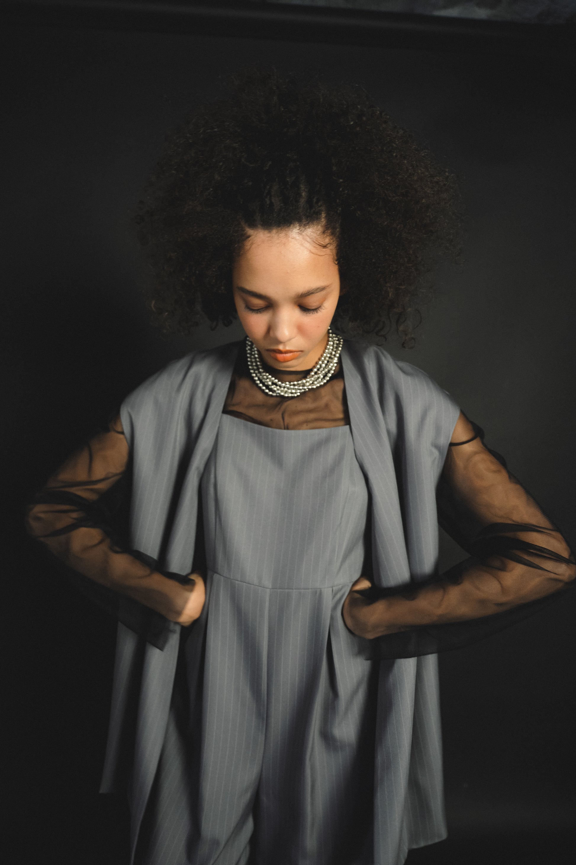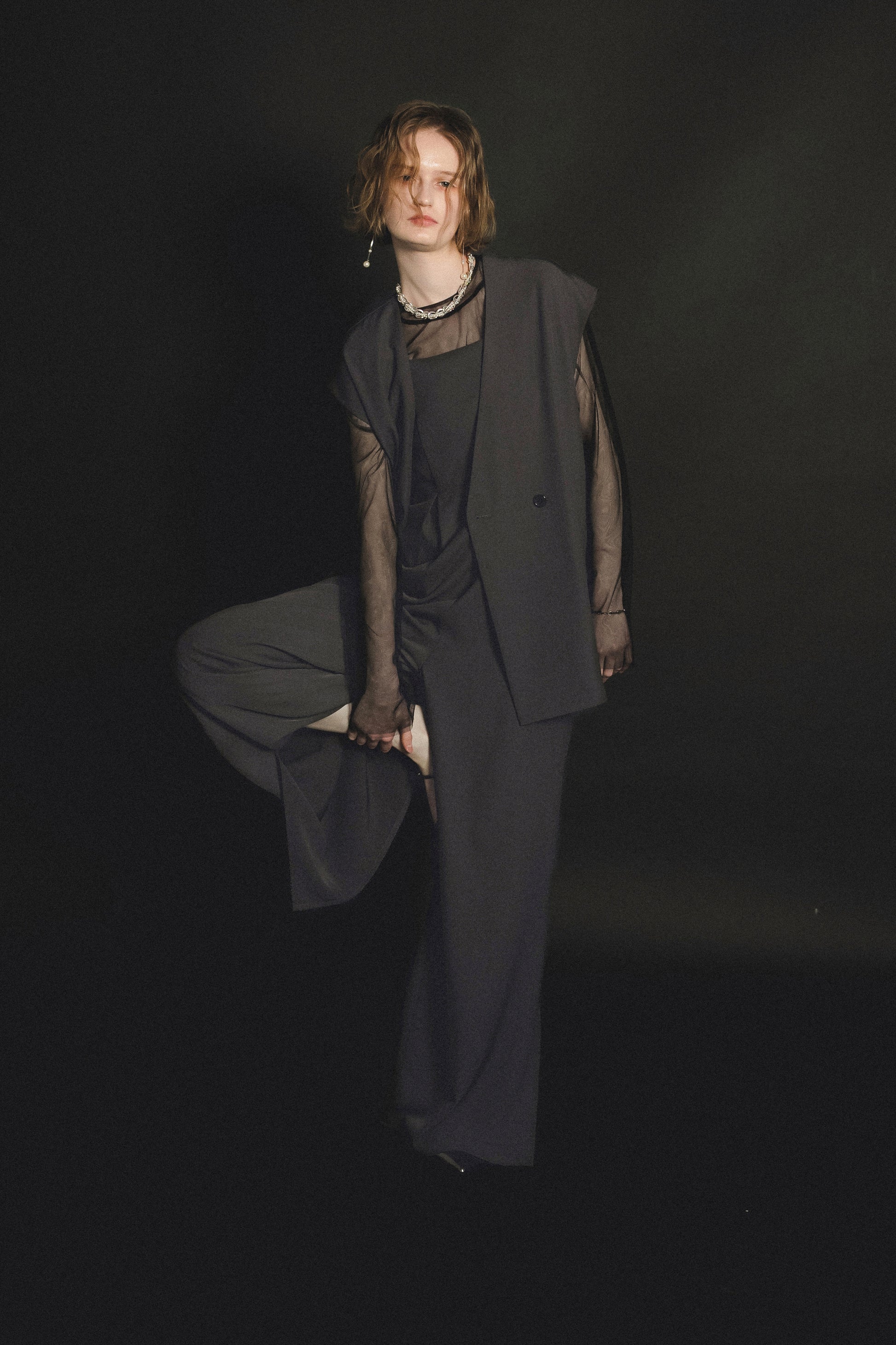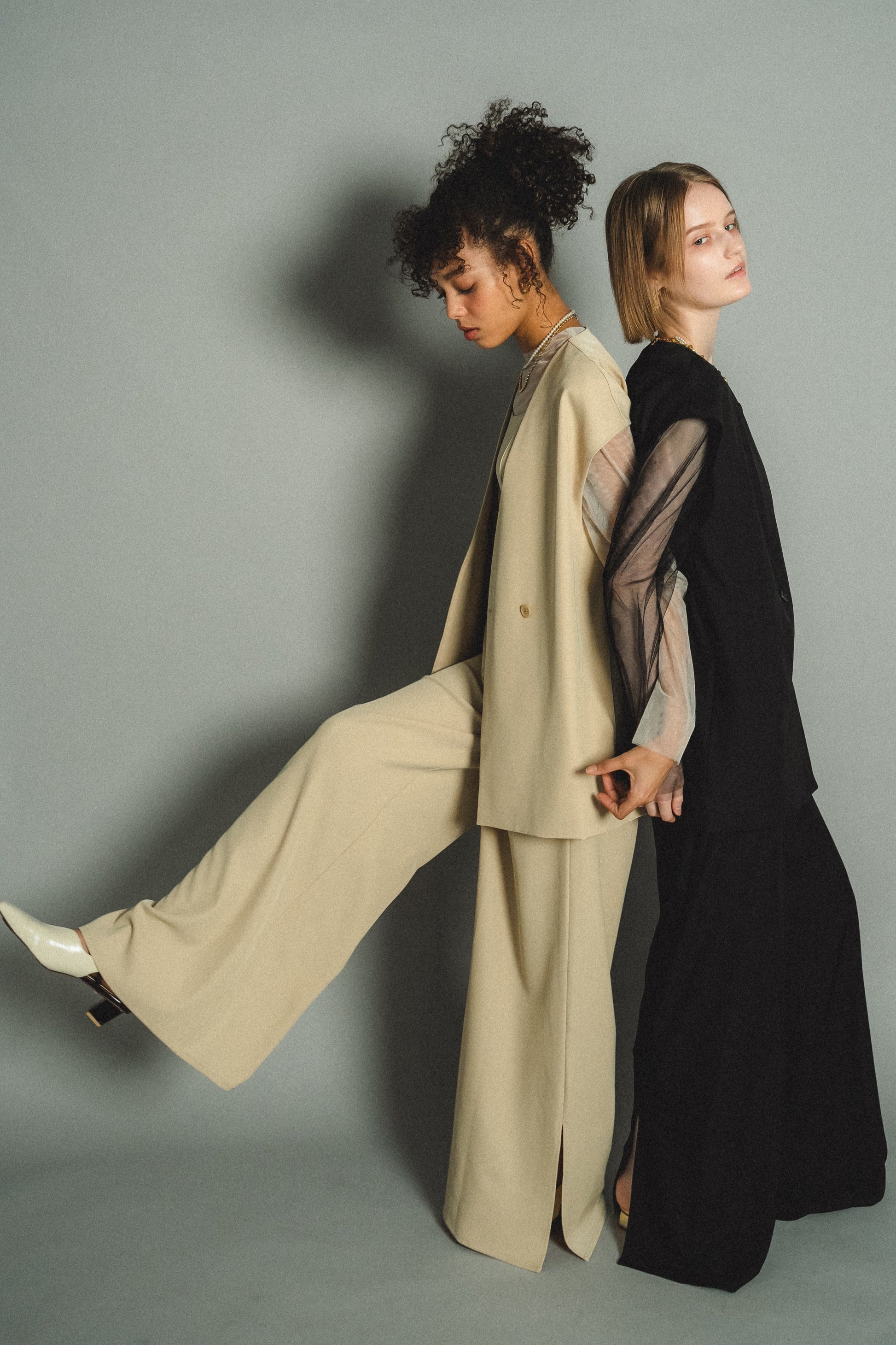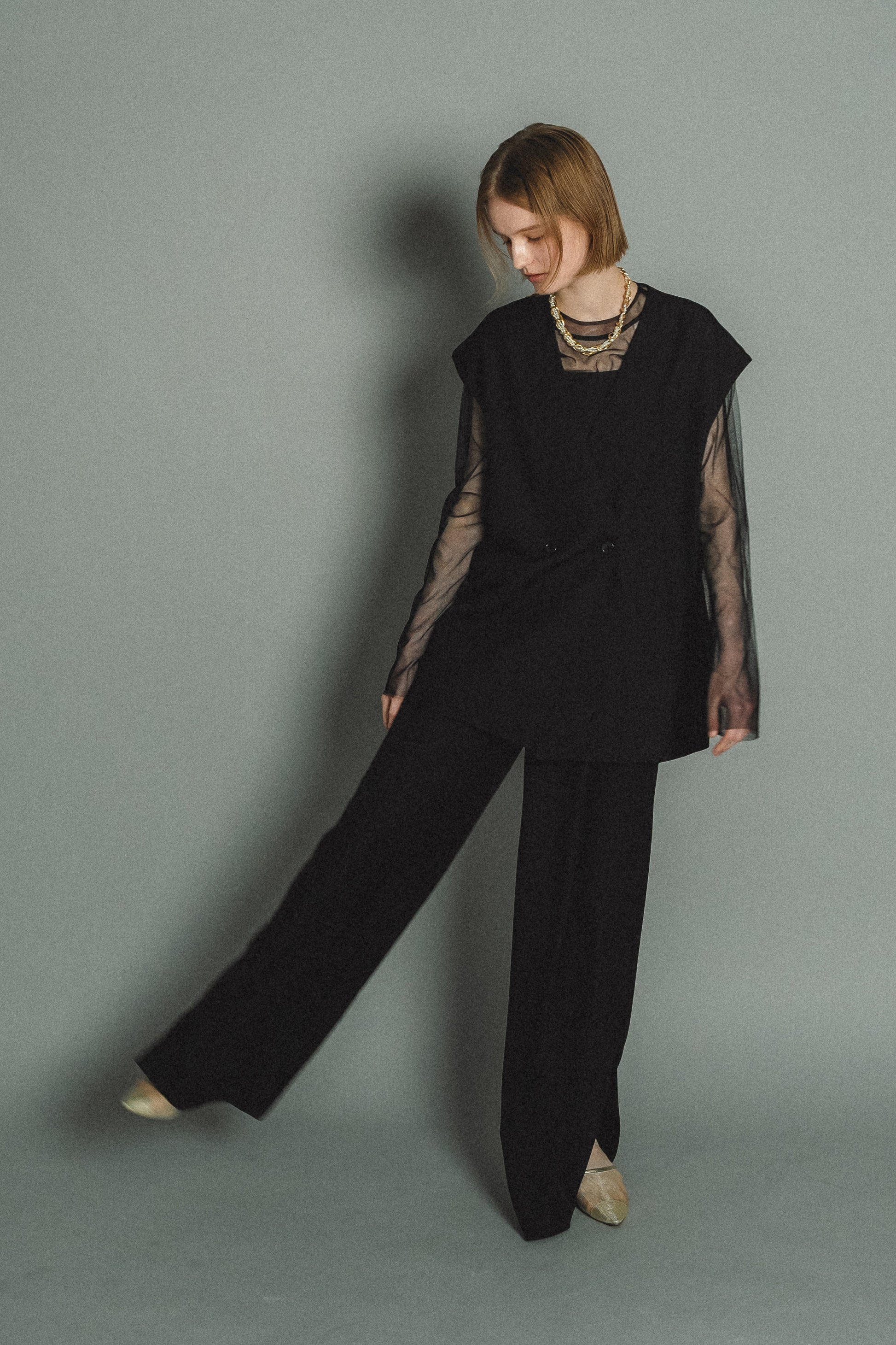 ・トップスはチュール生地を二枚重ねることで素肌の露出を軽減し、奥行のある印象に仕上げました。