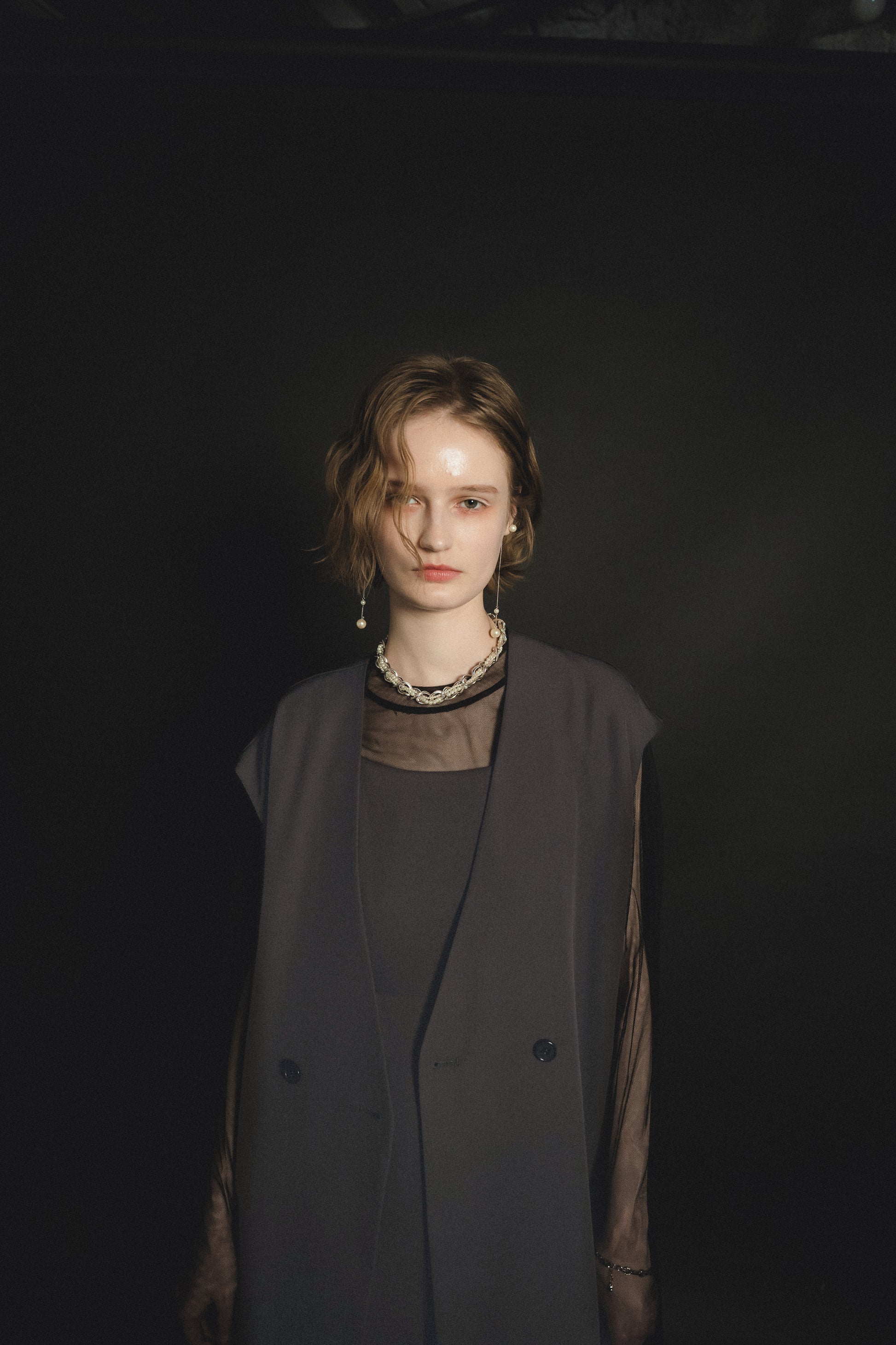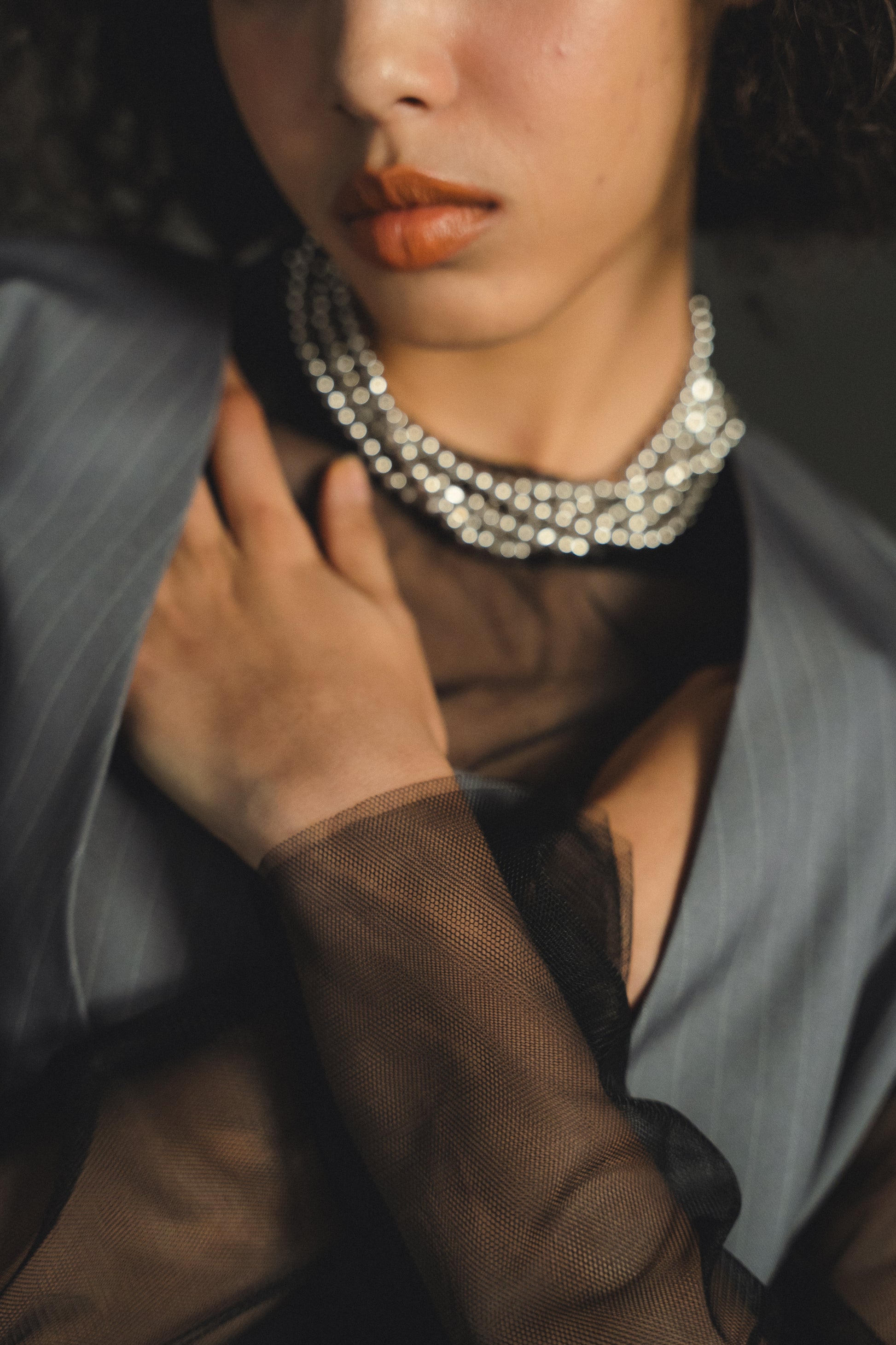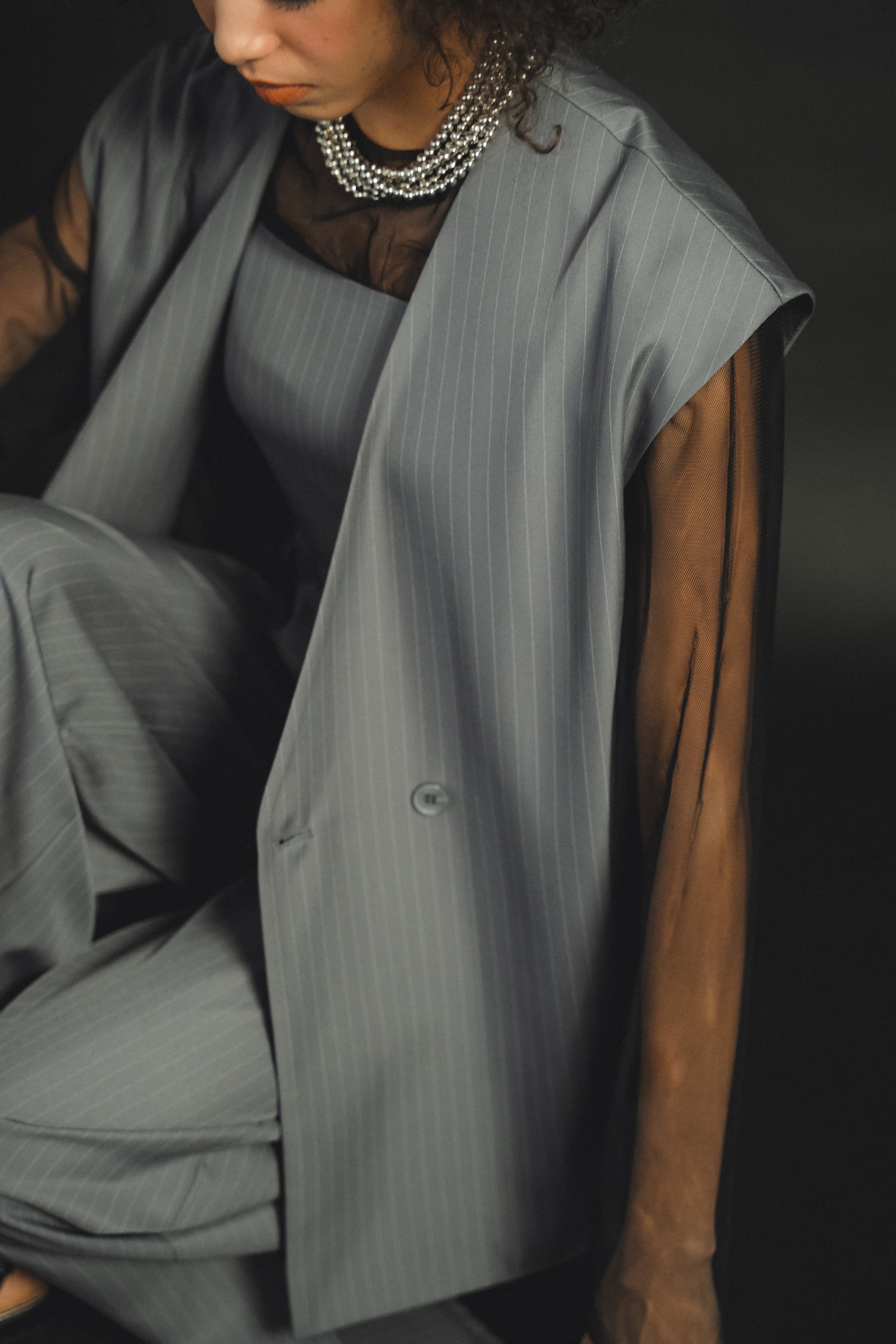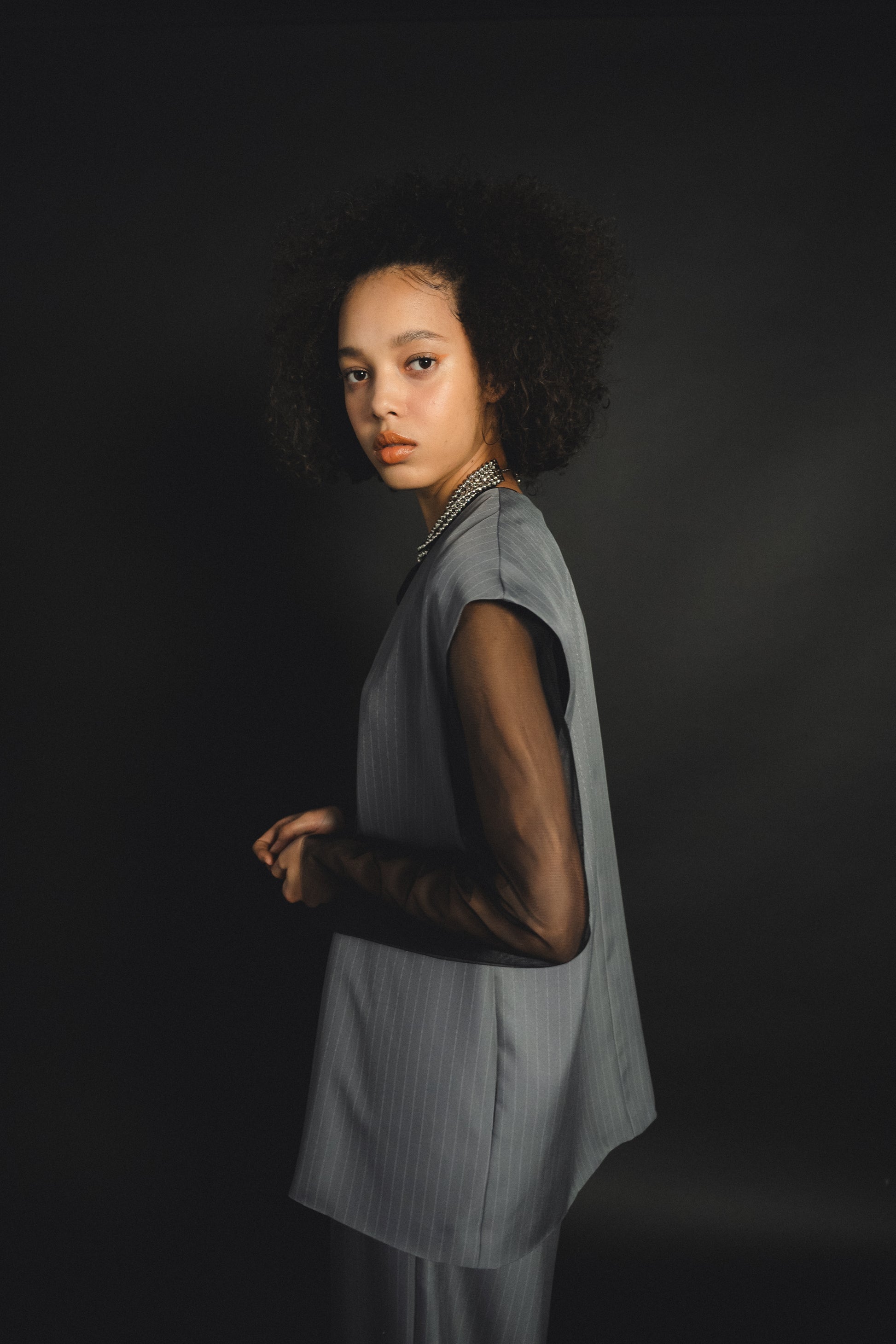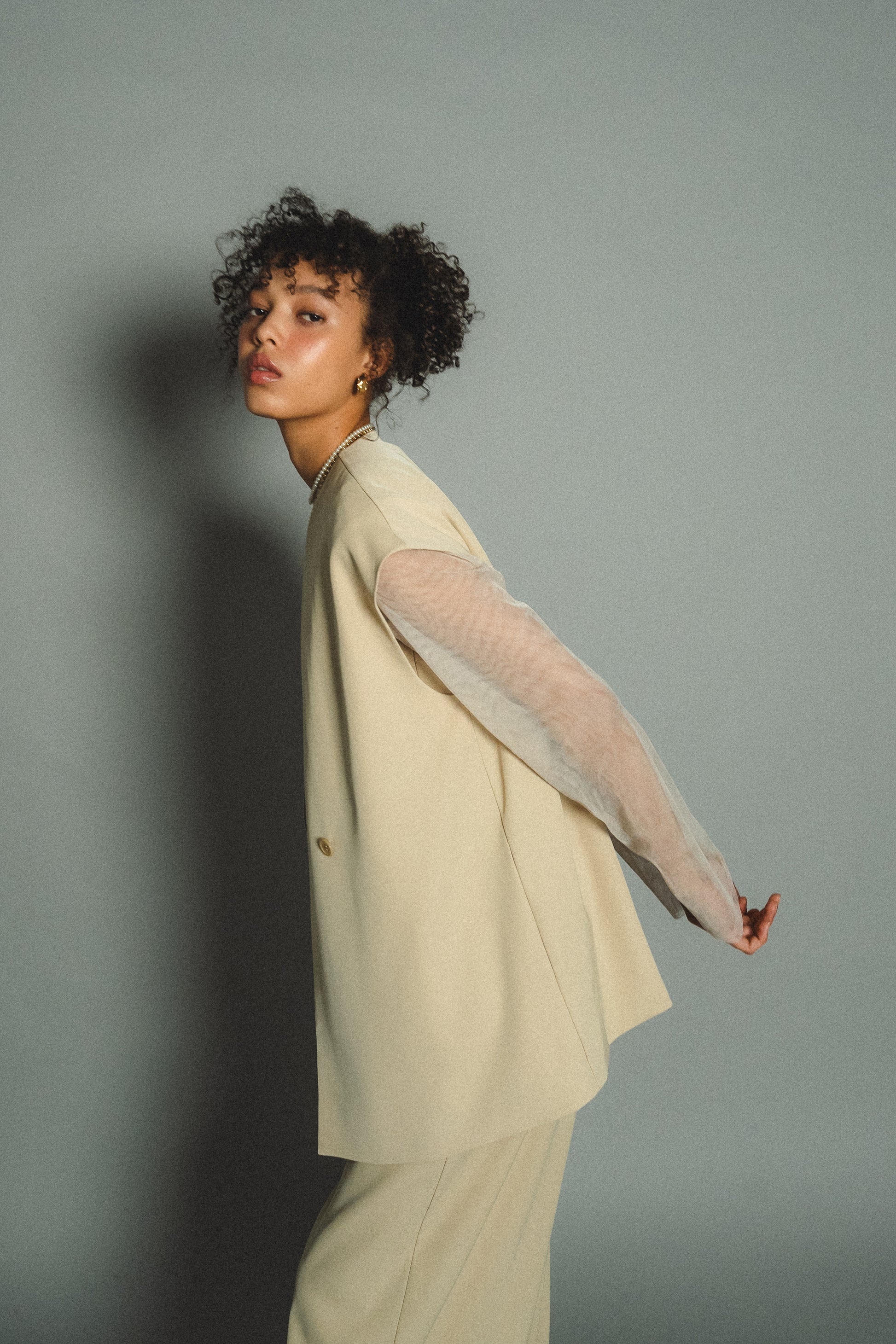 ・トップスはチュール生地を二枚重ねることで素肌の露出を軽減し、奥行のある印象に仕上げました。