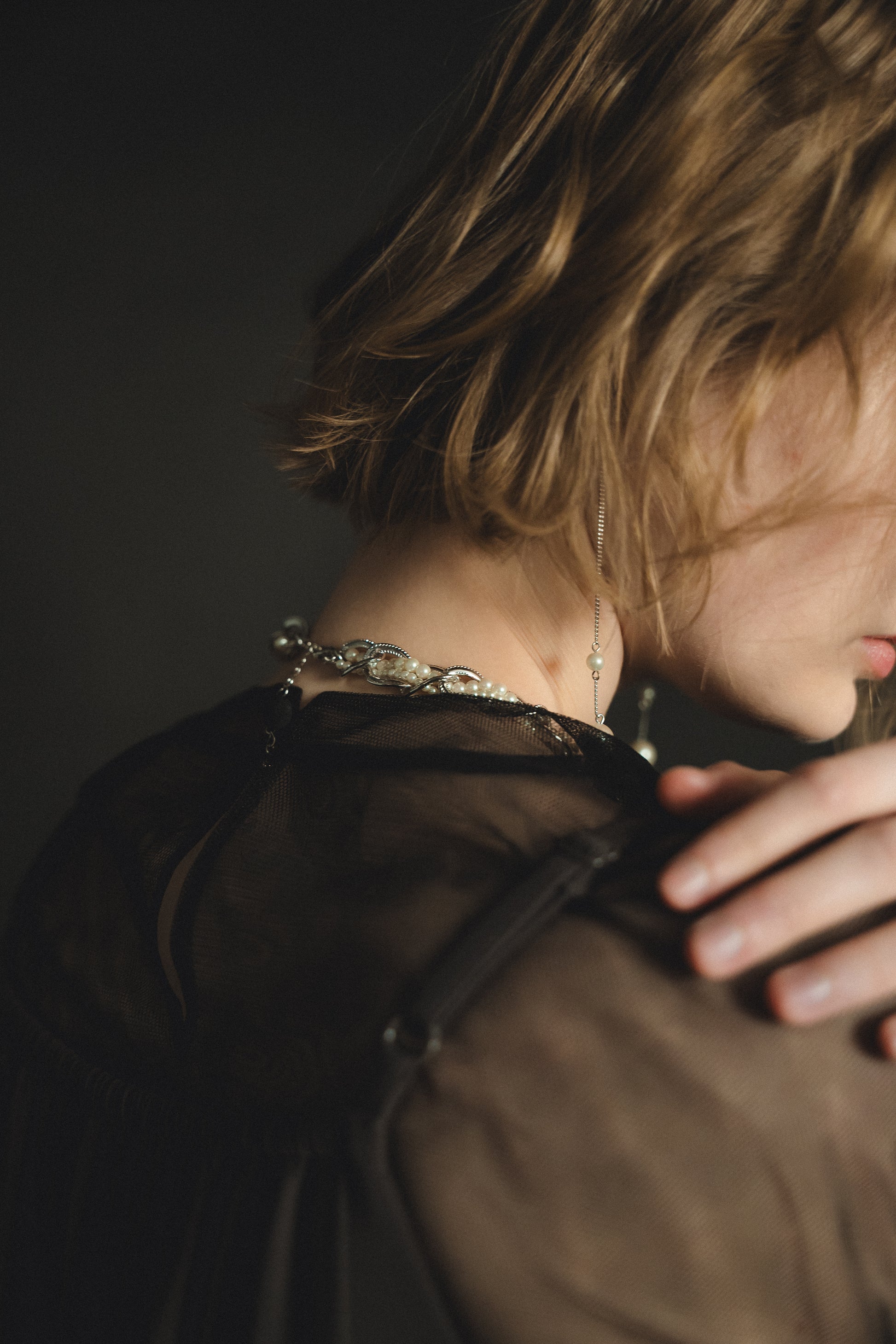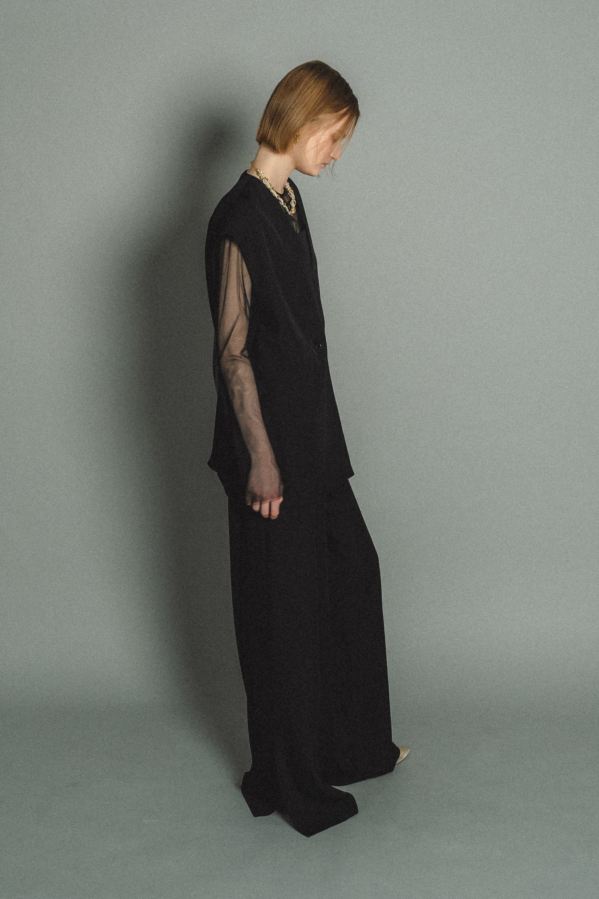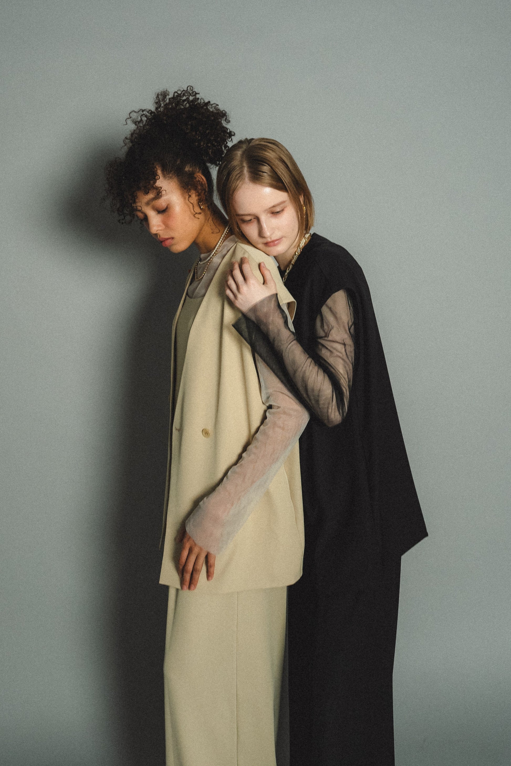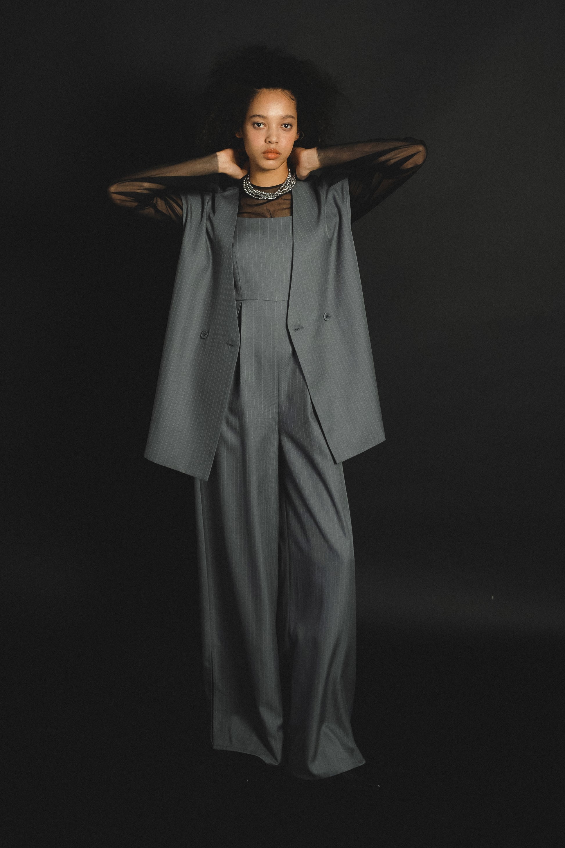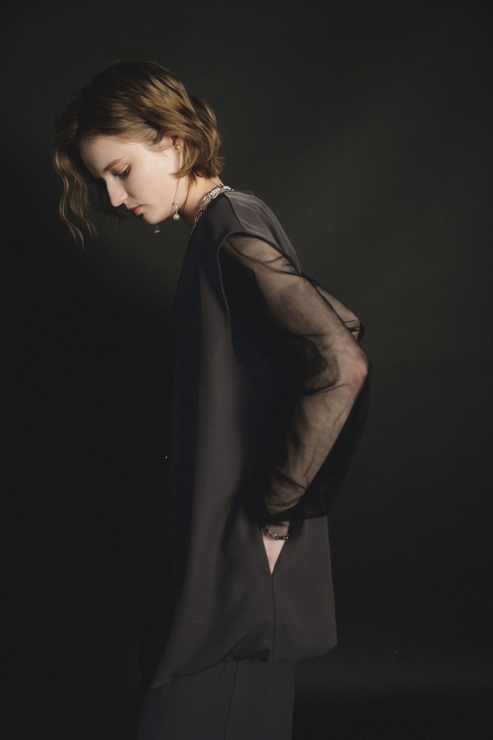 ・トップスはチュール生地を二枚重ねることで素肌の露出を軽減し、奥行のある印象に仕上げました。