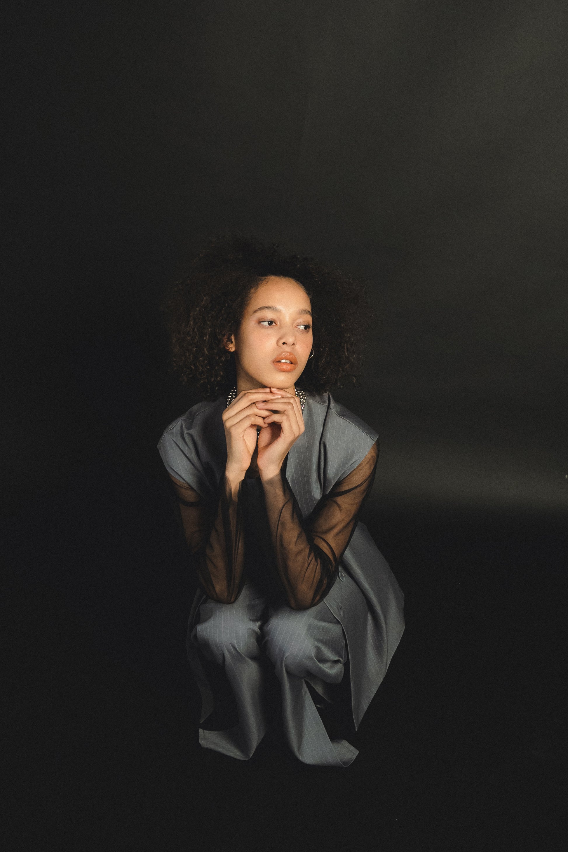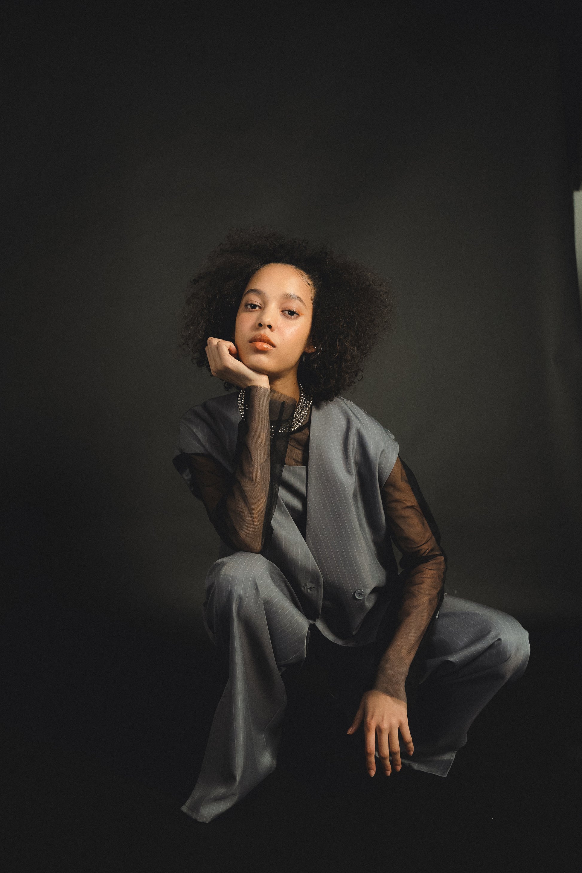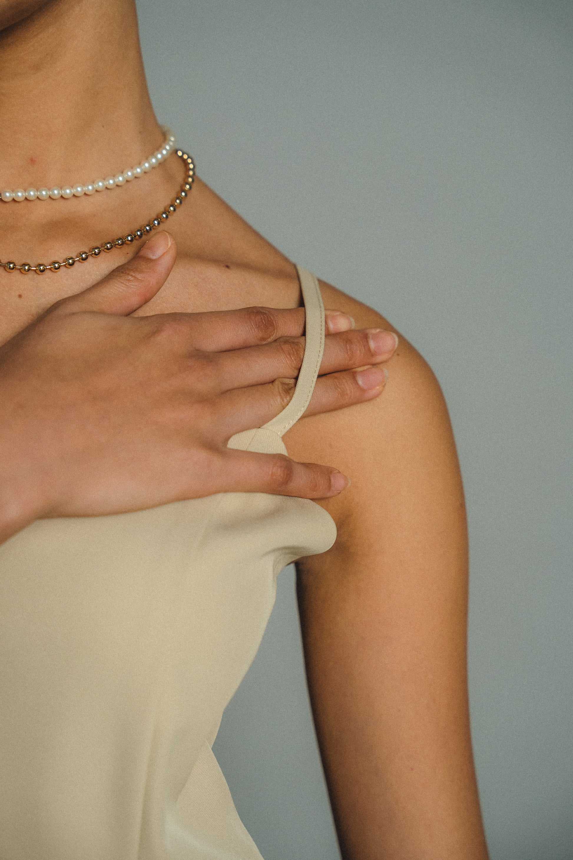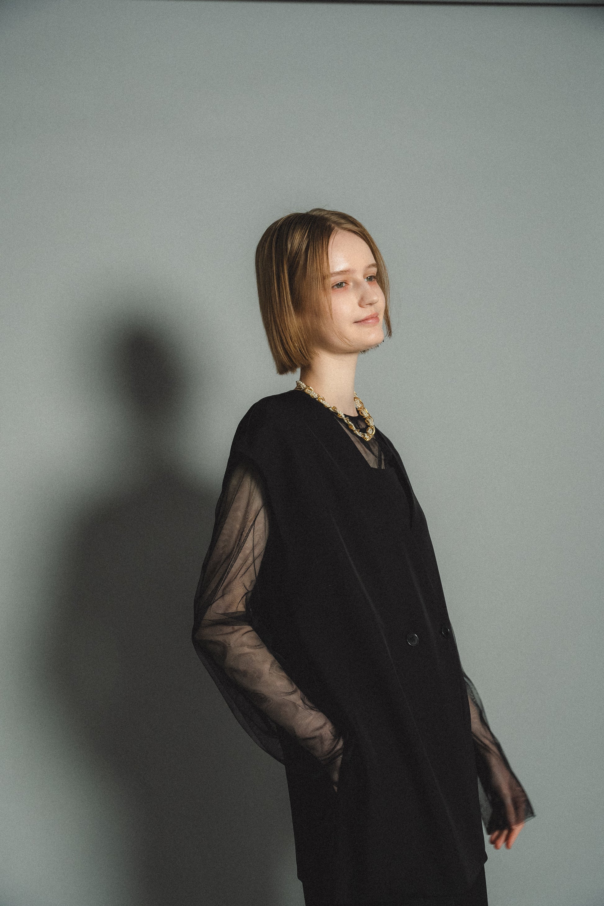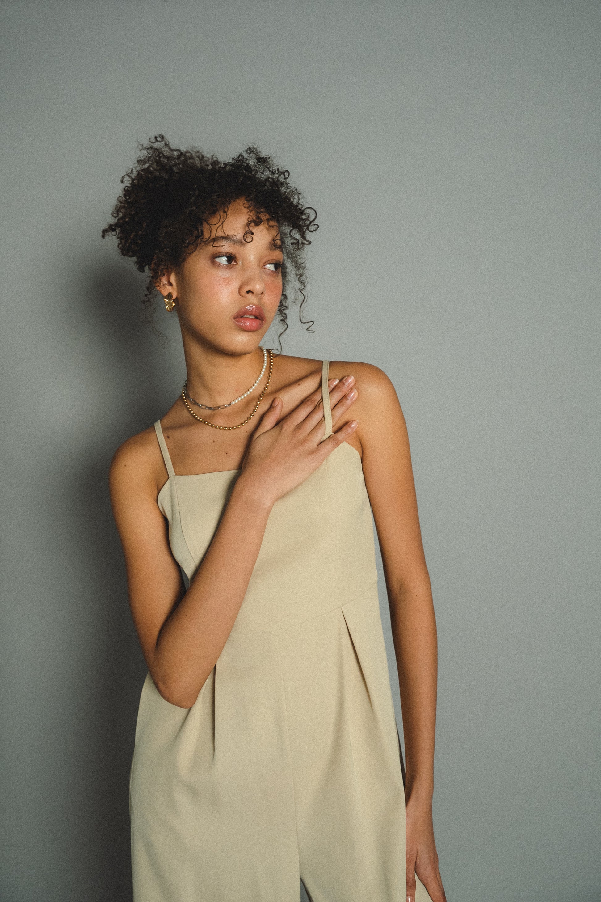 ・トップスはチュール生地を二枚重ねることで素肌の露出を軽減し、奥行のある印象に仕上げました。