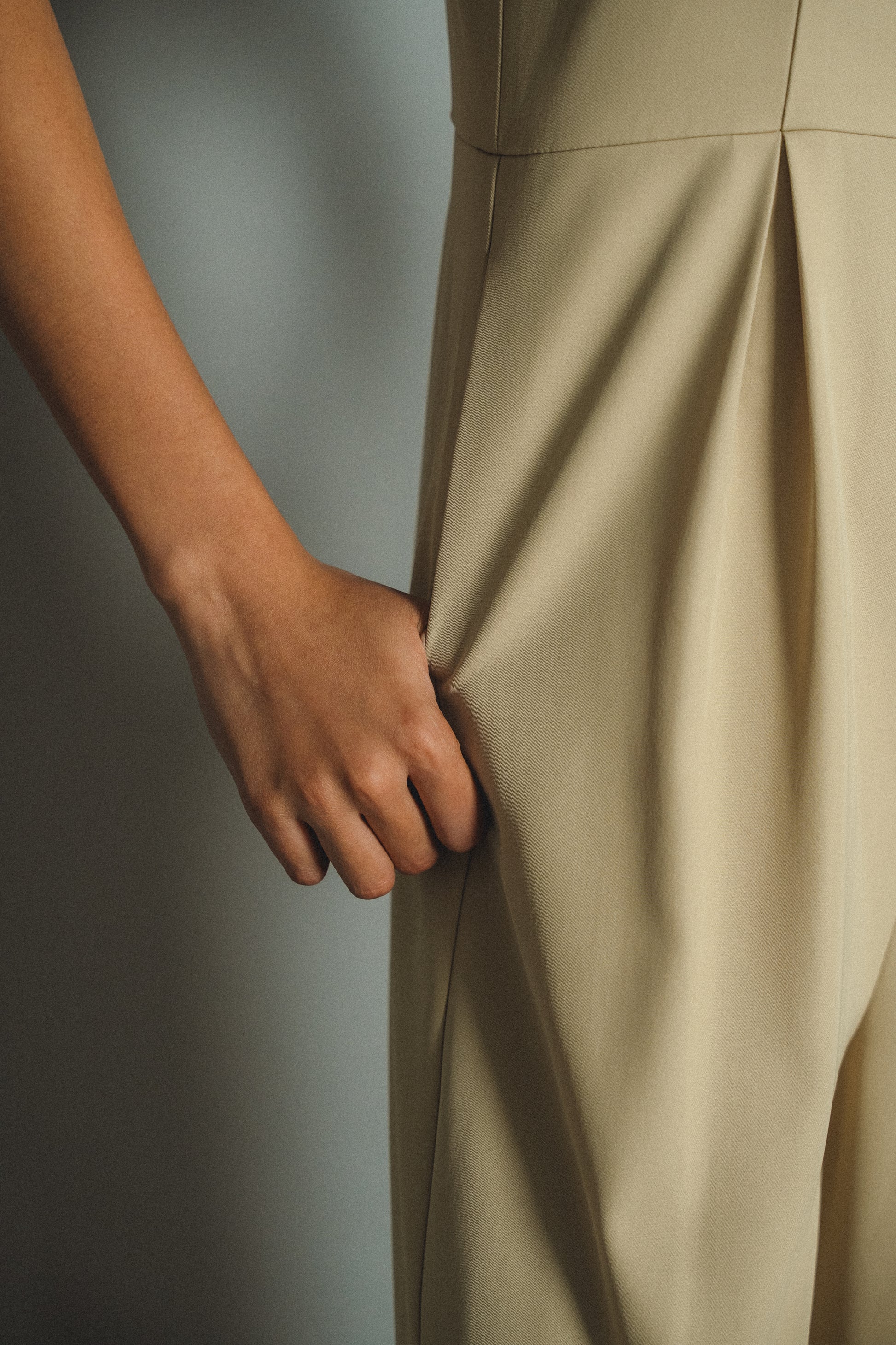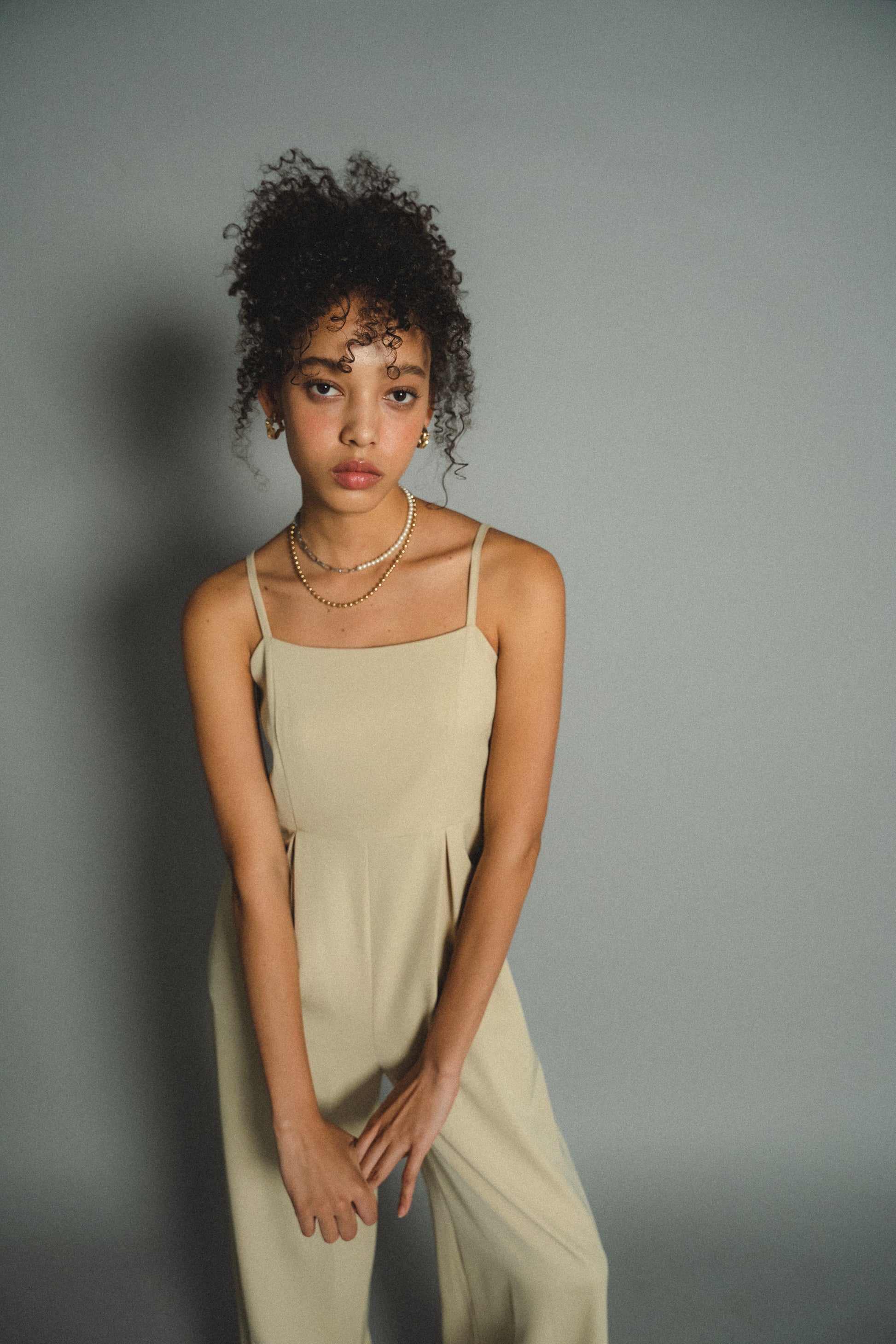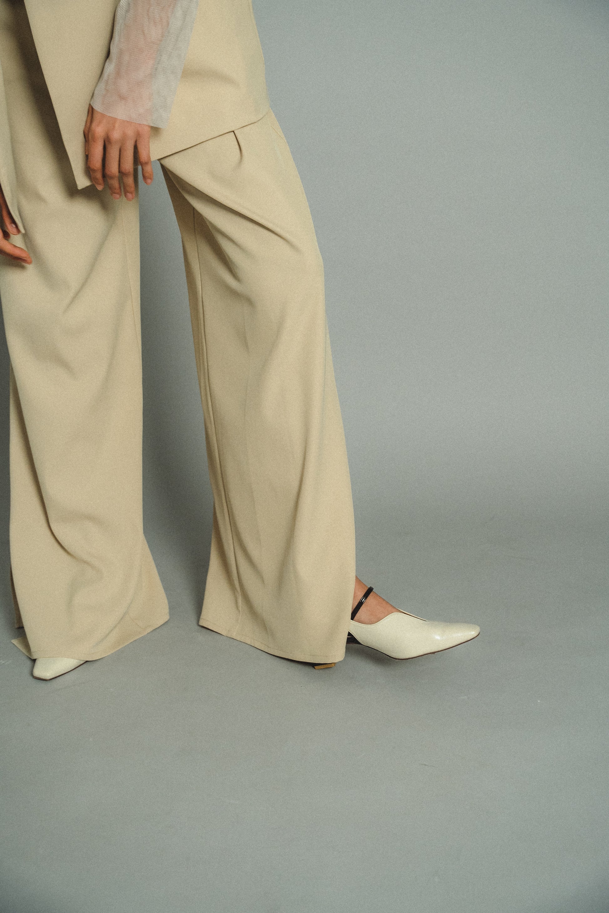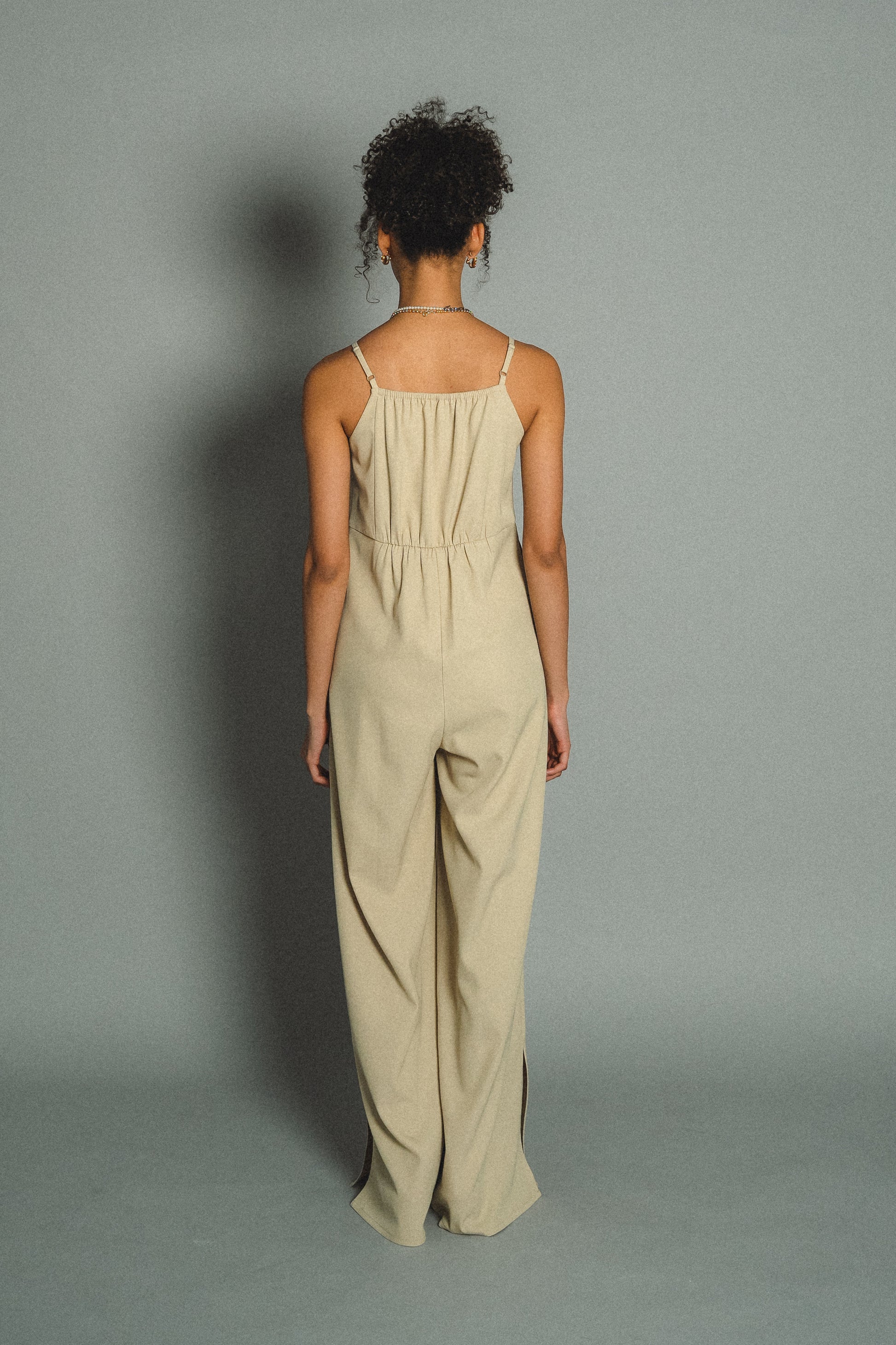 ・高めのウエスト位置にすることで脚長効果抜群。体型を拾いすぎないゆとりのあるサイズ感に